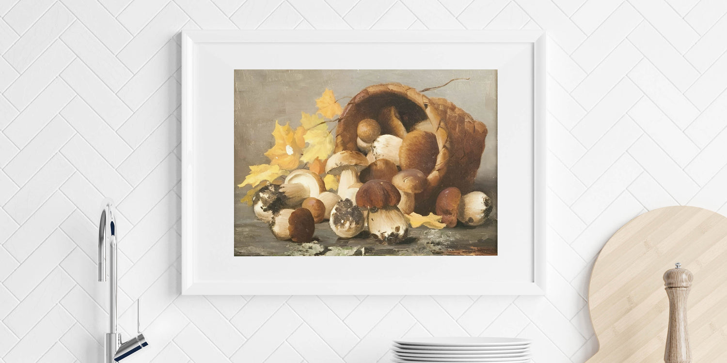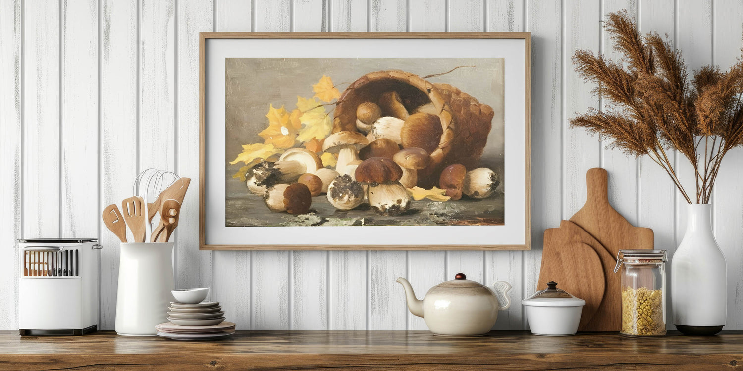 Rustic Mushroom Still Life – Fruits Wall Art for Kitchen Décor