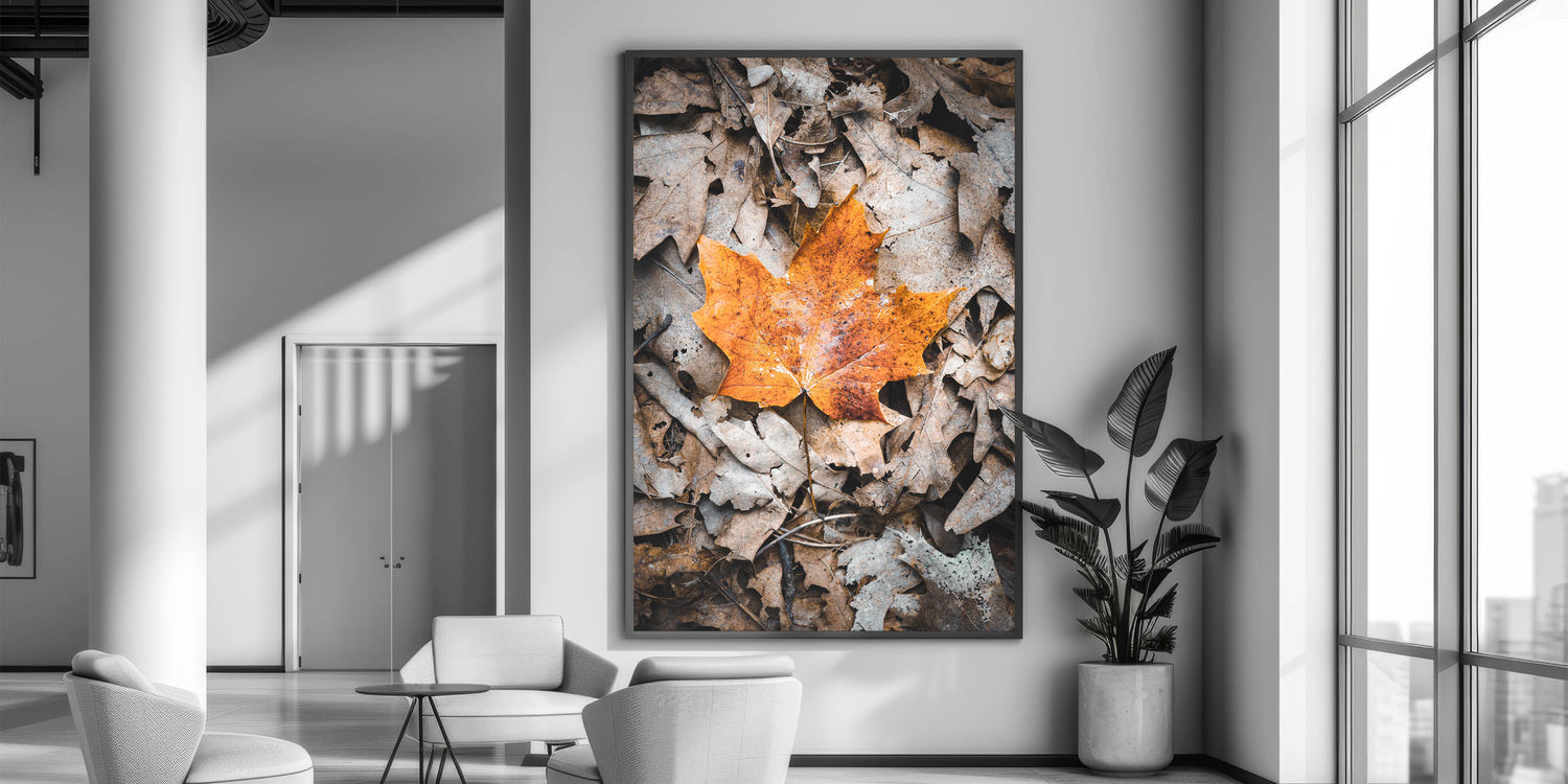 Single Autumn Leaf on Forest Floor – Fall Wall Art for Rustic Charm
