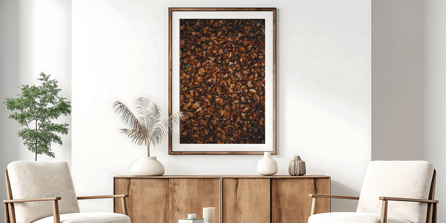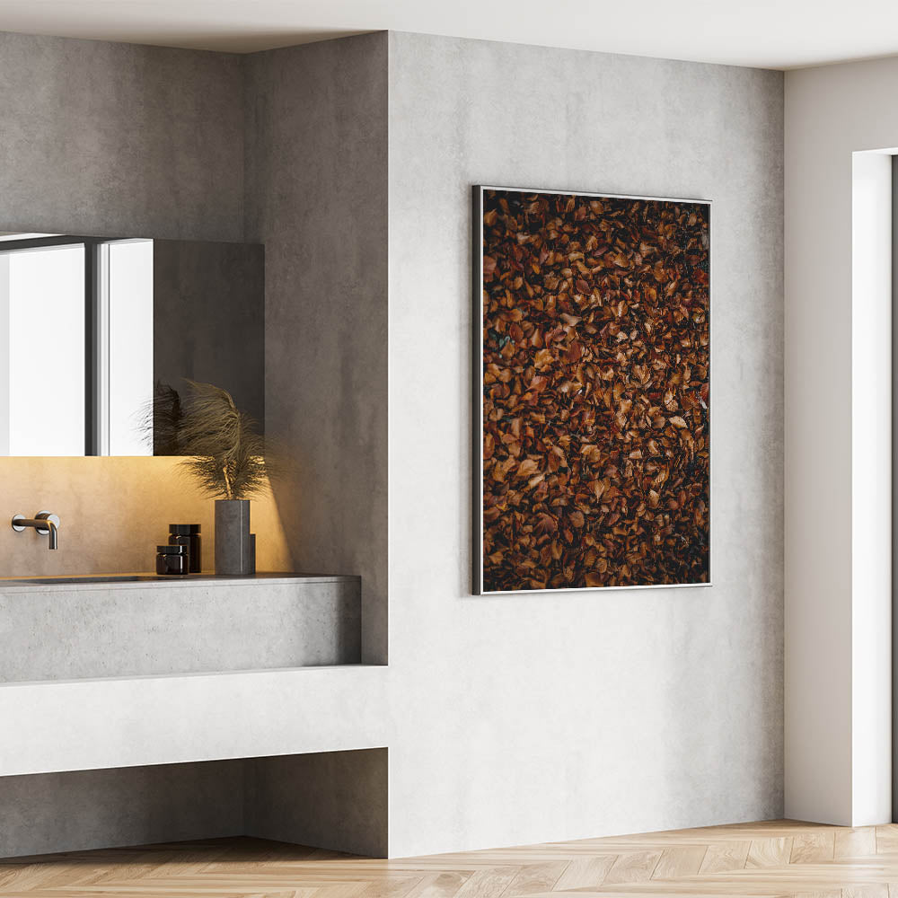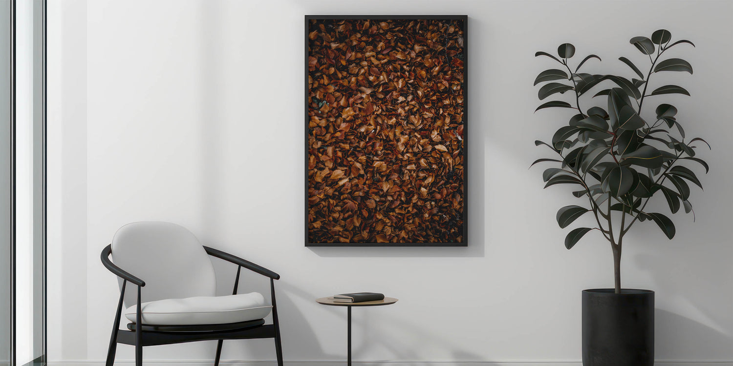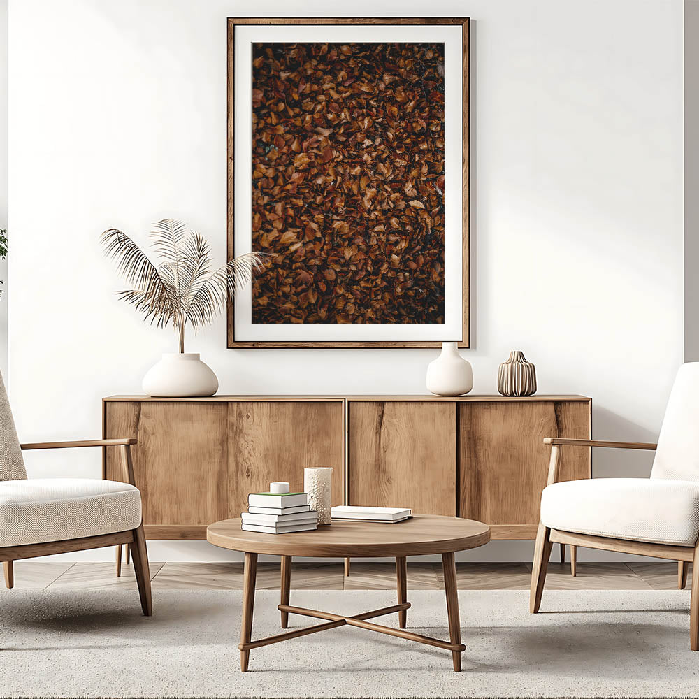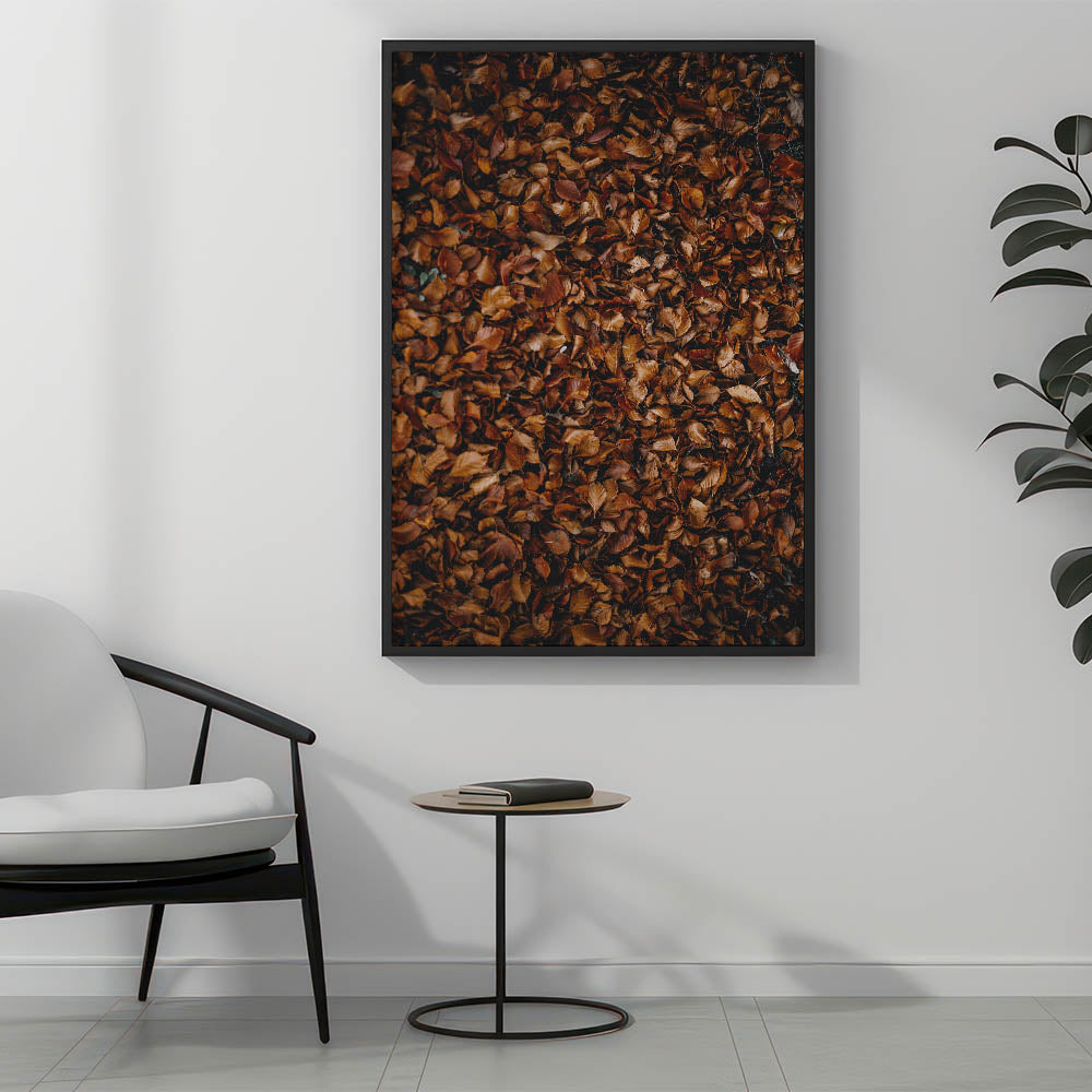 Experience the beauty of fall with this stunning autumn wall art, featuring a rich display of fallen leaves in deep brown and warm earthy hues. The intricate textures and organic patterns make this fall canvas art a timeless addition to any home or office. Whether you're decorating for the season or love nature-inspired decor, this fall wall decor captures the heart of autumn.