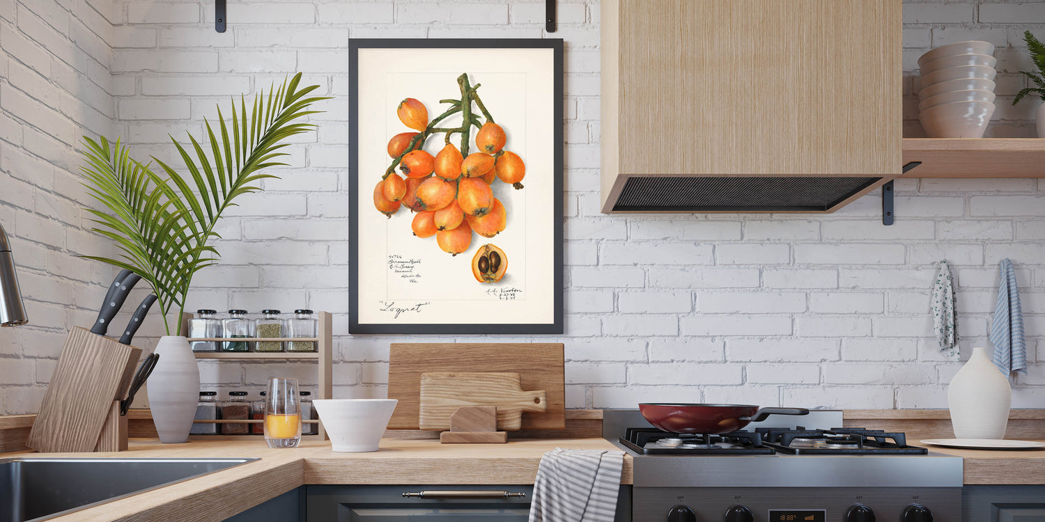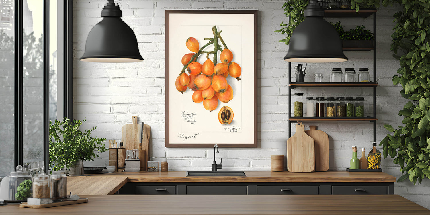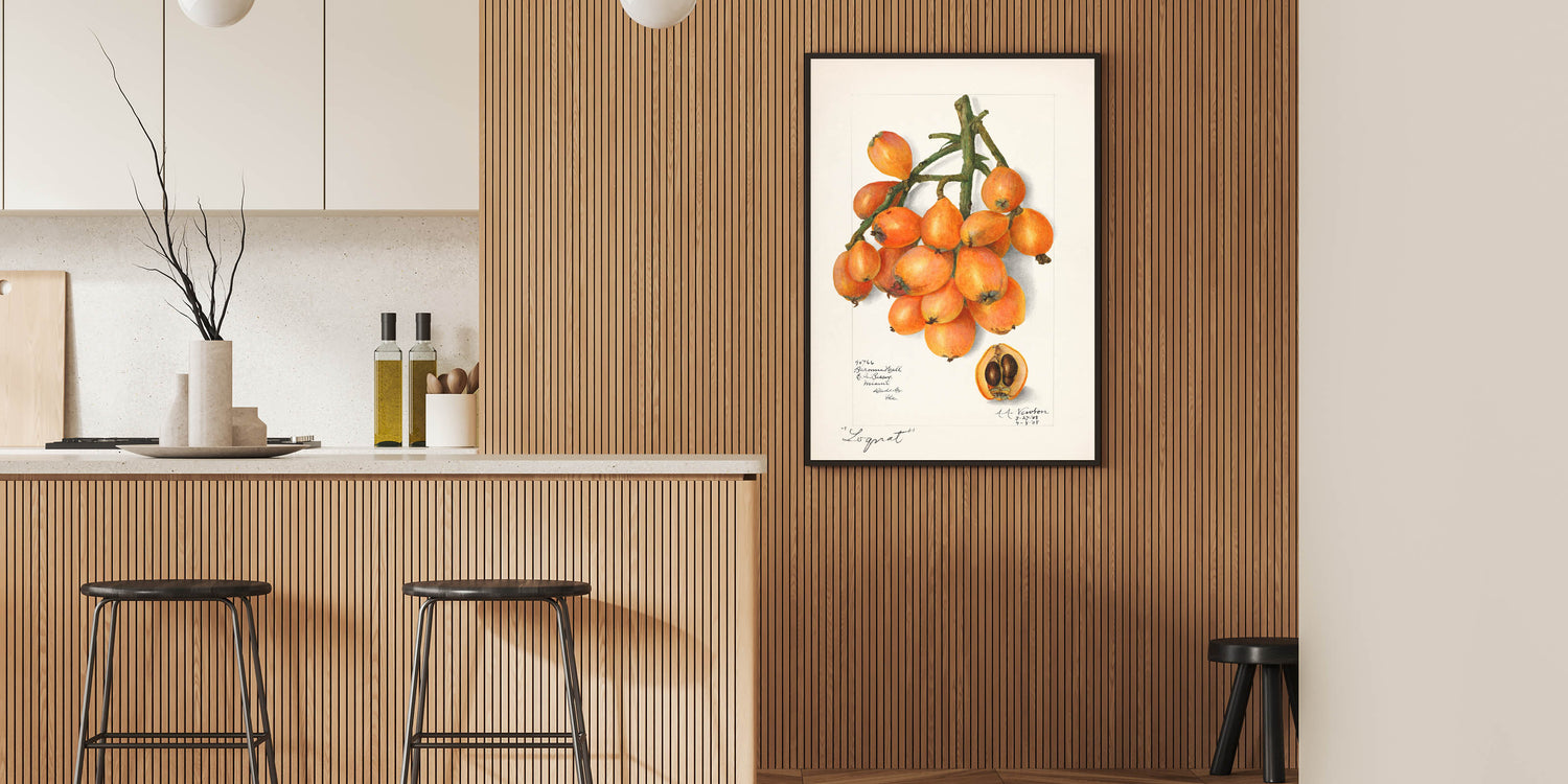 This fruit kitchen art brings a warm, rustic charm to any room. Whether displayed alone or as part of a botanical gallery, this artwork adds a refined and natural touch to your home. Available in multiple sizes and premium finishes.