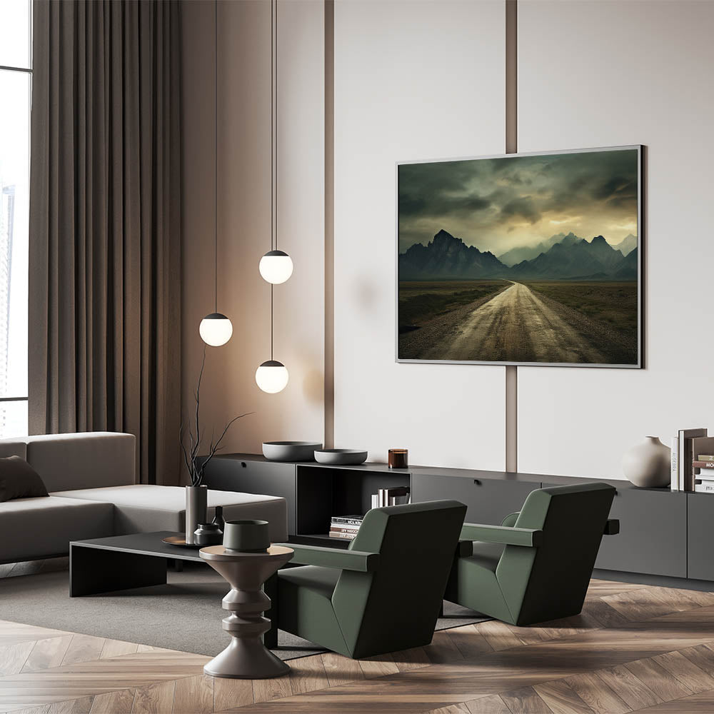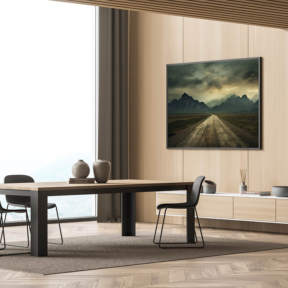 Embrace the dramatic beauty of Azerbaijan’s rugged landscape with this striking wall art, featuring a long, winding road that disappears into the majestic mountains under a moody, cloud-filled sky. The atmospheric tones and expansive scenery create a sense of solitude and adventure, making this piece perfect for those who appreciate the raw, untamed beauty of nature. This artwork captures the essence of a journey into the unknown, where the road ahead is both mysterious and inviting.