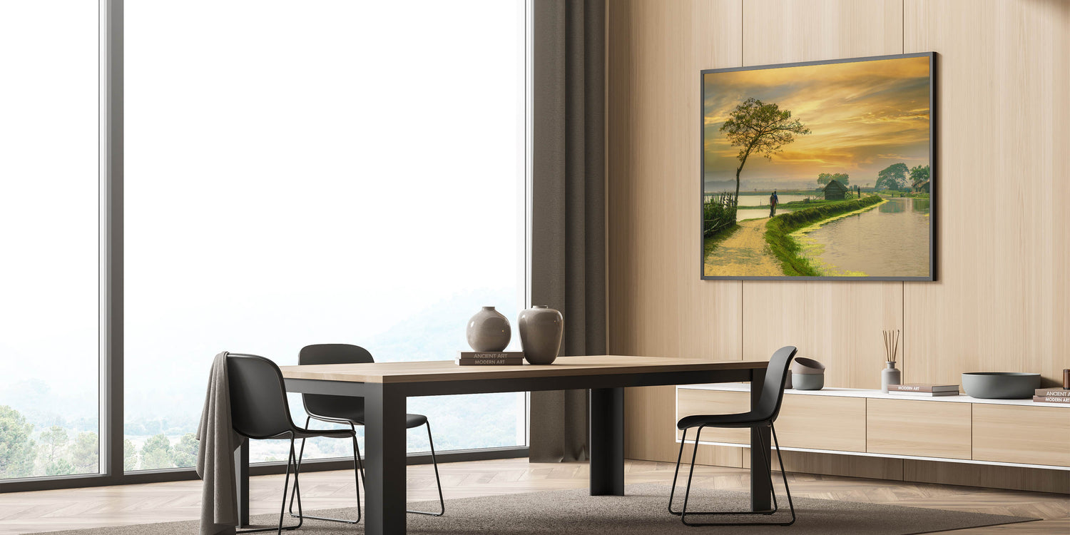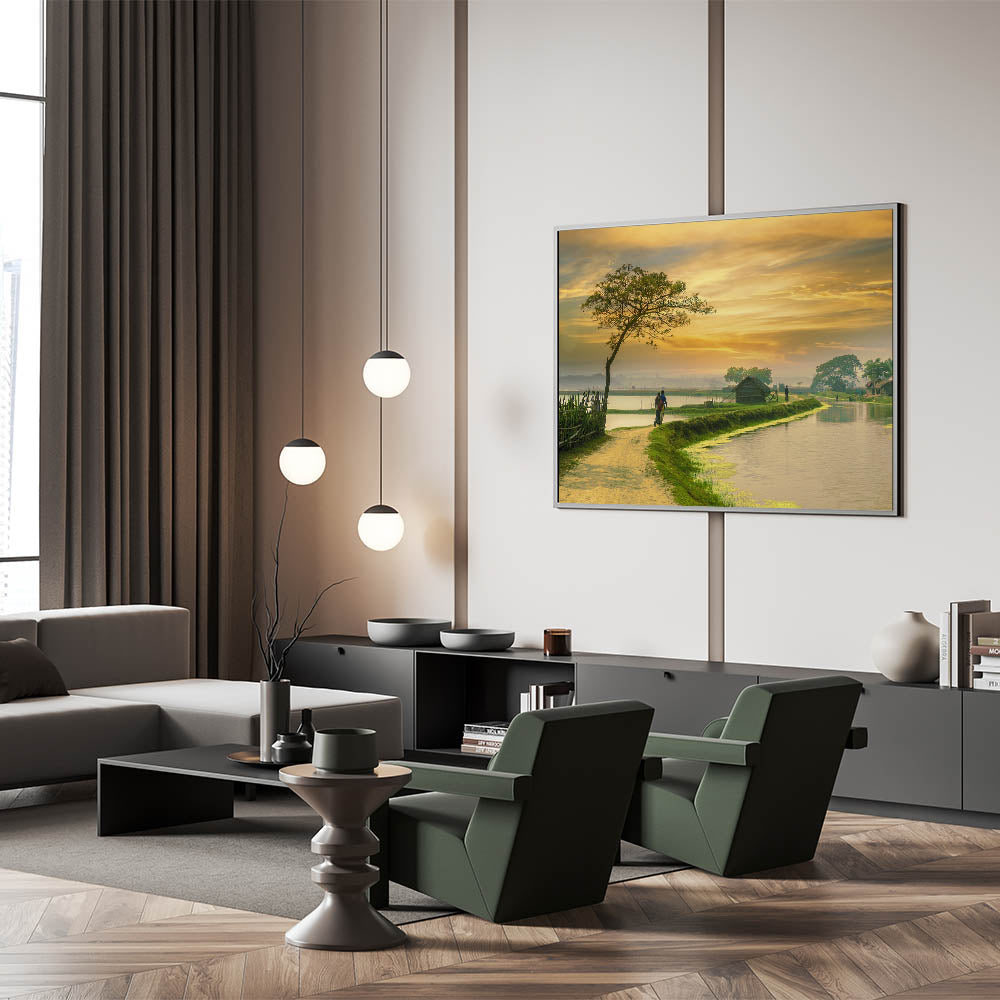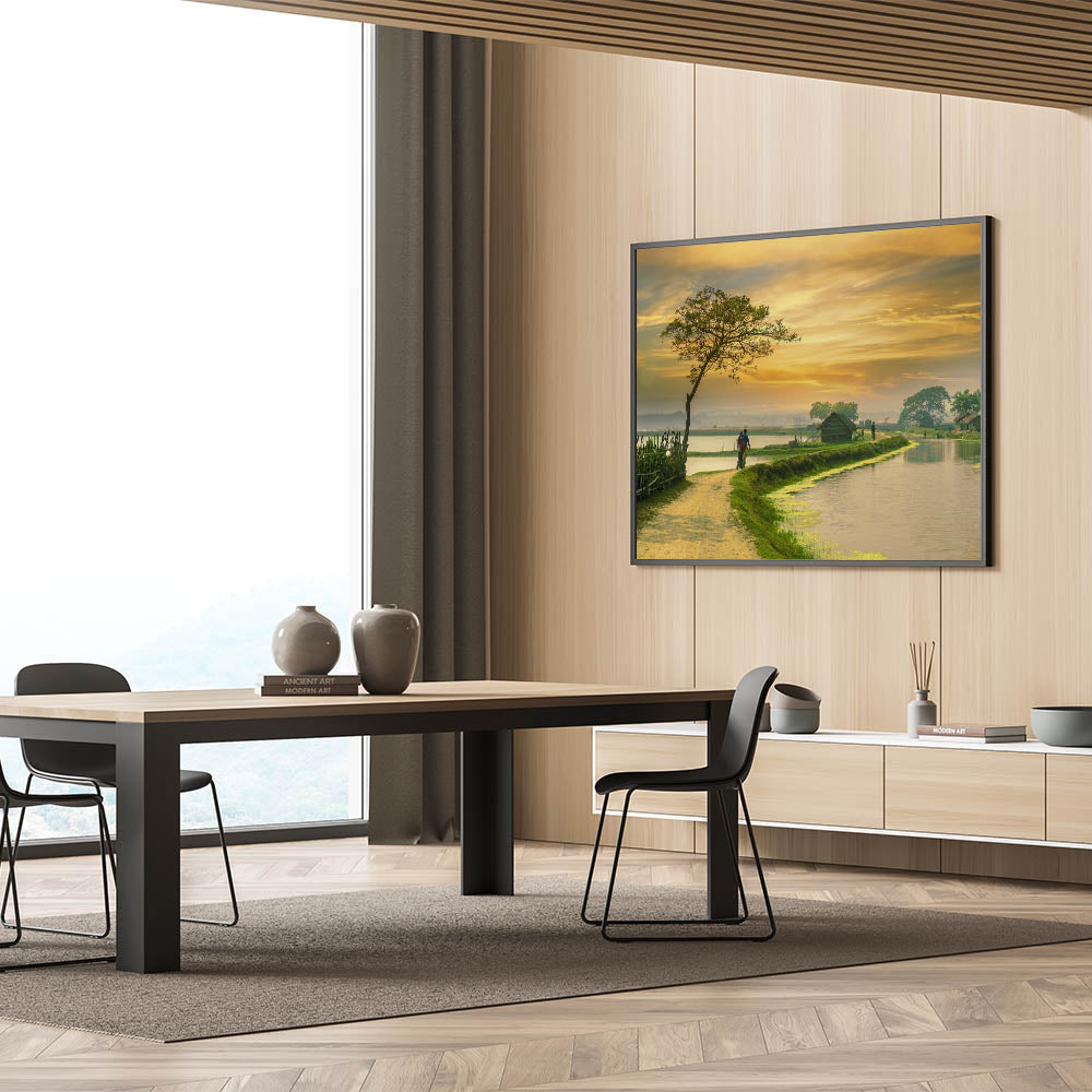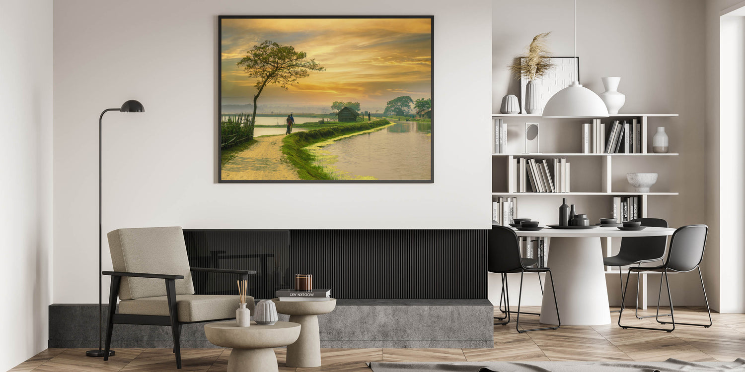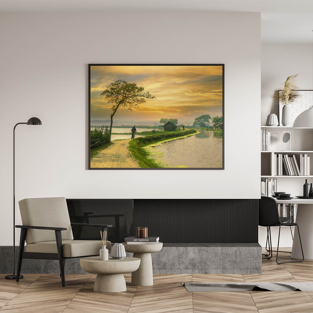 This wall art is ideal for those who love the simplicity and beauty of rural life. Enhance your space with this serene Bangladeshi countryside scene, and let the peaceful energy of the sunset fill your surroundings.