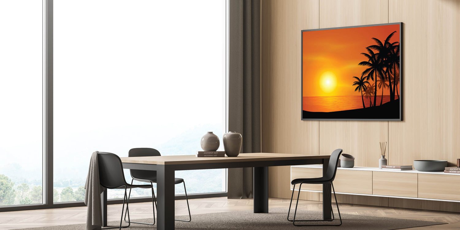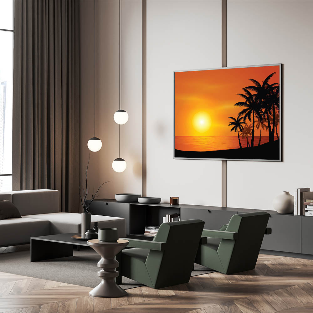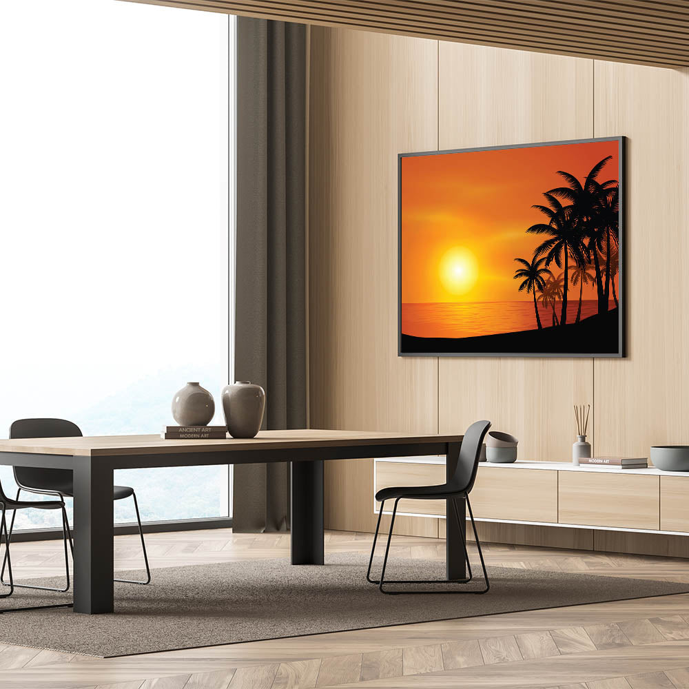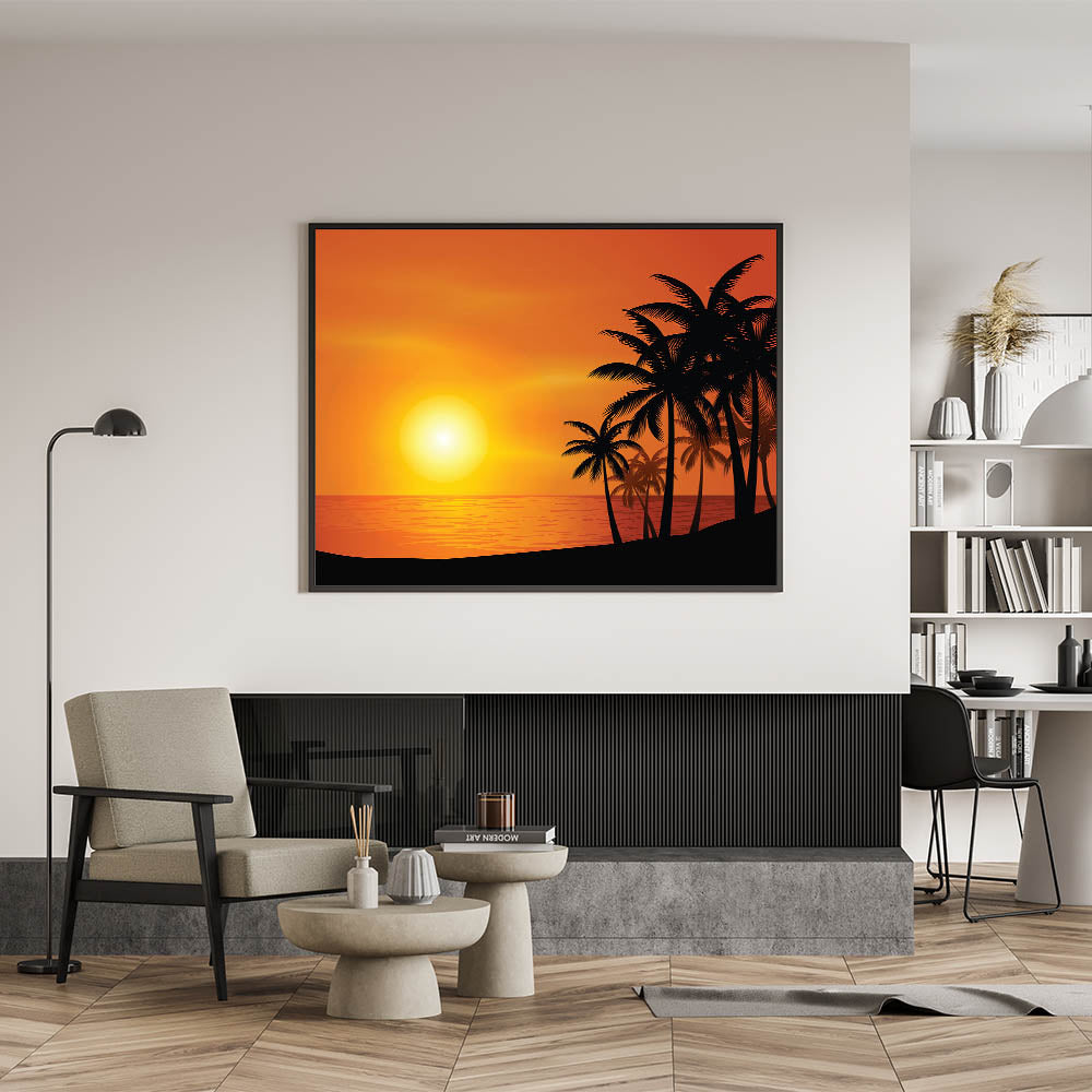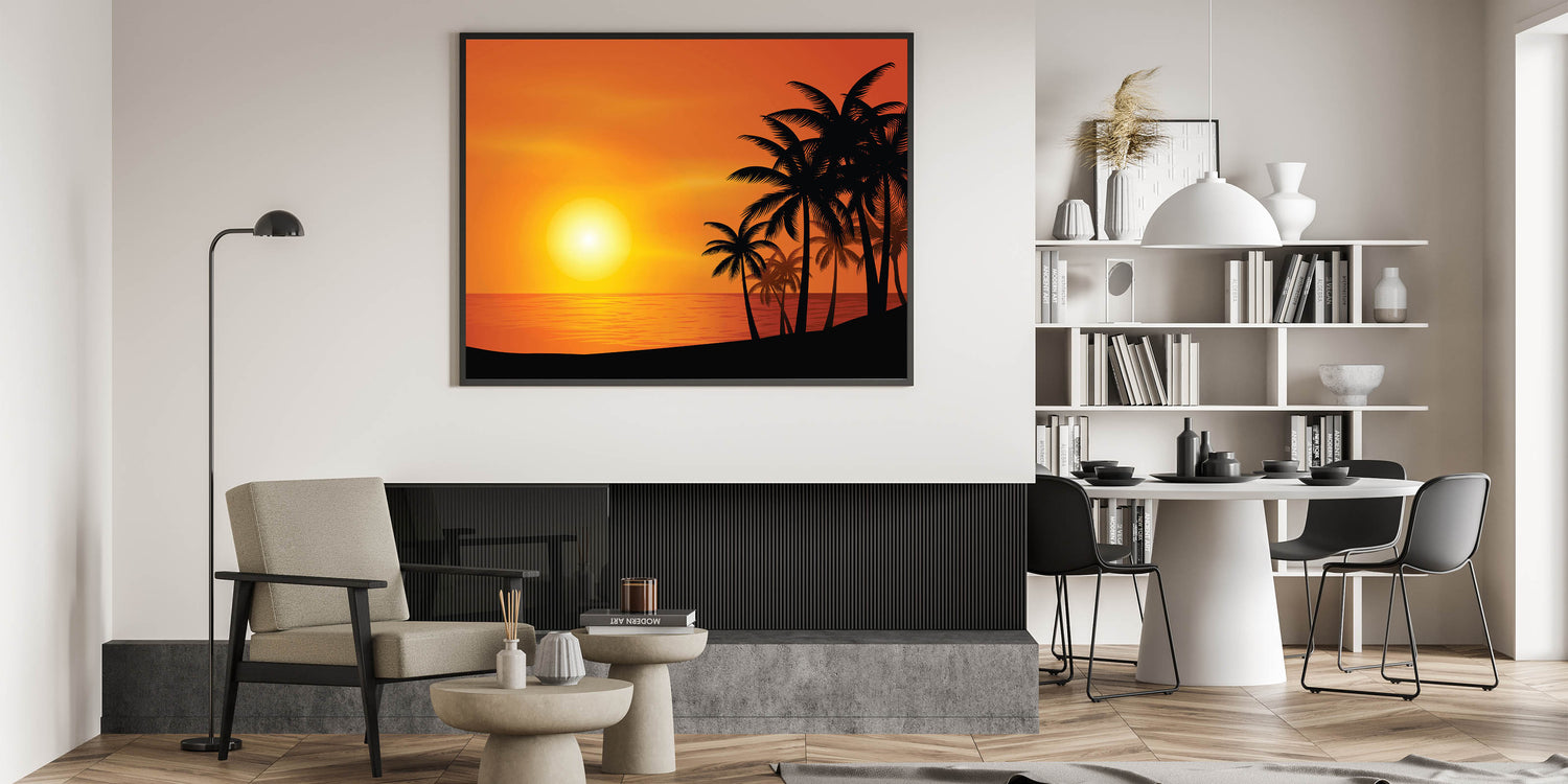 - High-quality print that captures the vivid colors of the sunset and the sharp silhouette of the palm trees.