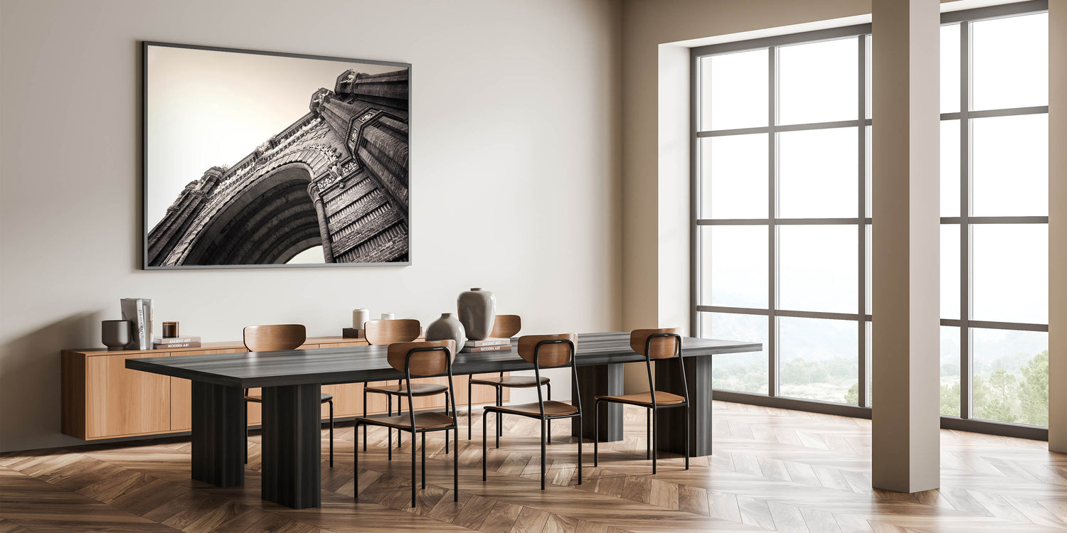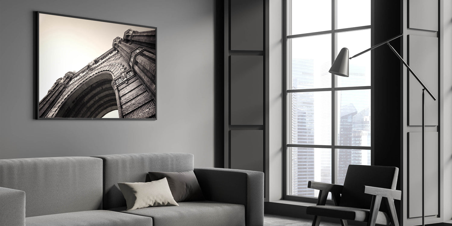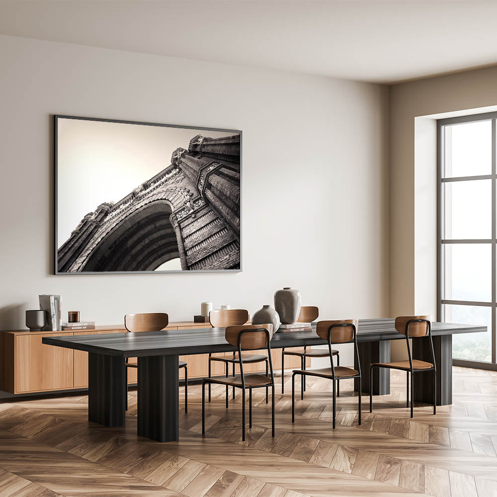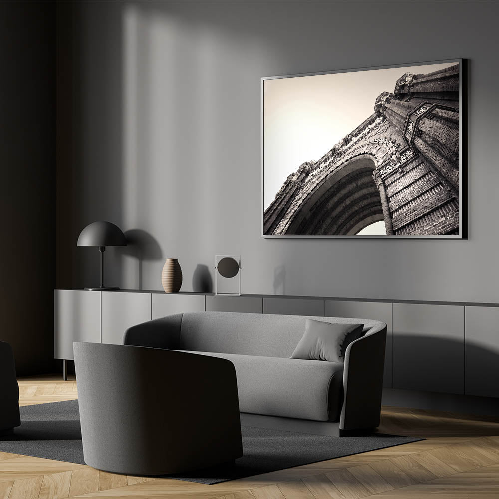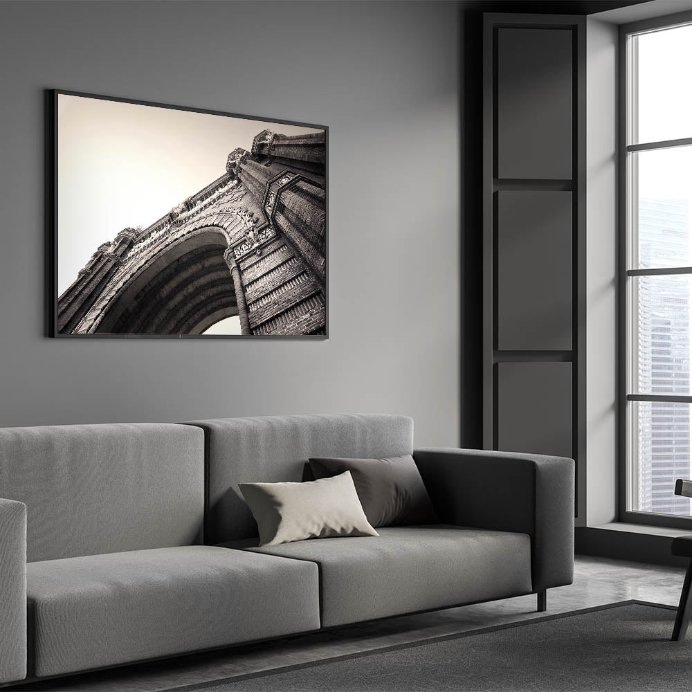 Add a piece of Barcelona’s architectural history to your space with this Barcelona canvas print featuring the intricate details of the Arc de Triomf. The upward view showcases the elegant arches and ornate carvings, making this a perfect addition to any room. The sepia tones and perspective create a timeless, classic look, making this artwork ideal for architecture lovers and travelers alike.