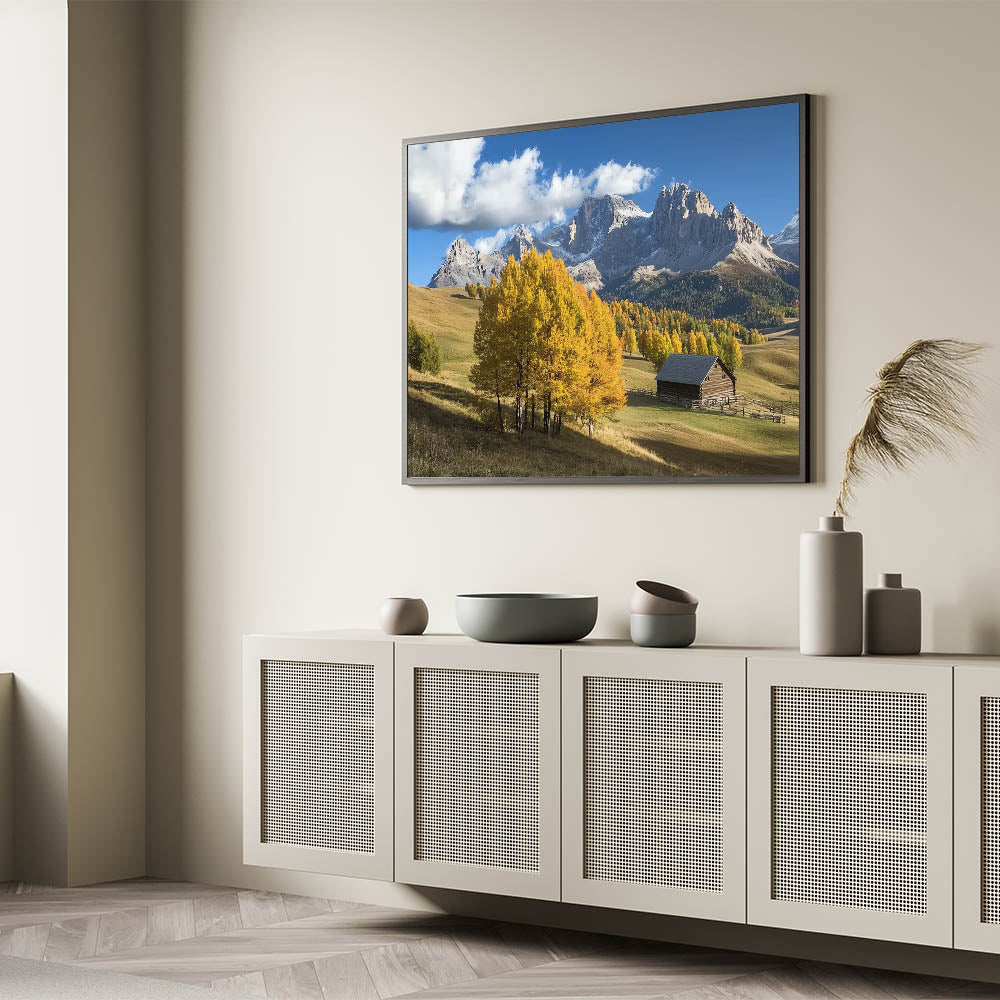 - Customizable material options, including rolled canvas and framed prints, to match any decor style.