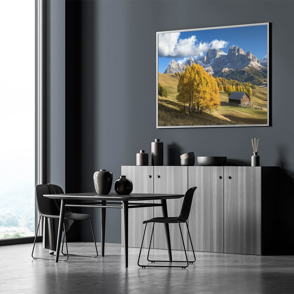 Add this countryside-themed wall art to your collection and bring the tranquility of autumn landscapes to your space. Whether you're seeking rustic wall decor or mountain landscape prints, this design offers timeless beauty and elegance.