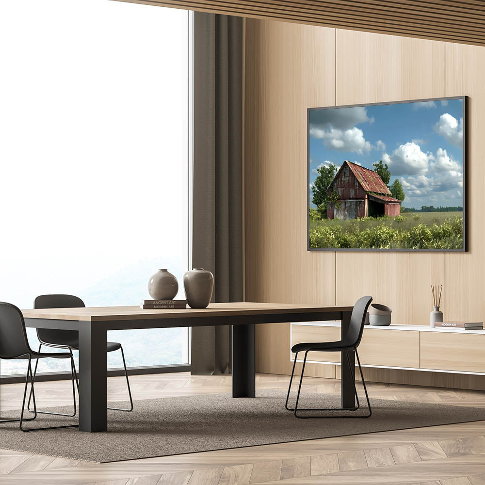This rustic barn landscape is more than just a piece of art; it's a glimpse into the simplicity and beauty of country life. Whether displayed in your living room, bedroom, or study, it will bring warmth and character to your decor.