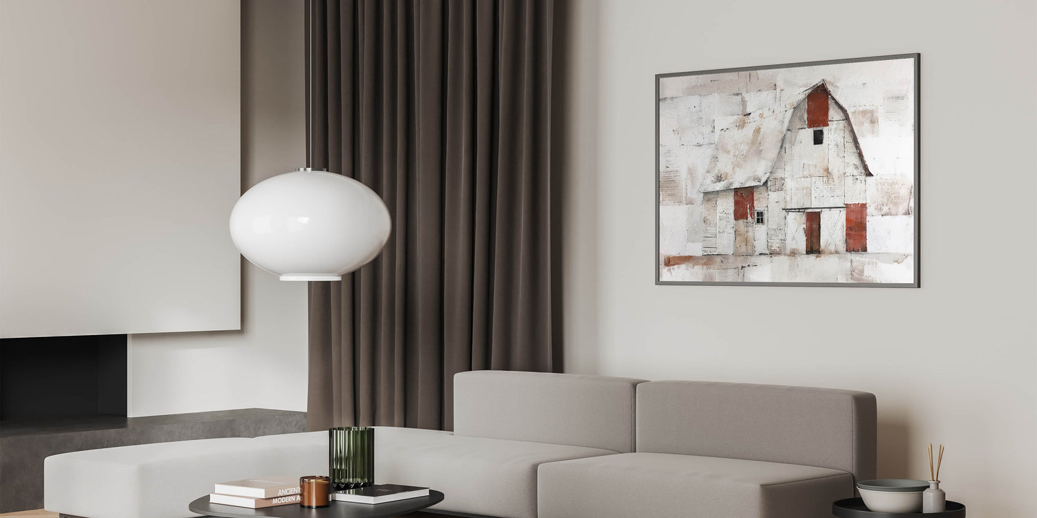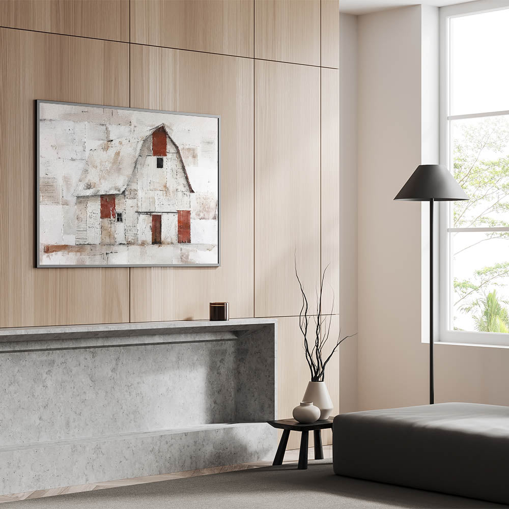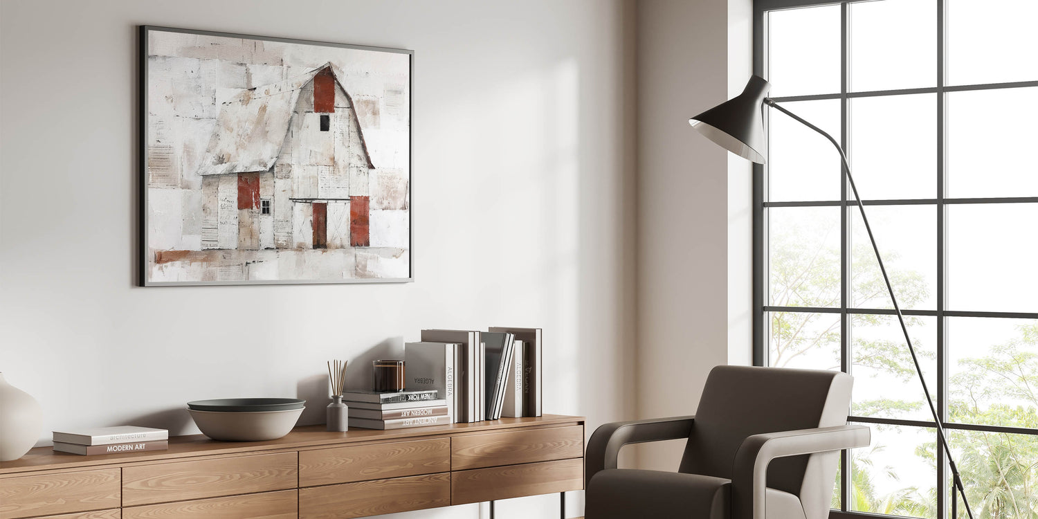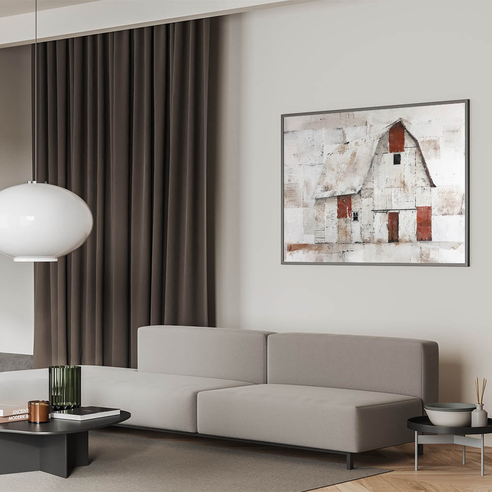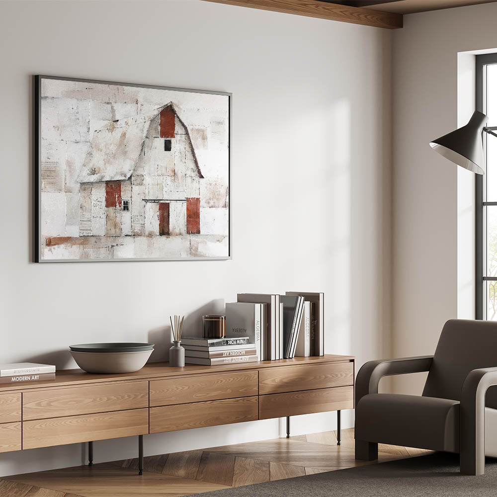 This rustic red barn wall art brings the essence of countryside living into your home. Featuring a beautifully weathered barn with a soft, vintage color palette, this piece is perfect for those looking to create a warm and welcoming atmosphere. The worn textures and faded red accents make this barn-themed wall art ideal for farmhouse or rustic-inspired decor.