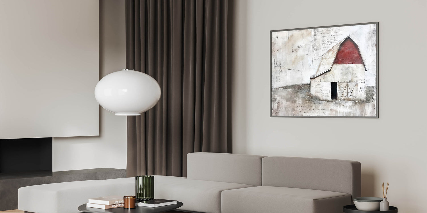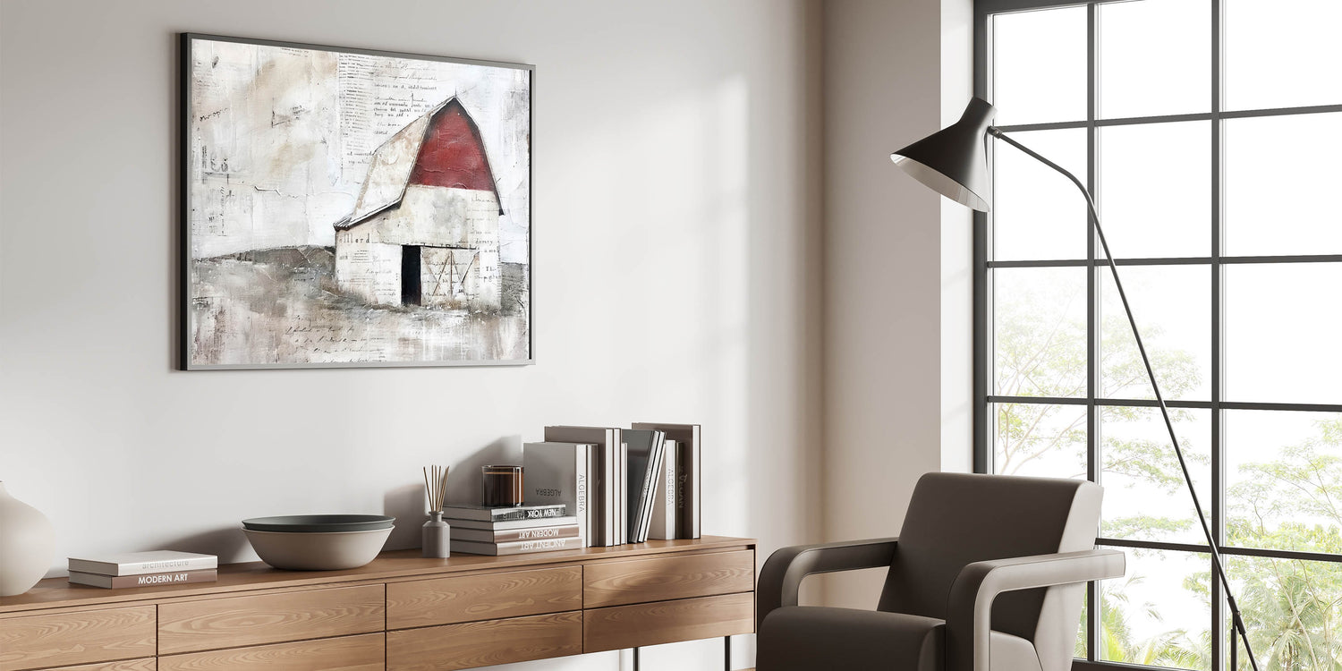 Vintage Barn Wall Art - Rustic Farmhouse Red Barn Canvas with Aged Charm