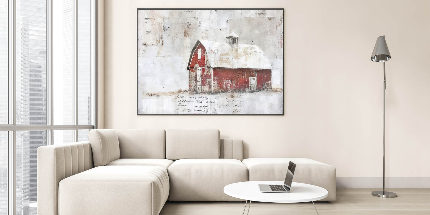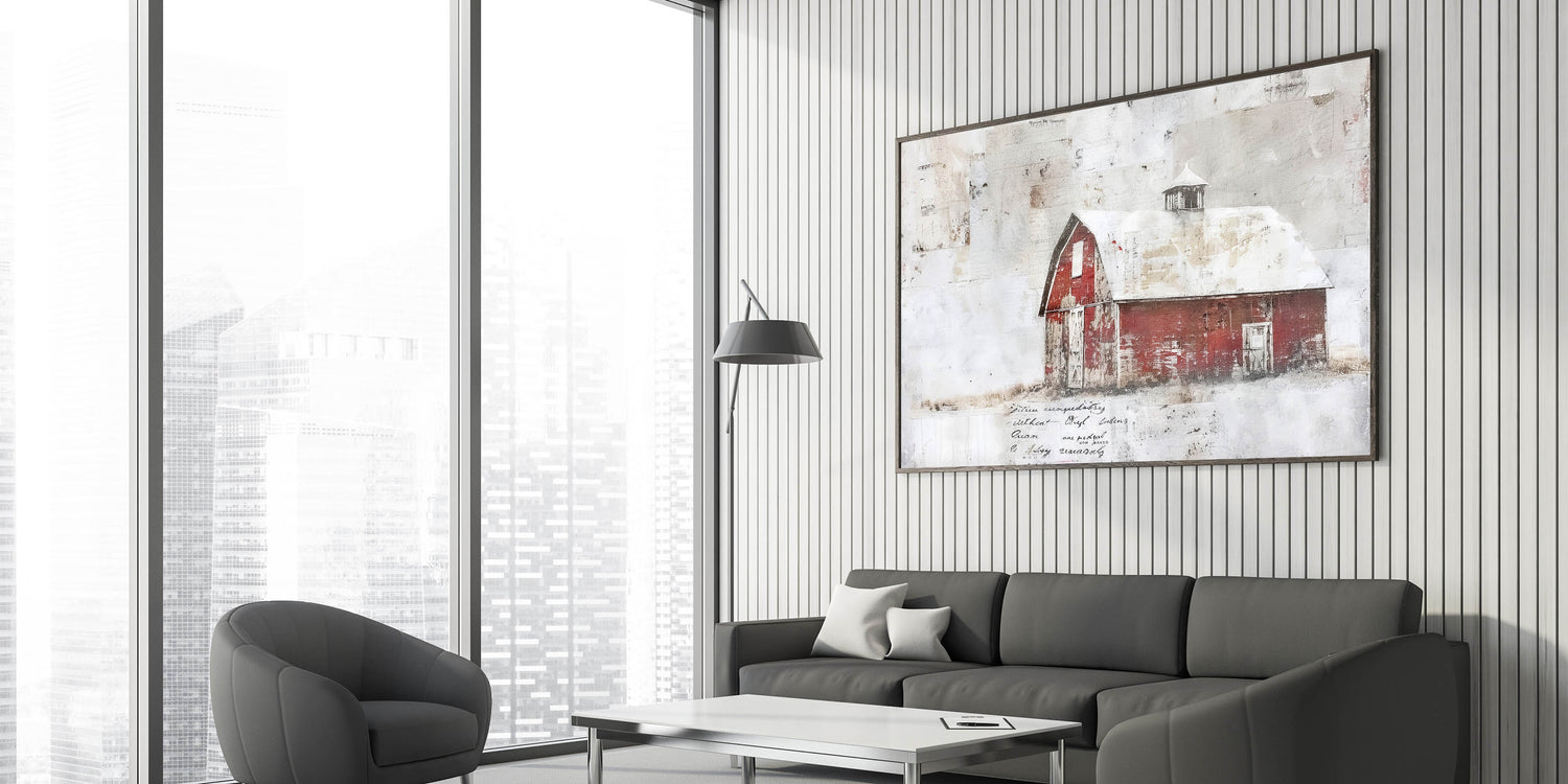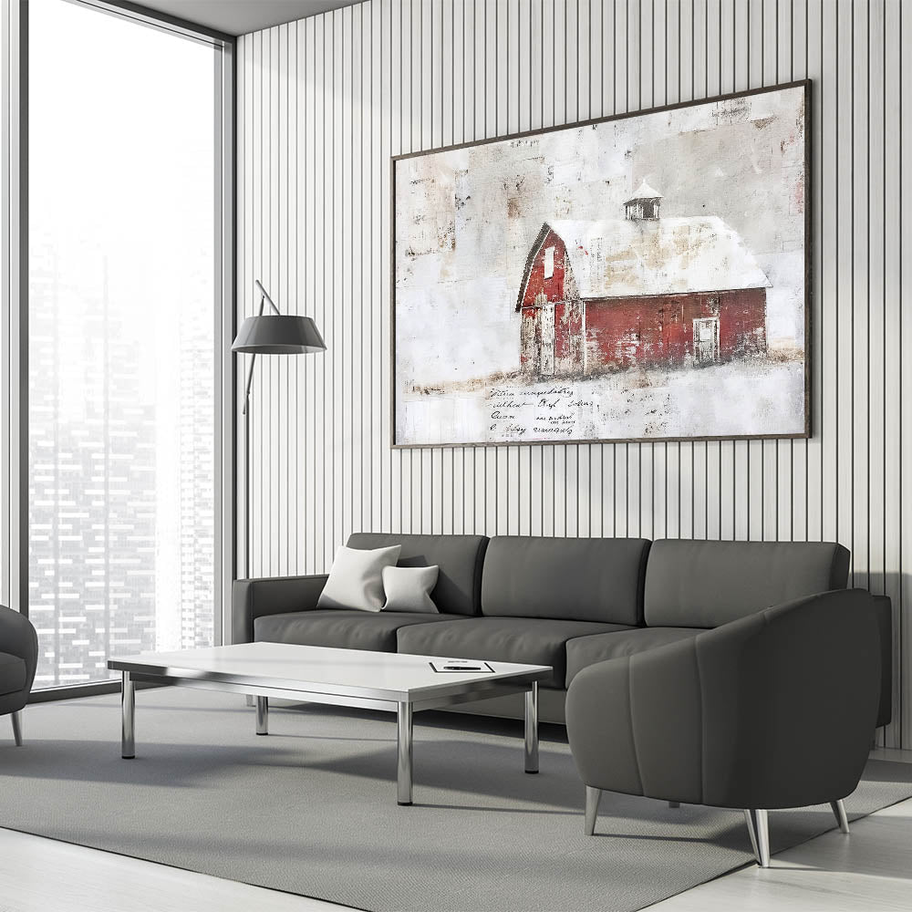 This rustic barn wall art brings the charm of a weathered red barn to your home, evoking the simplicity and beauty of rural life. The distressed red barn with its aged, whitewashed roof is the perfect accent for any farmhouse or country-style decor. The textured details and muted tones offer a nostalgic and timeless feel, making this piece a standout addition to any room. Whether you're looking to create a cozy living space or add a vintage touch to your hallway or dining room, this barn wall art delivers the perfect blend of rustic charm and modern elegance.