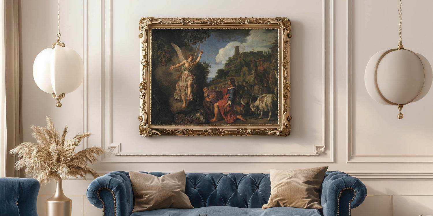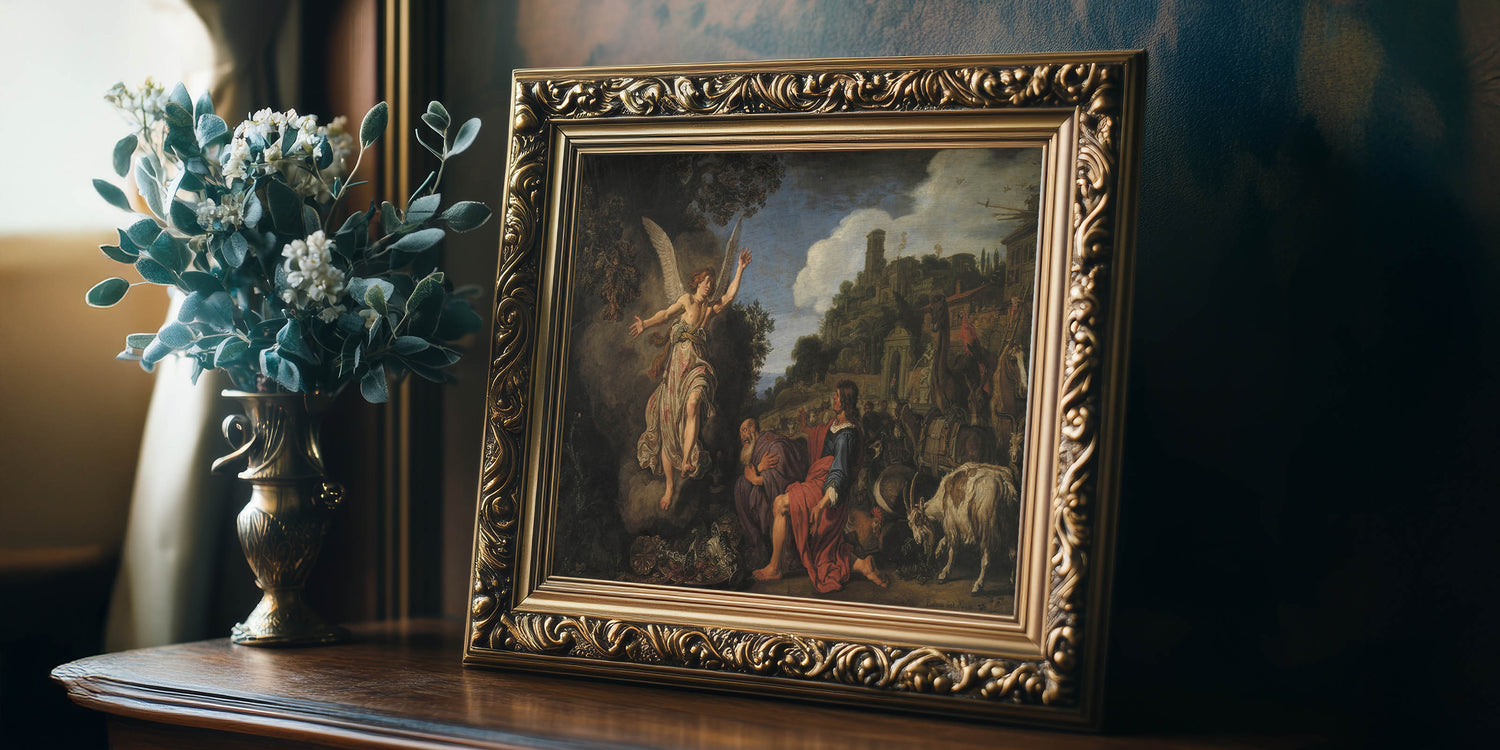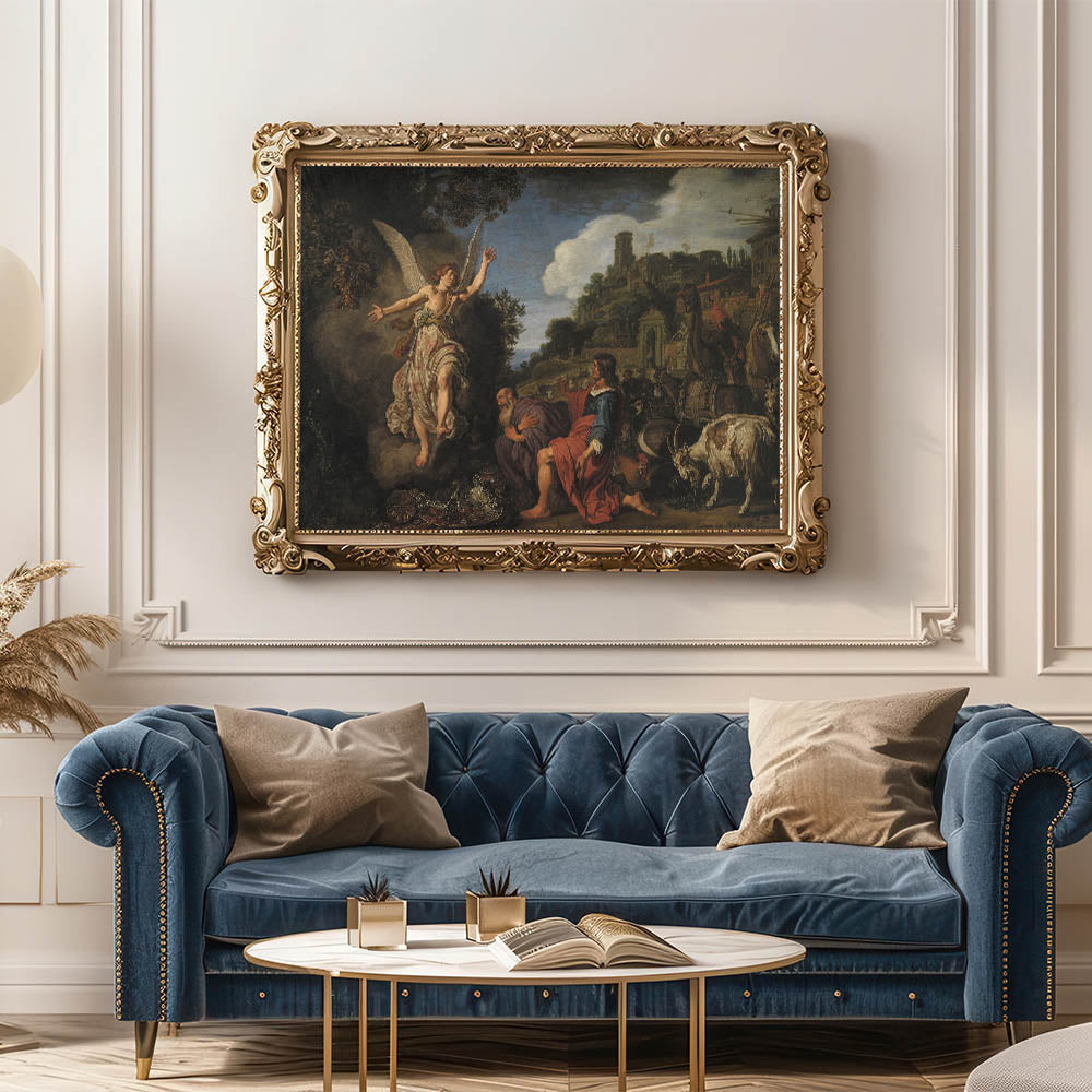 Bring the opulence and drama of Baroque art into your home with this stunning depiction of an angelic encounter. This masterpiece captures the intricate details, vivid contrasts, and emotional depth that define the Baroque period. Perfect for those who admire historical art and timeless artistic expression, this piece adds elegance and grandeur to any space.