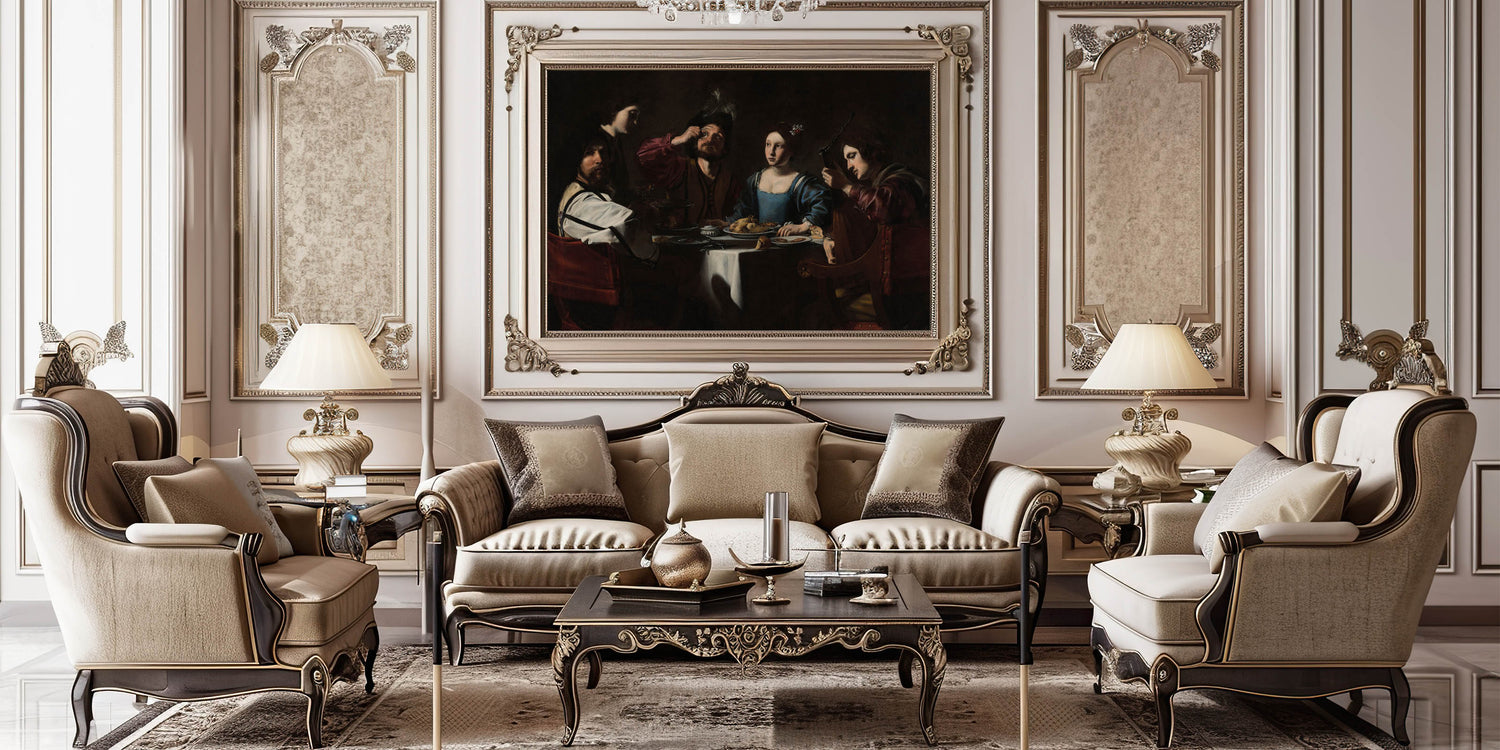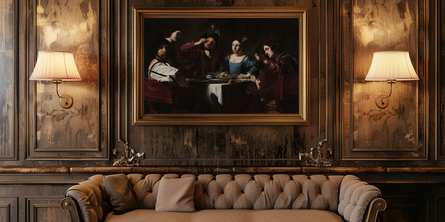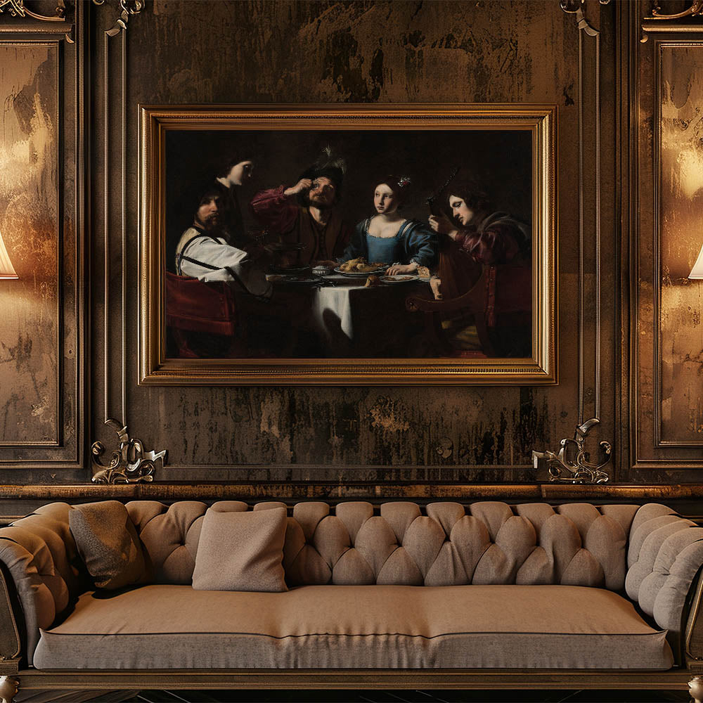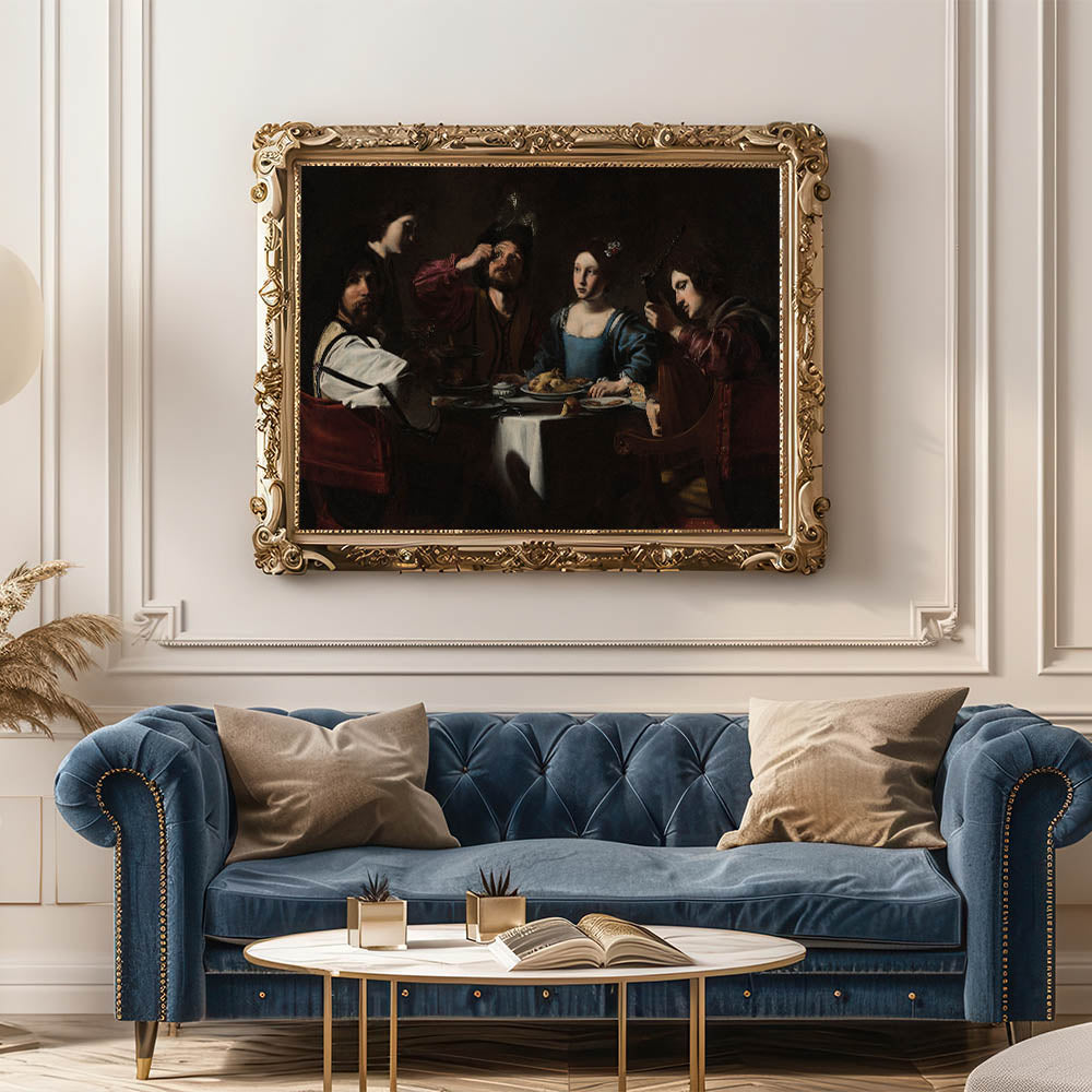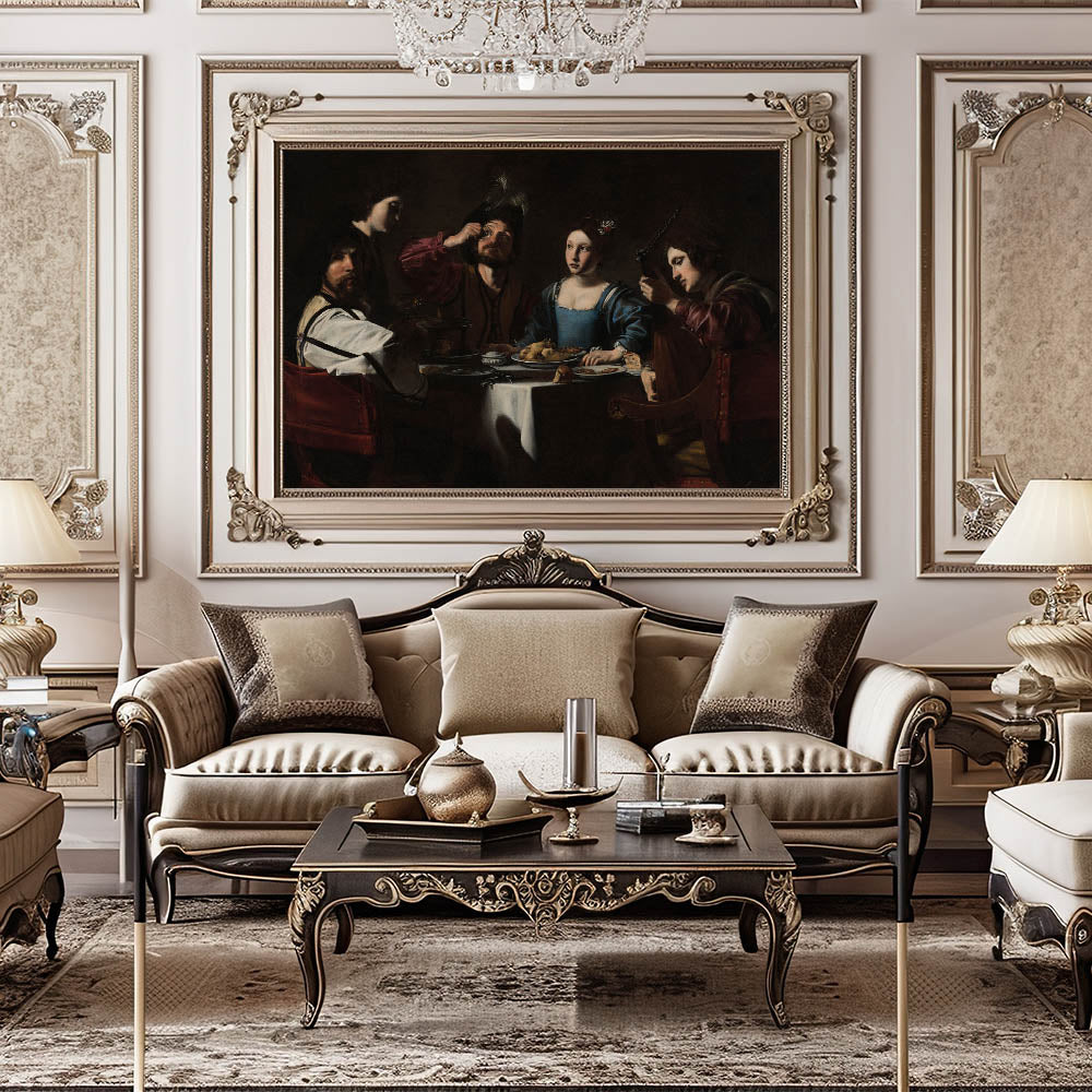 Elevate your interior decor with this stunning Baroque wall art, capturing the essence of historical elegance and timeless artistry. This classic painting portrays an intimate dining scene, featuring detailed Baroque designs and elegant Rococo styles that exude sophistication. Perfect for lovers of historical art, this piece embodies the artistic elegance of the Baroque and Rococo periods.