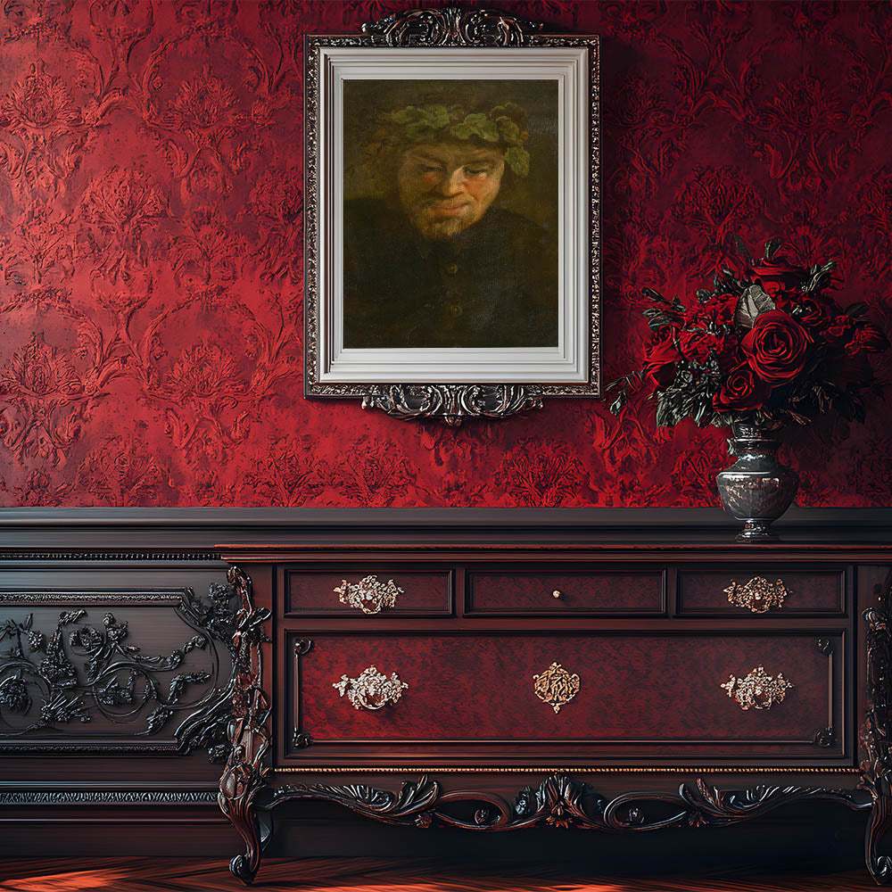 - Rich, dark hues with intricate detailing bring historical elegance to life.