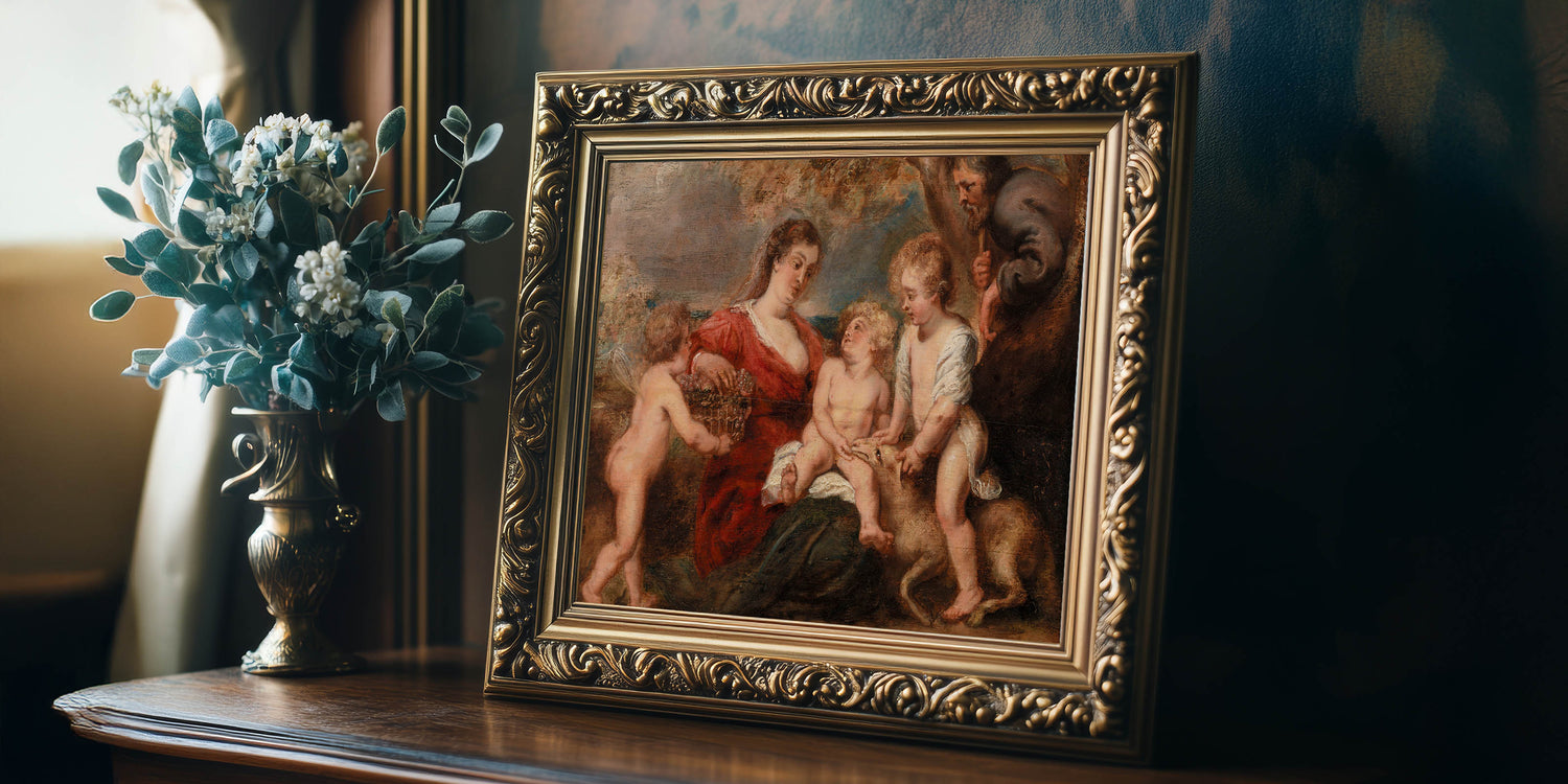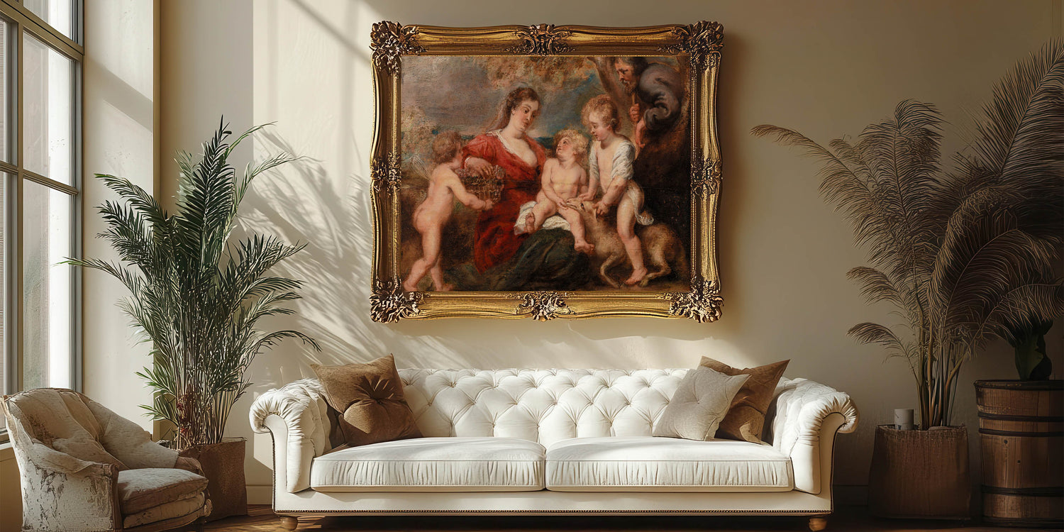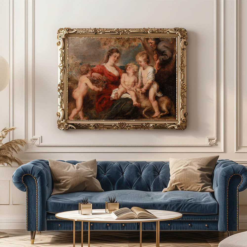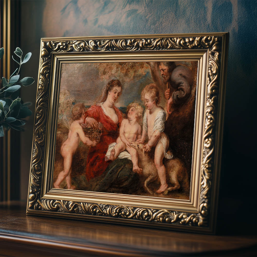 Transform your home into a space of tranquility and devotion with this timeless depiction of familial and divine love, a hallmark of Baroque artistry.