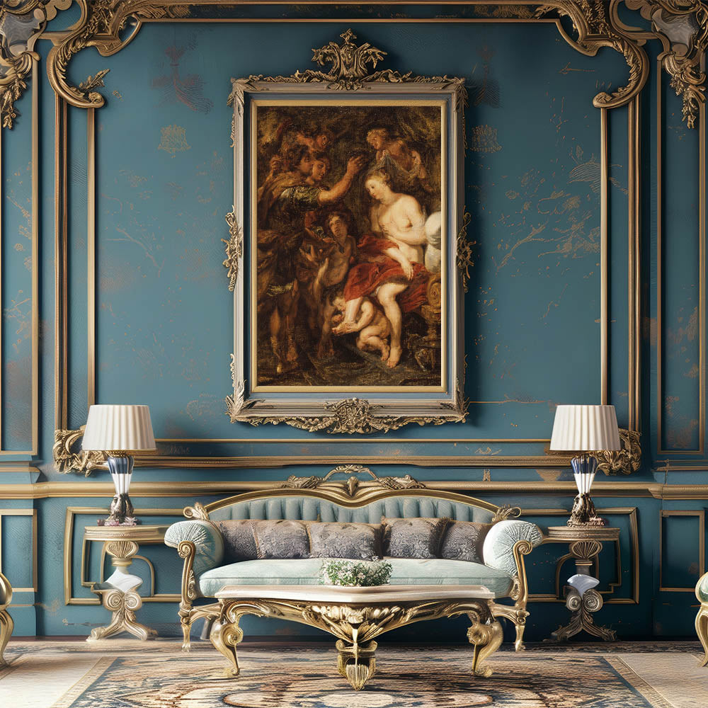 This artwork is a celebration of love, beauty, and Baroque artistry, perfect for transforming your space with timeless charm and romantic allure.