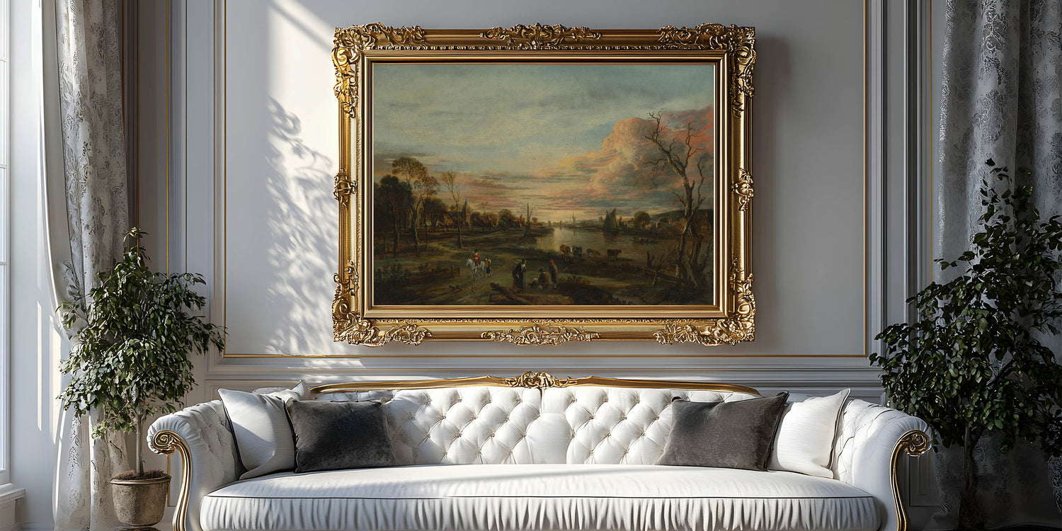This masterpiece of Baroque landscape art captures the charm of nature and human life in harmony. Add warmth, depth, and artistic sophistication to any interior space with this timeless piece.