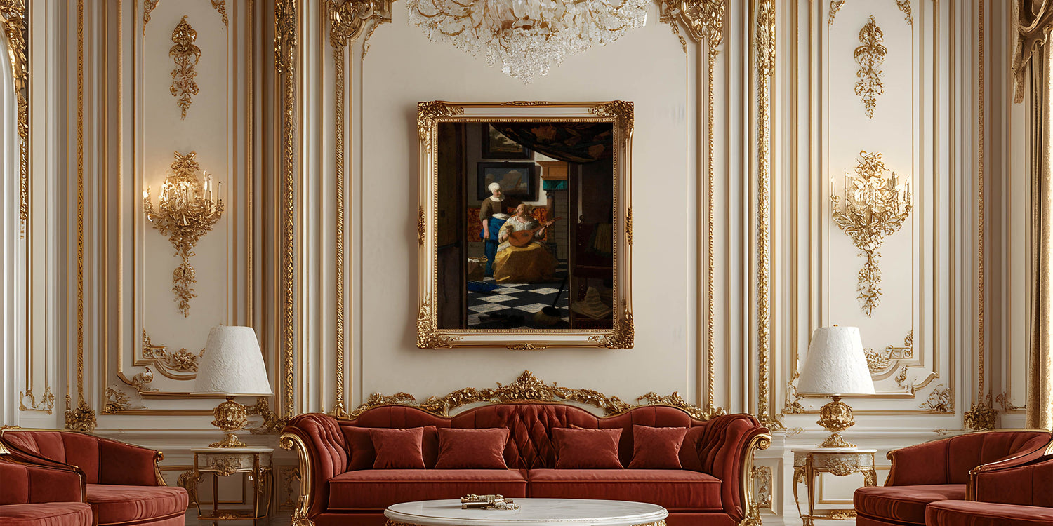 Baroque Musical Scene Wall Art - Elegant Indoor Composition