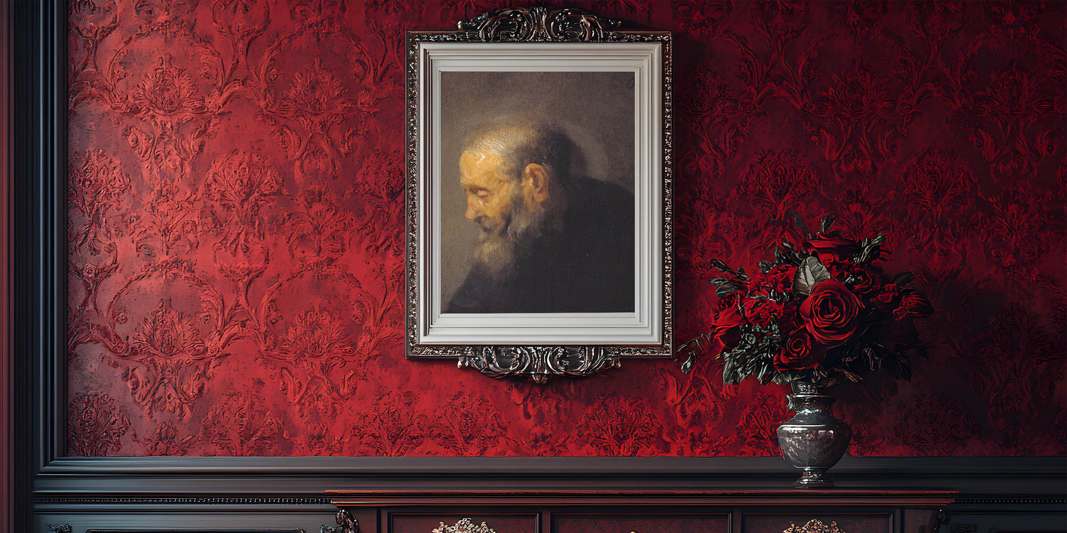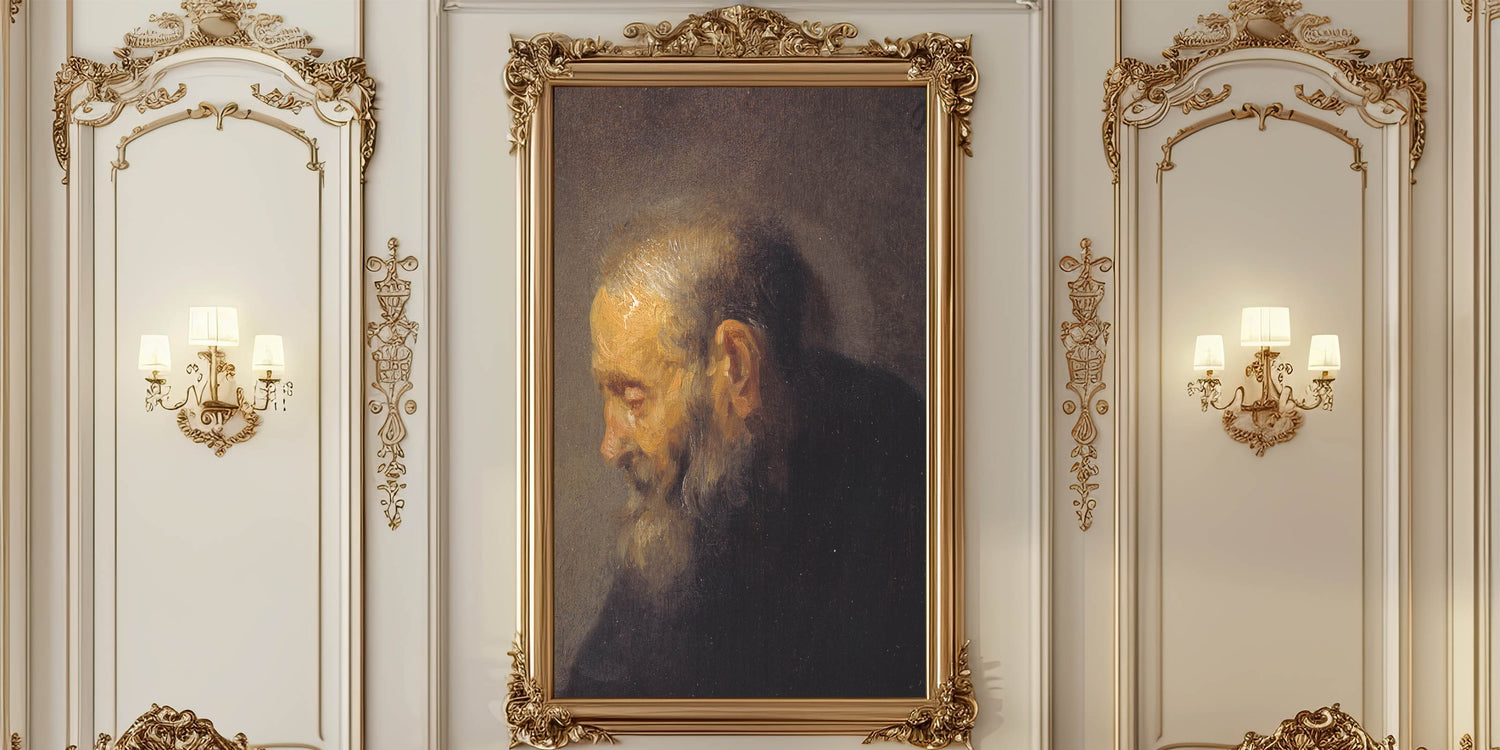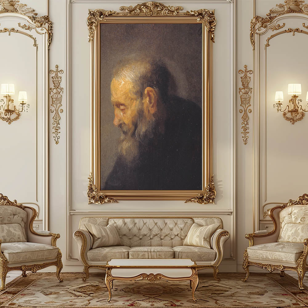Enhance your space with this deeply emotive Baroque portrait of an elderly man. The artwork captures a moment of quiet introspection, highlighting the masterful use of light and shadow characteristic of the Baroque era. The textured brushstrokes and subtle details in the subject's expression evoke a profound sense of humanity and history.