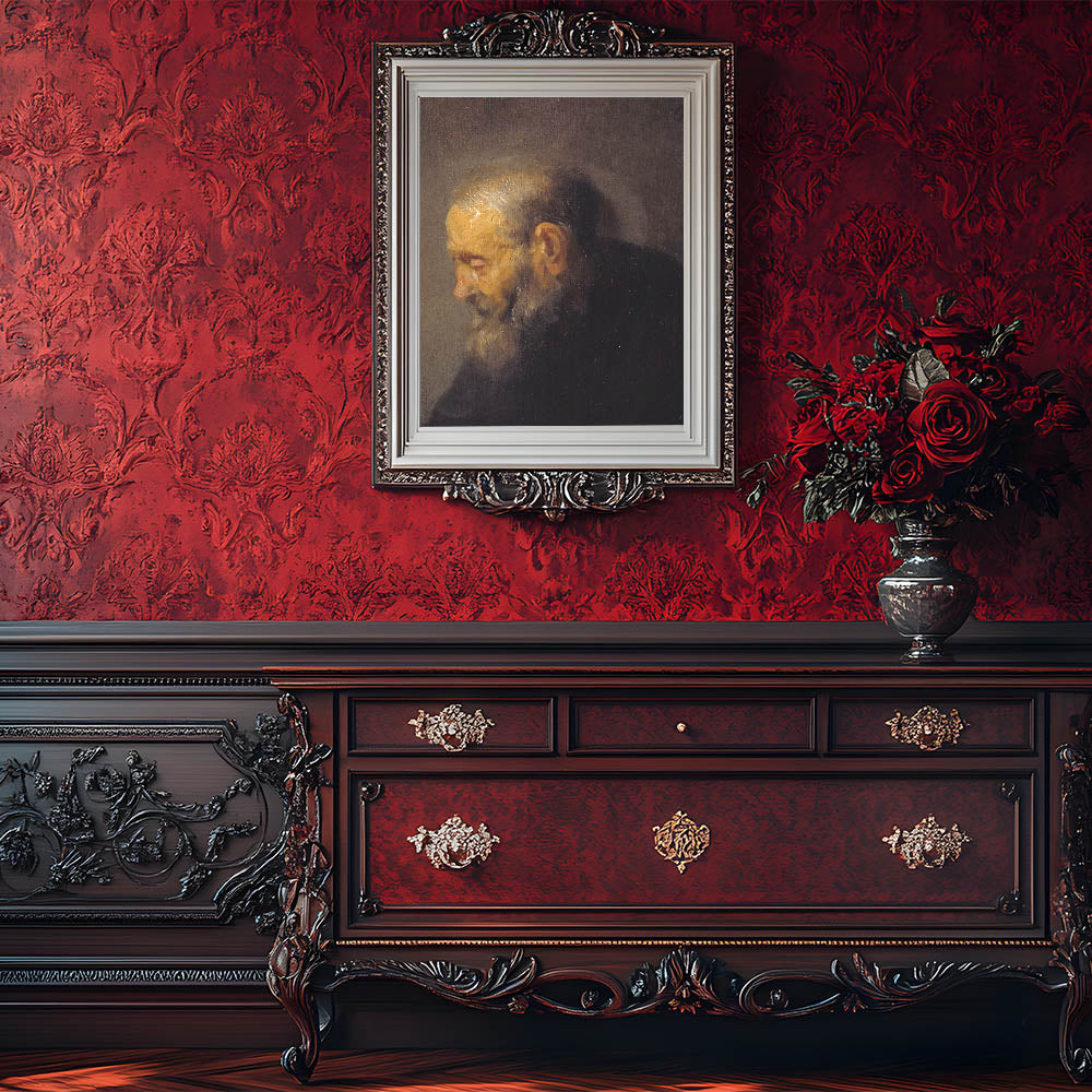 • Design: Introspective Baroque portrait with intricate light and shadow contrasts.