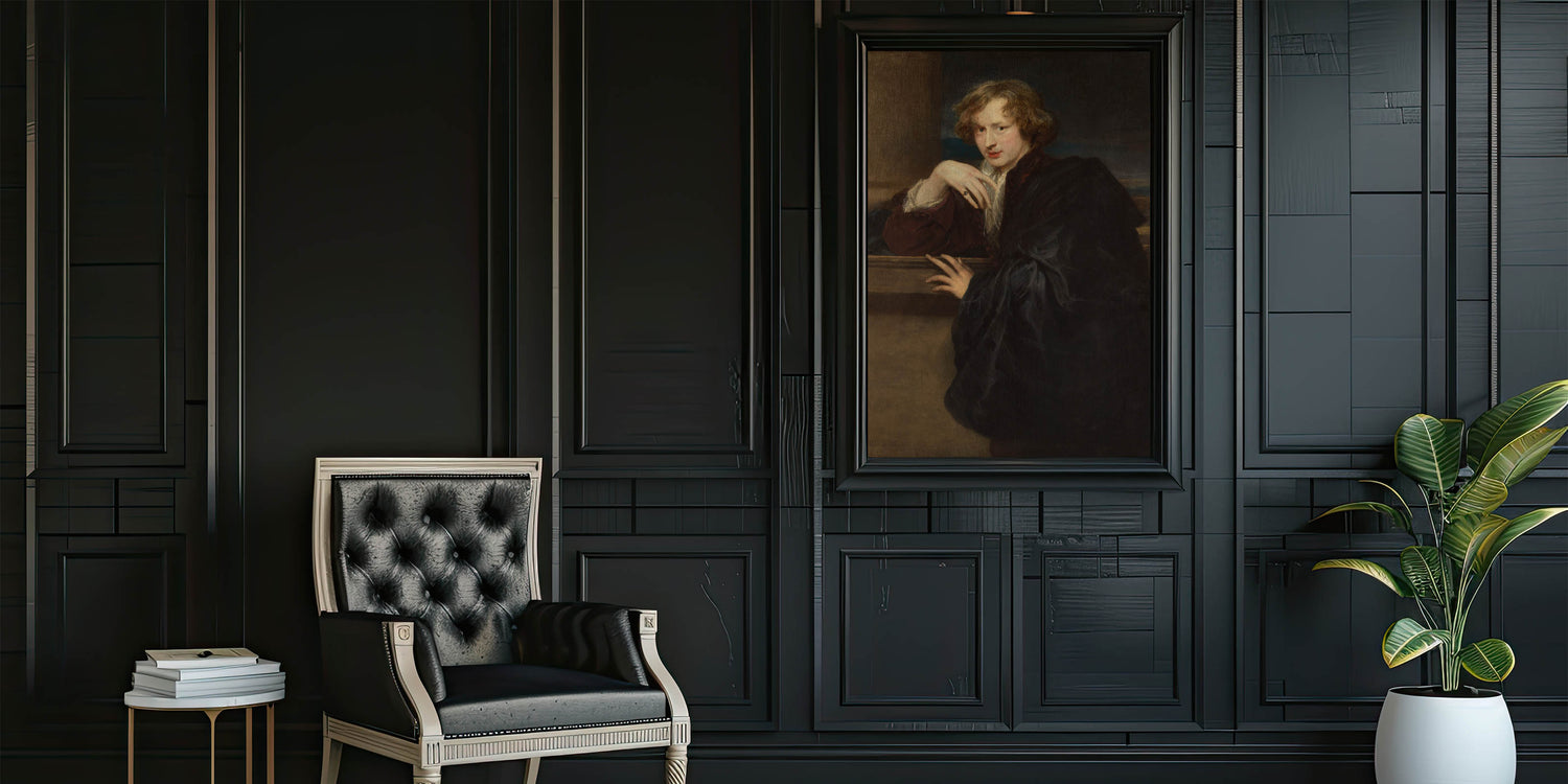 Add a touch of sophistication to your space with this captivating Baroque portrait, a masterpiece that exudes timeless artistic expression. This work of art features a refined subject dressed in luxurious, dark fabrics, accentuating the elegance and depth characteristic of Baroque art. The subtle play of light and shadow enhances the emotional intensity of this piece, making it an exquisite addition to your decor.