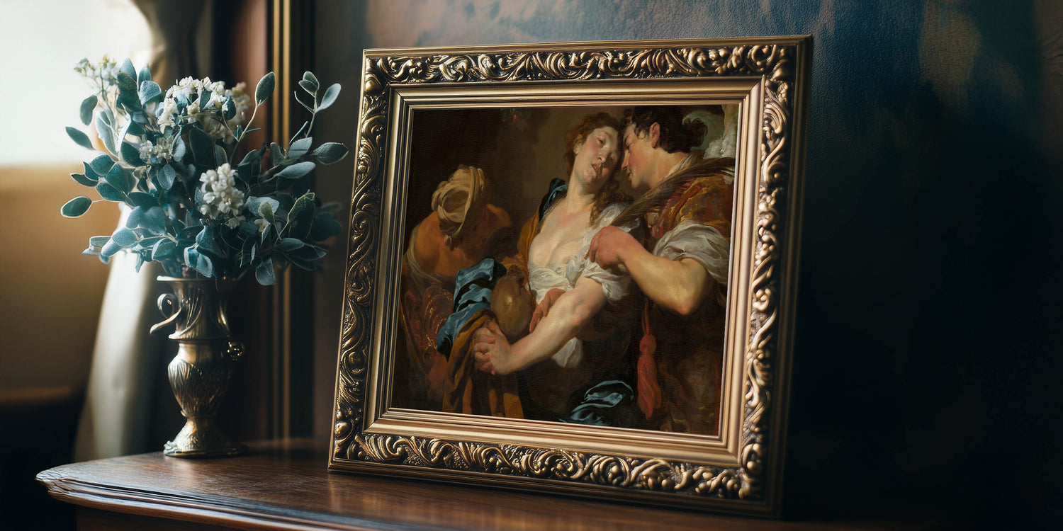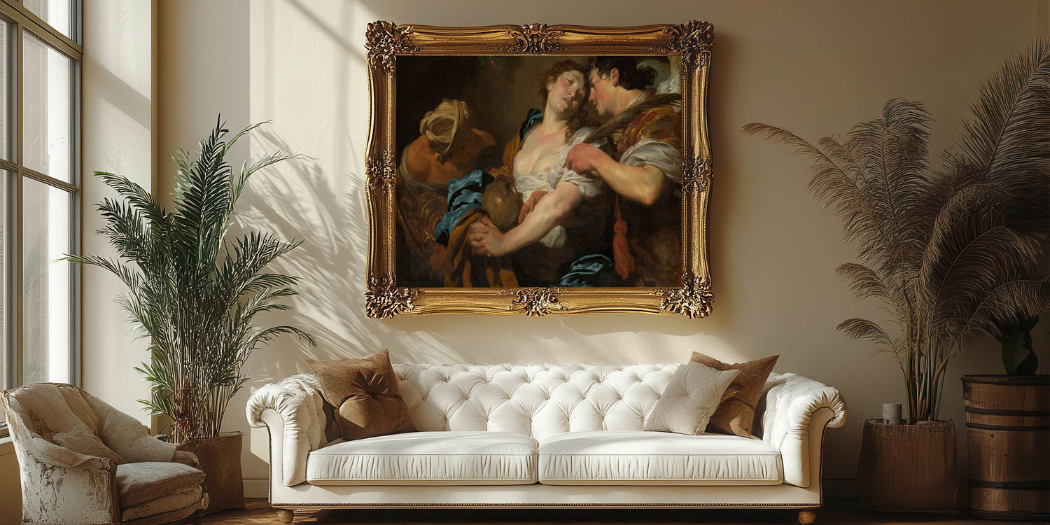 Baroque Romantic Scene: Classic Art Print with Emotional Depth