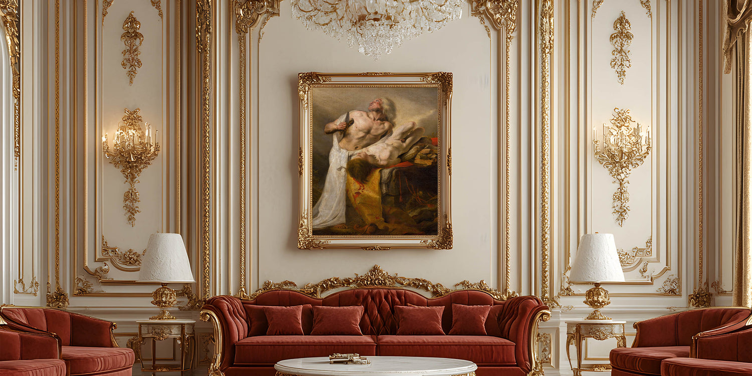 This classic art print is ideal for those who appreciate the passion and emotional depth of Baroque and Rococo wall art. Bring a piece of history into your home or office with this striking and meaningful artwork.