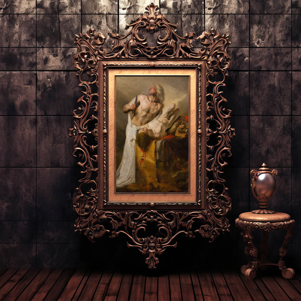 Experience the intense storytelling of Baroque art with this powerful depiction of a dramatic sacrifice scene. This artwork showcases raw emotion and dynamic composition, highlighting the artist's mastery of anatomy and light. The interplay of golden tones and deep shadows brings the figures to life, embodying the grandeur and depth of period art collections. The detailed drapery and symbolic elements further enhance the timeless artistic expression of this piece.