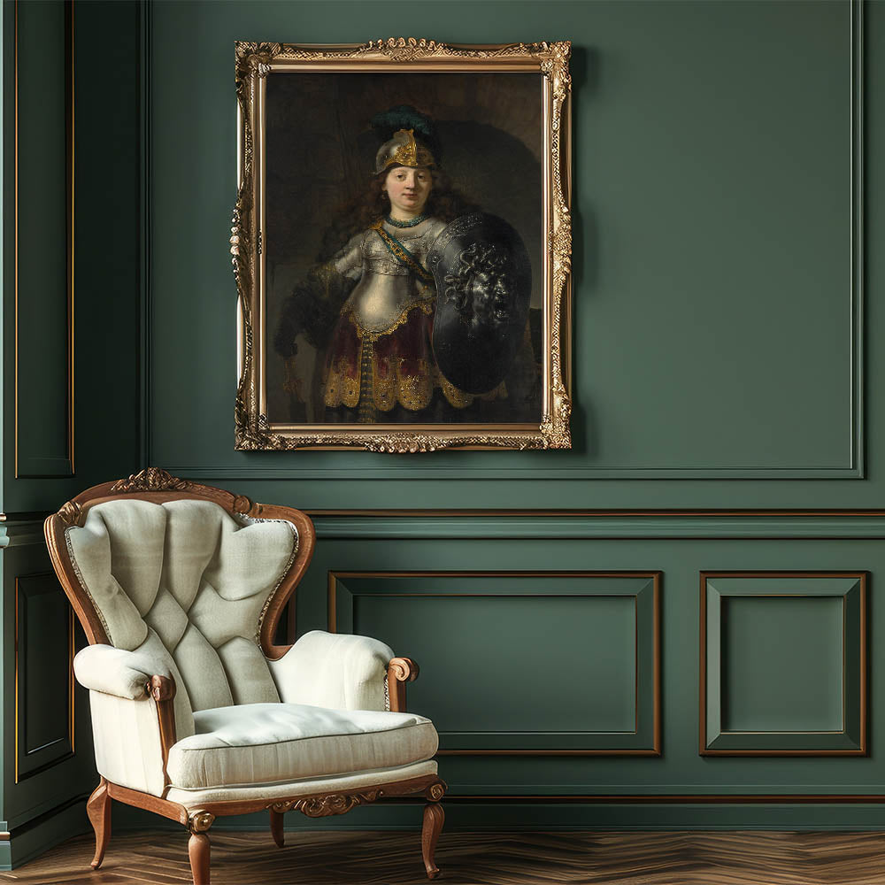 Introduce a captivating piece of historical art into your home with this striking Baroque Warrior wall art. This artwork beautifully captures the strength and elegance of a female warrior in traditional armor, representing the timeless heroism of Baroque figures. With its intricate detailing and bold expressions, this piece is perfect for those who appreciate both history and artistic elegance.