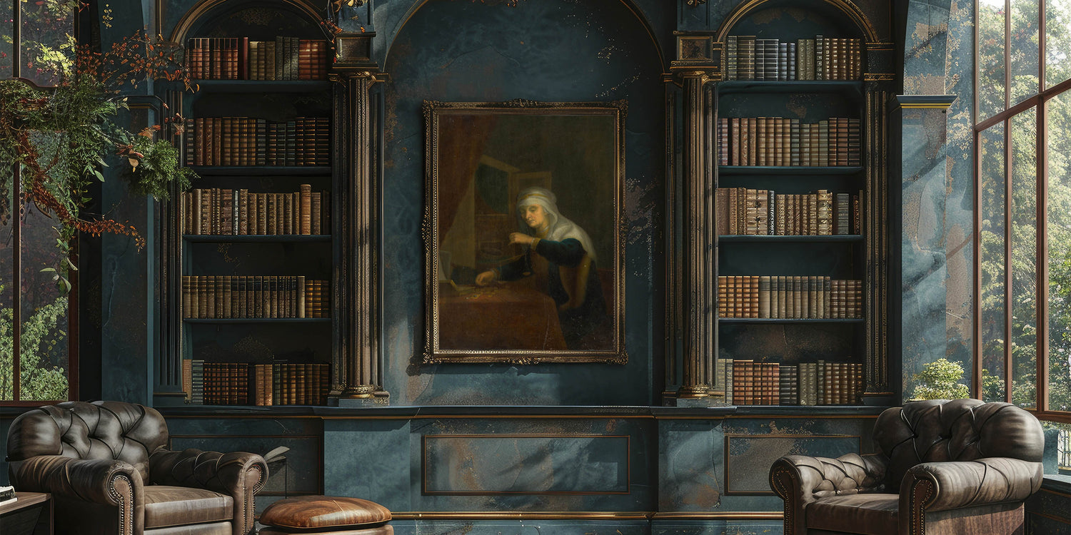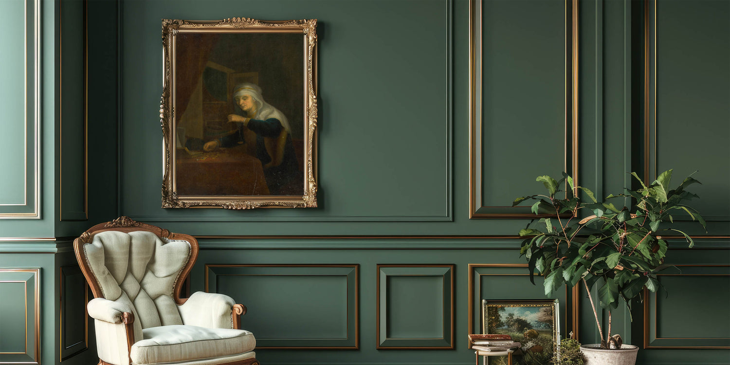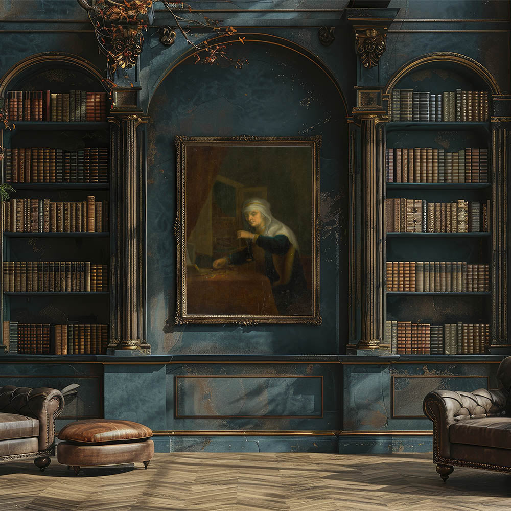 Delve into the serene sophistication of Baroque art with this intimate portrayal of a woman weighing coins. This artwork captures a moment of quiet contemplation and balance, symbolized by the scales in her hand. The soft glow of light, highlighting her face and surroundings, contrasts beautifully with the dark background, a hallmark of period art collections. The intricate detailing of her attire and the scattered coins evoke themes of diligence, prosperity, and moral reflection, making this piece a timeless representation of artistic elegance.