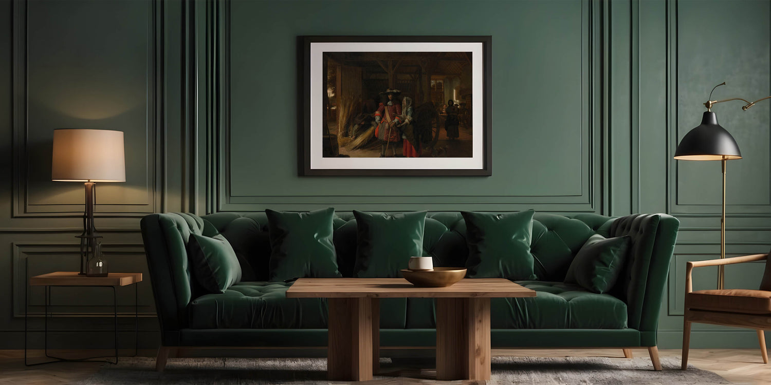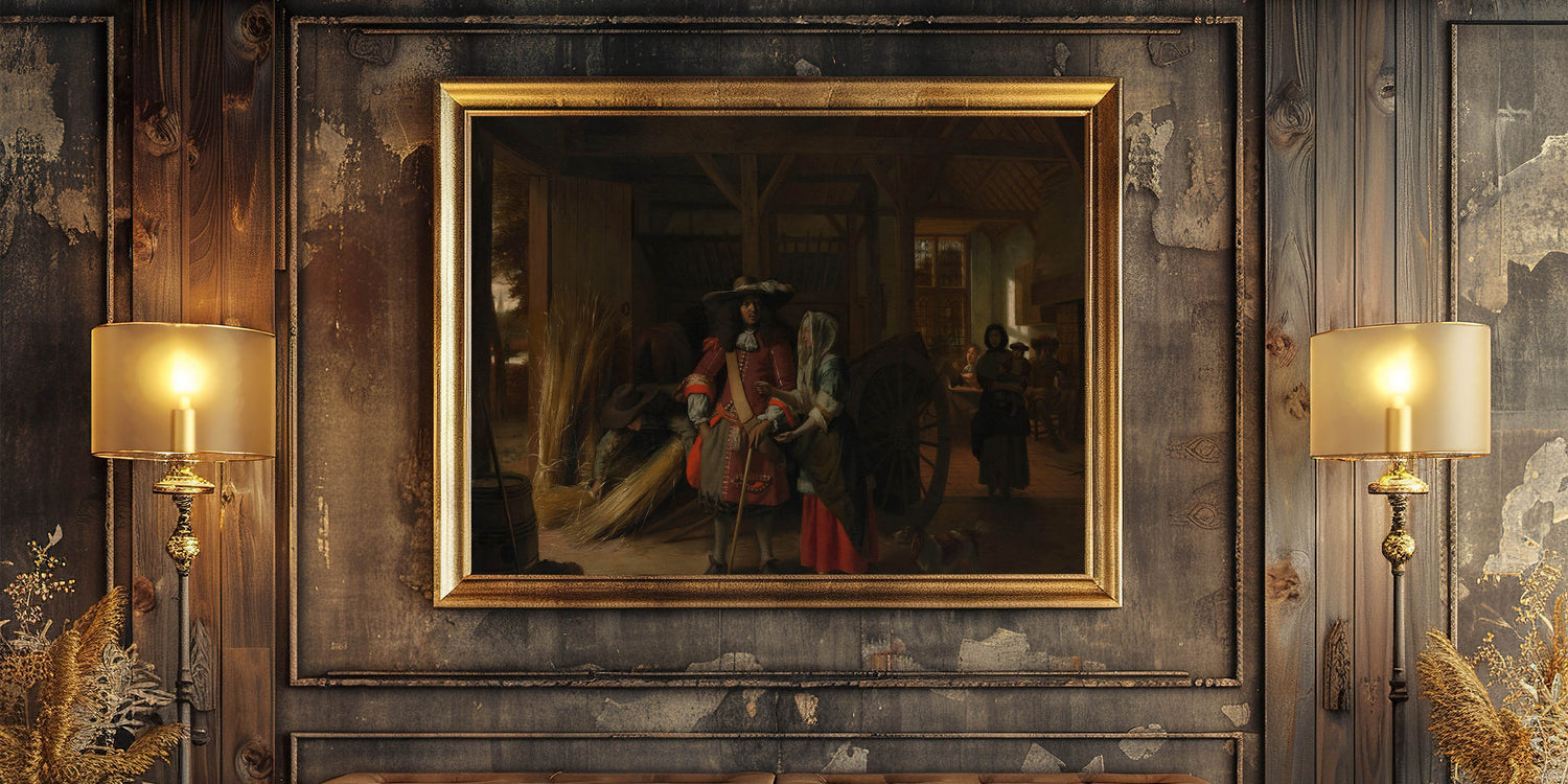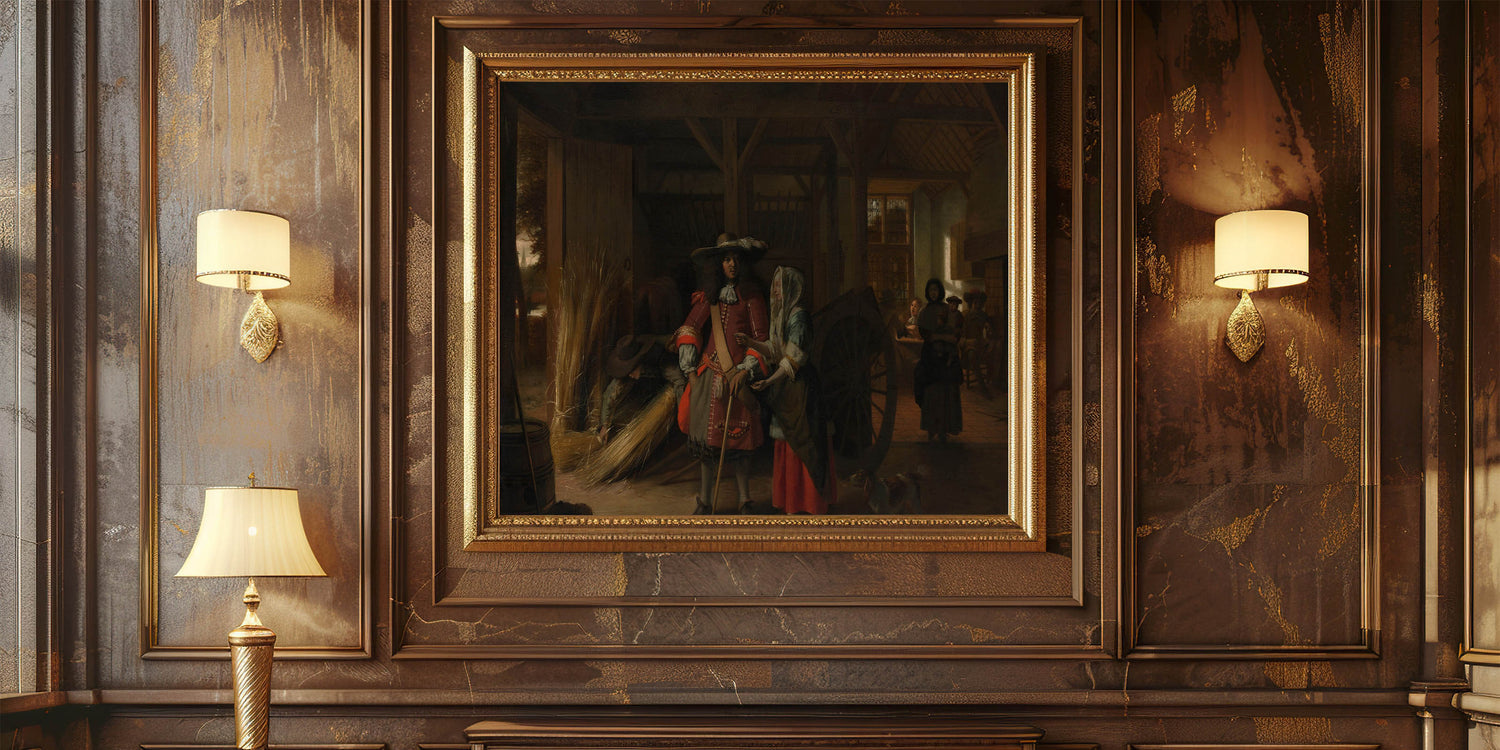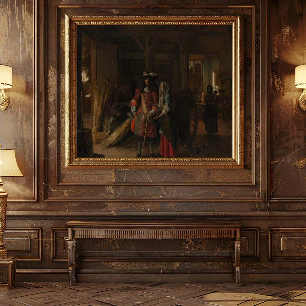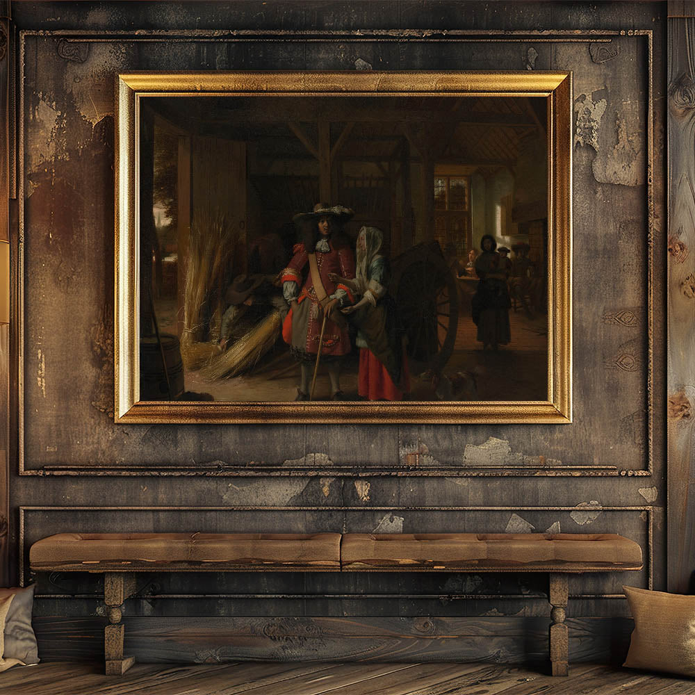 Bring the charm of the Baroque era into your home with this captivating artwork. This rustic scene masterfully showcases the intricate details and warm ambiance characteristic of Baroque art. The interplay of light and shadow in the composition highlights the elegance of daily life during this historical period, making it a timeless addition to your décor.