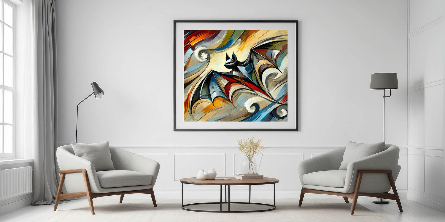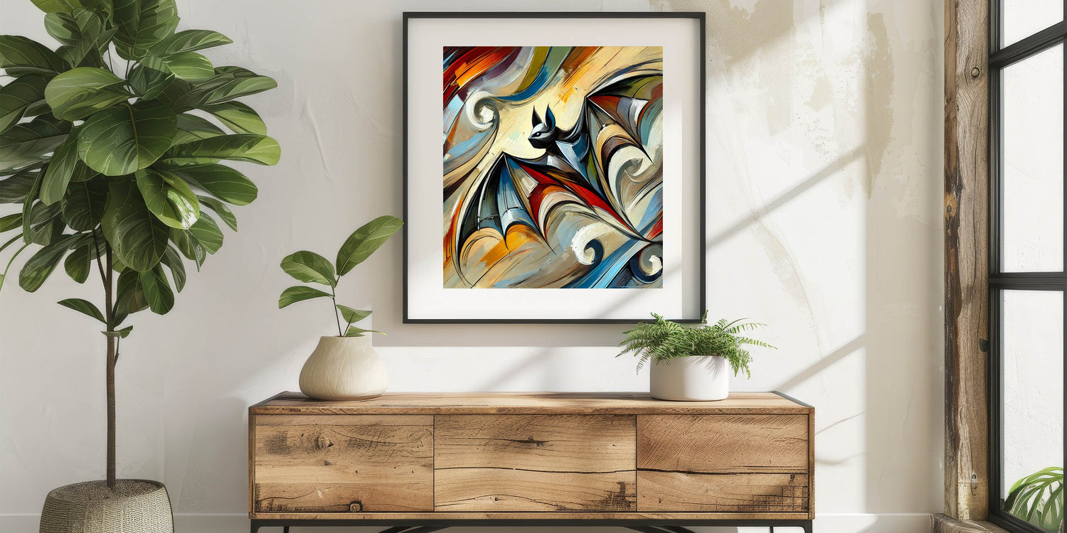 Transform your home or workspace with this artistic bat print, where wildlife meets modern abstract art. It’s not just decor; it’s an expression of style and creativity that will captivate anyone who sees it.