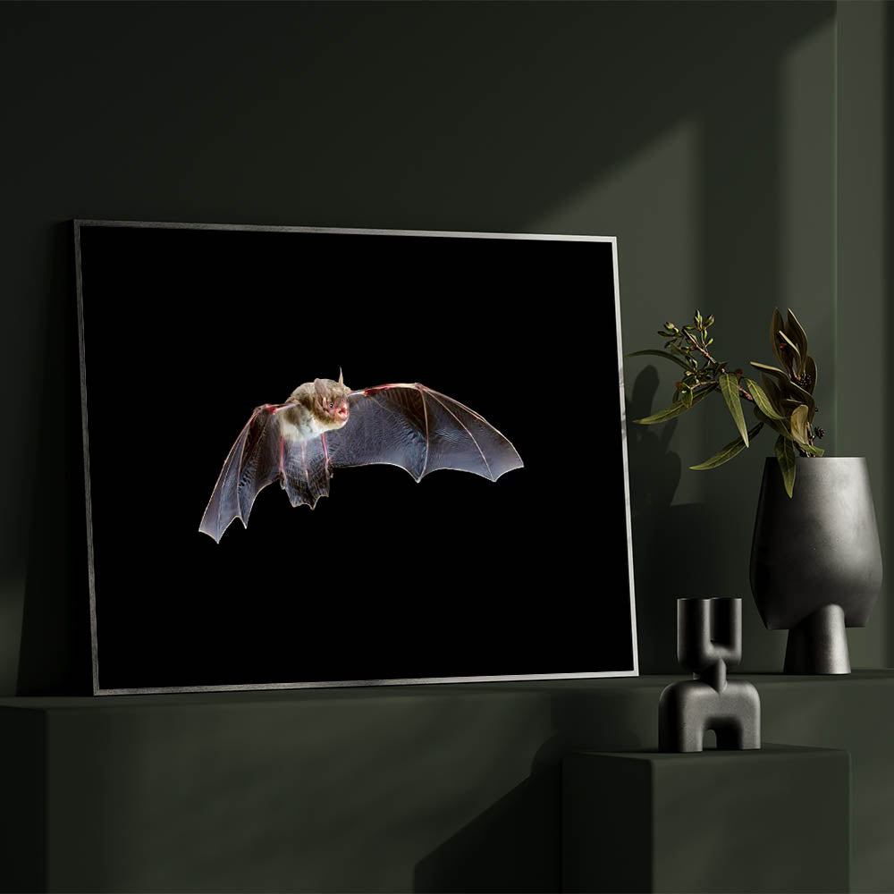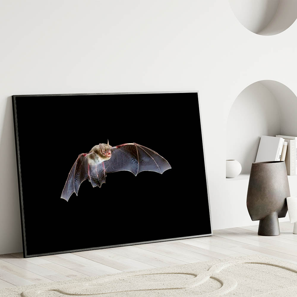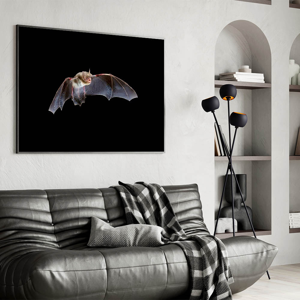 Add a touch of grace and intrigue to your home with this beautiful bat photography wall art. The exquisite detail and dramatic contrast make it a perfect addition for nature lovers and art enthusiasts alike.