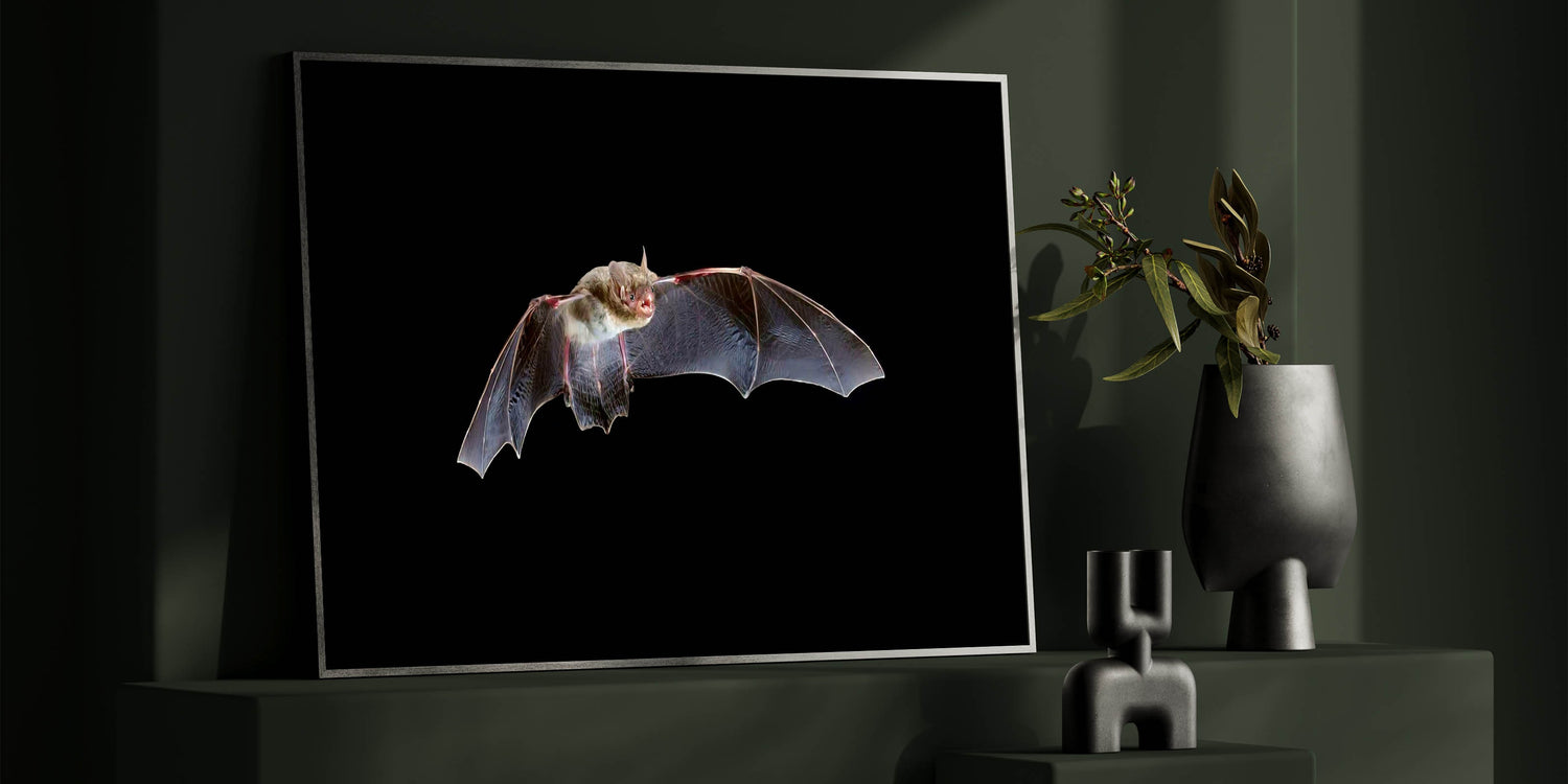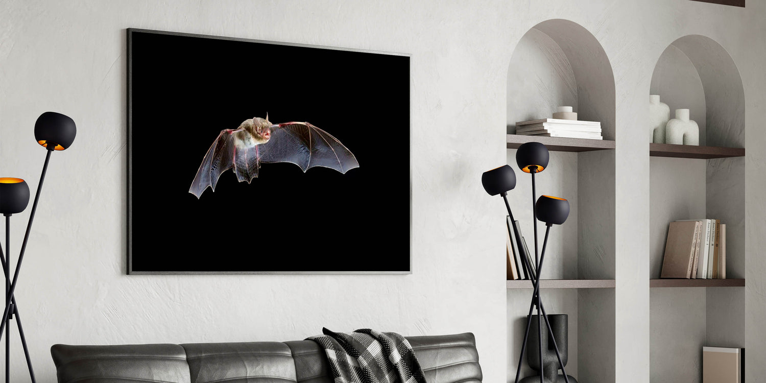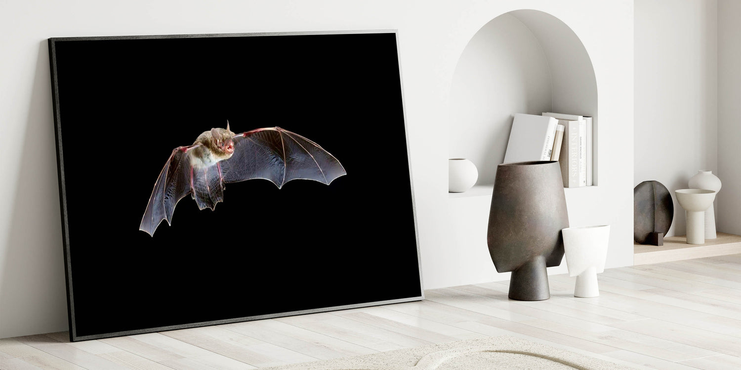 Add a touch of grace and intrigue to your home with this beautiful bat photography wall art. The exquisite detail and dramatic contrast make it a perfect addition for nature lovers and art enthusiasts alike.