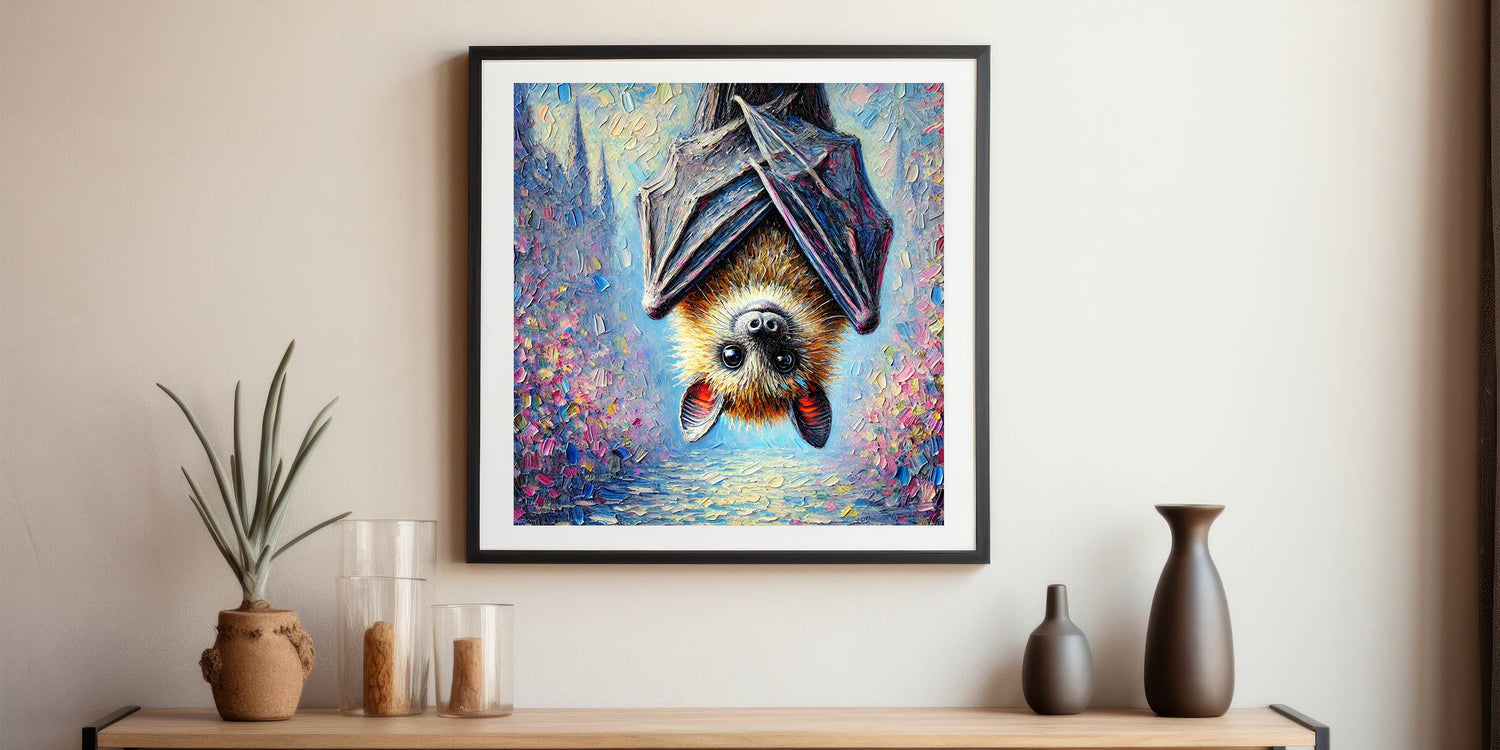 Introduction: Add a touch of nocturnal elegance to your home with this stunning bat wall art. Featuring a beautifully detailed bat in a serene, colorful environment, this piece captures the grace and mystery of these fascinating creatures. Perfect for wildlife enthusiasts, this bat art print brings nature’s beauty right into your living space.