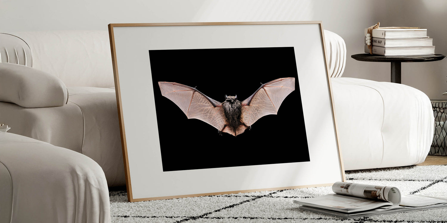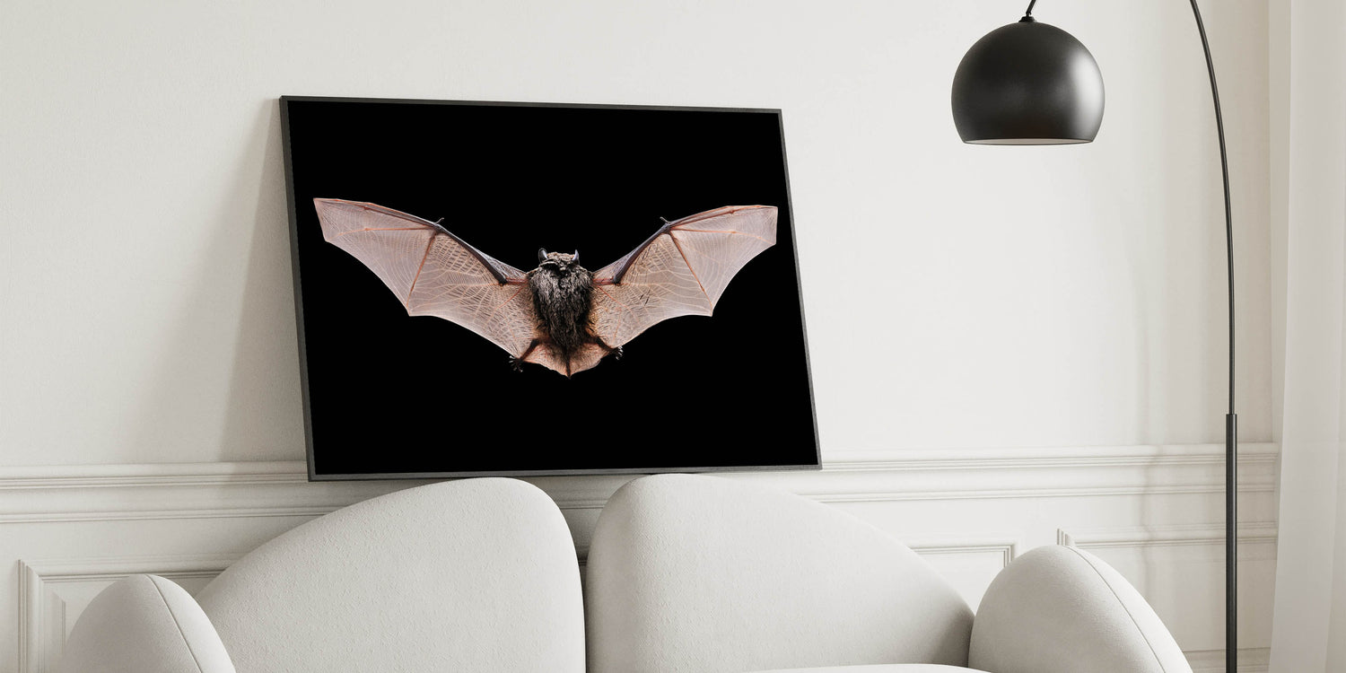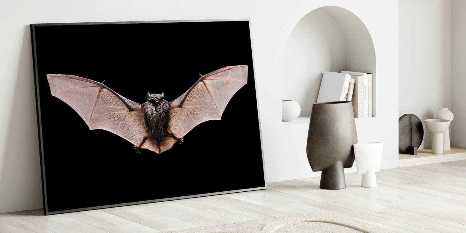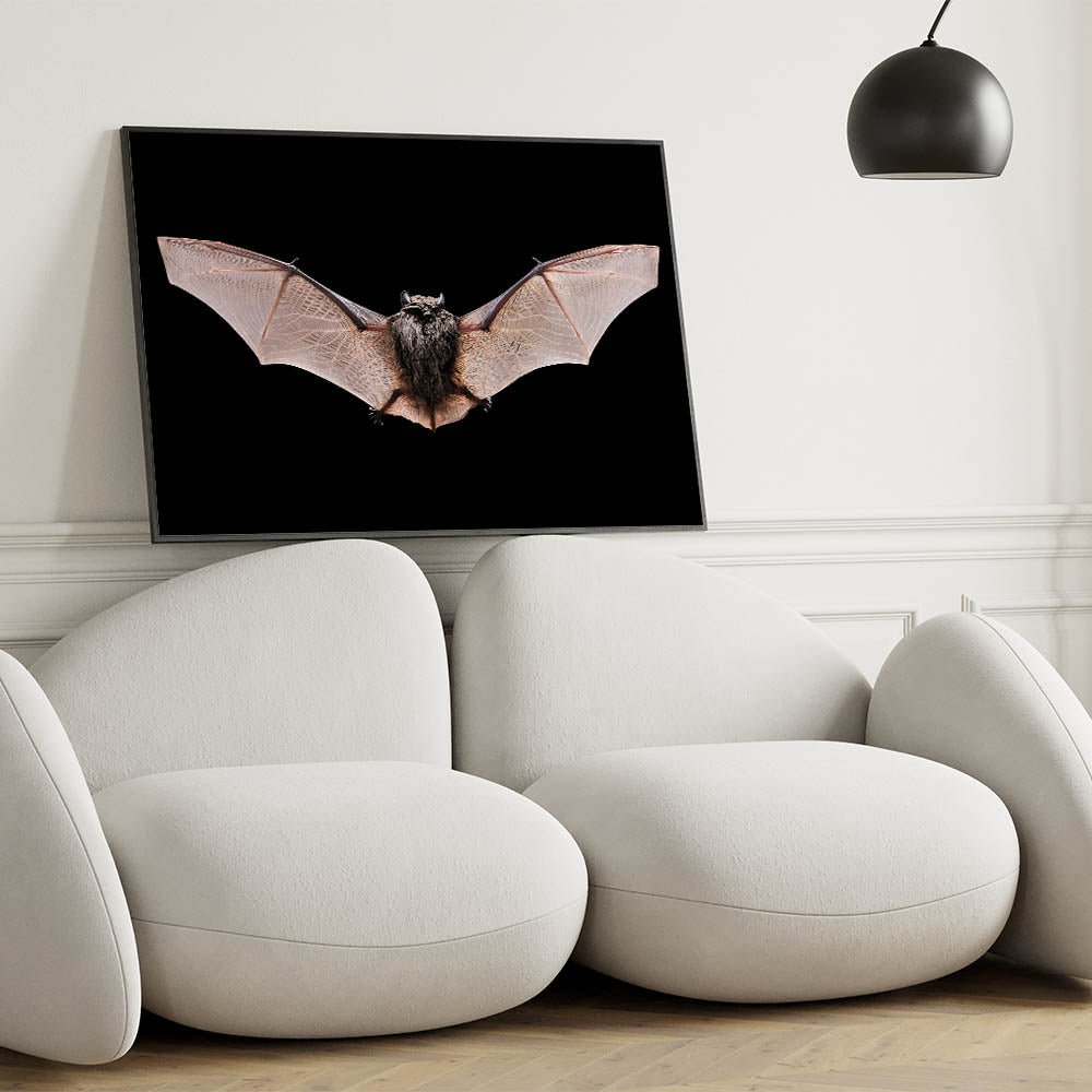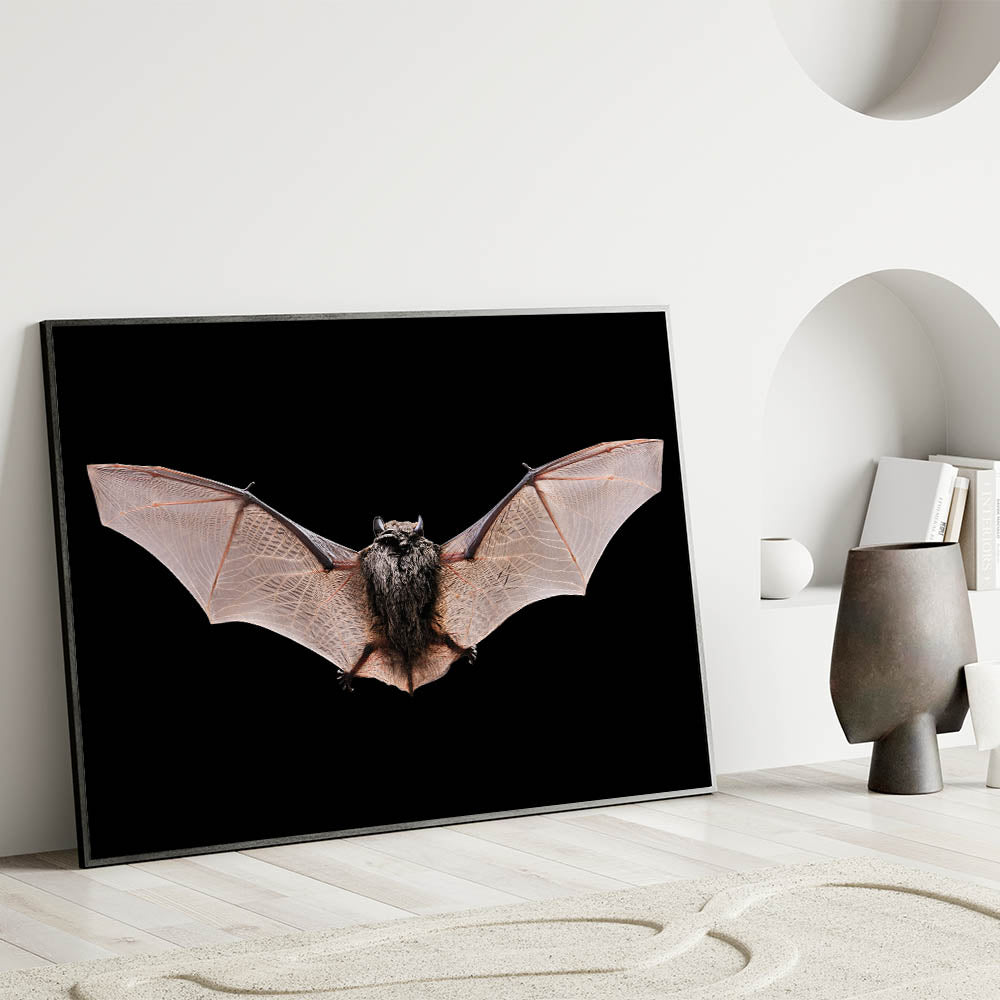 Transform your space with this stunning night bat photography. Its detailed imagery and minimalist design make it a timeless piece that adds both elegance and intrigue to your decor.