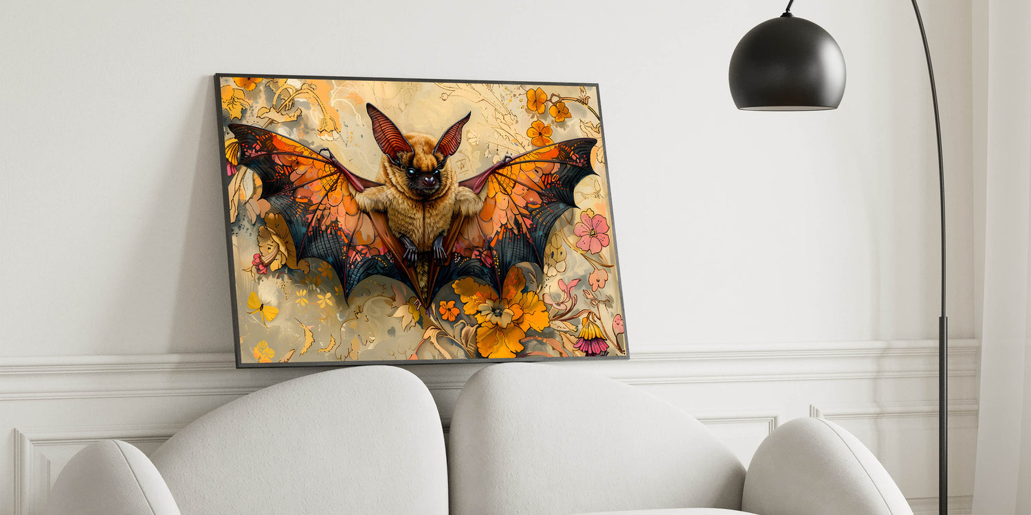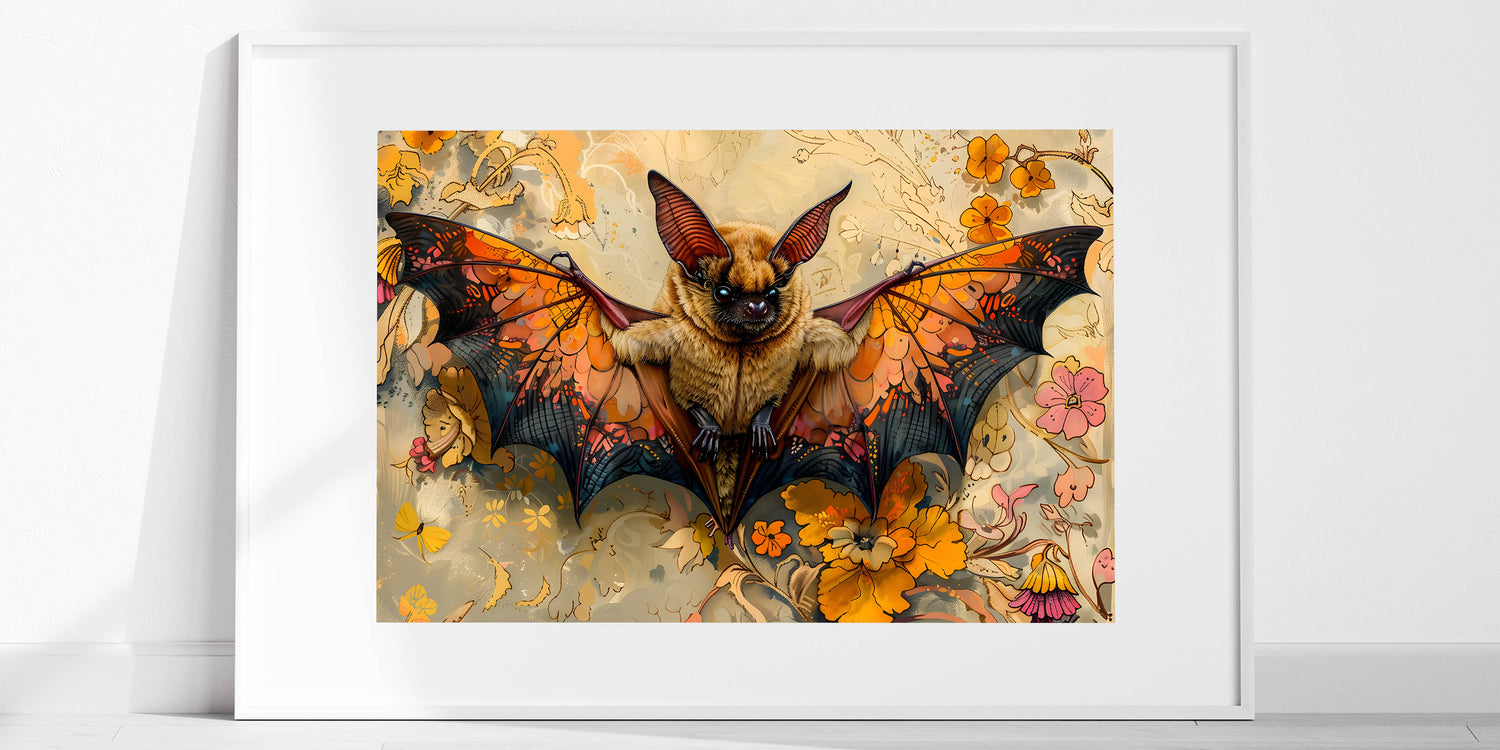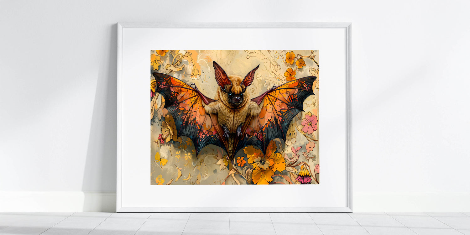 Vibrant Bat Art - Majestic Wildlife Decor with Floral and Autumn Themes