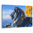 • Featuring a powerful lion sculpture and an autumn lakeside scene, this artwork adds elegance and vibrancy to any space.