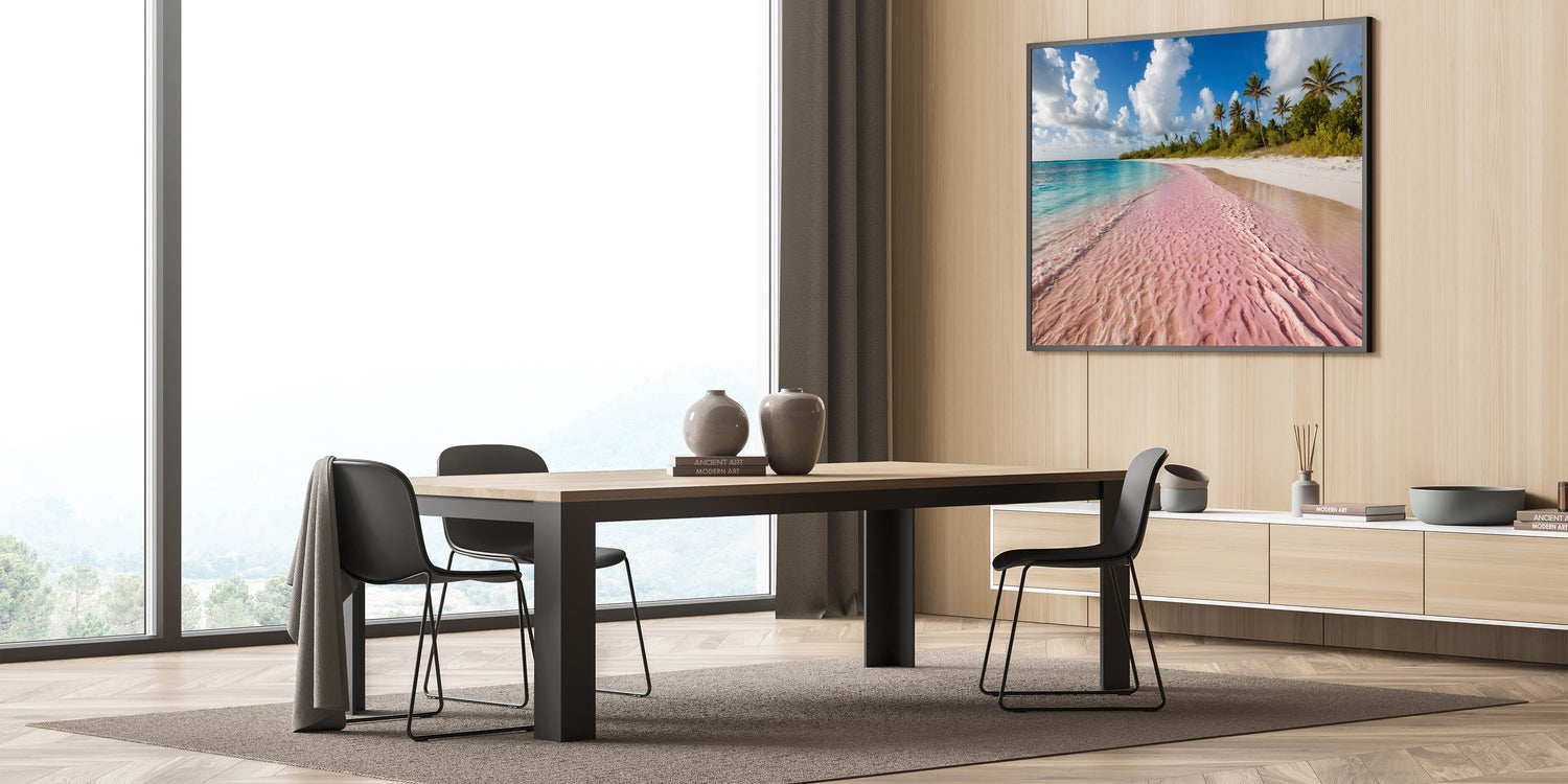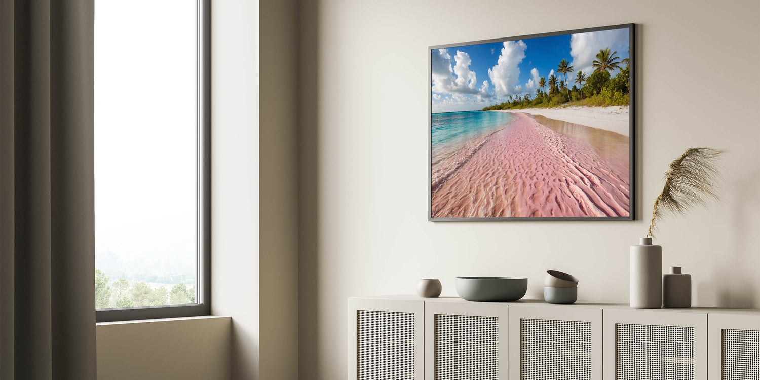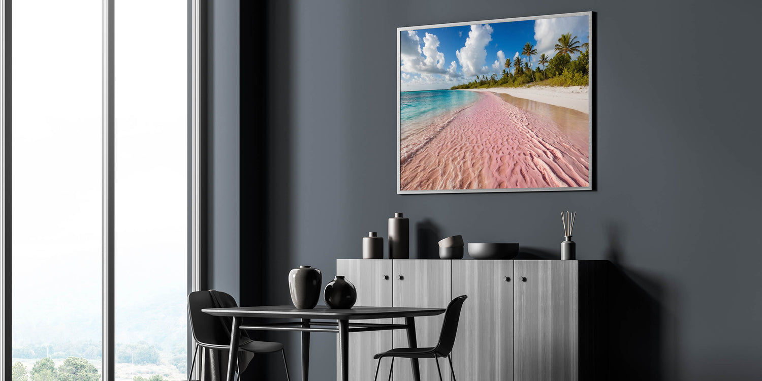 Add a touch of tropical elegance to your home with this stunning pink sand beach wall art. Perfect for those who love unique and vibrant coastal decor, this piece is sure to be a conversation starter.