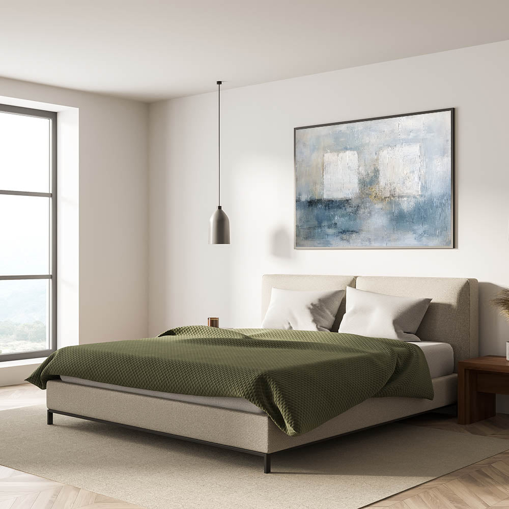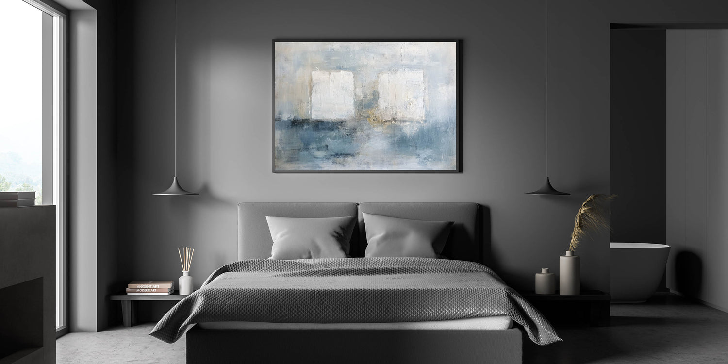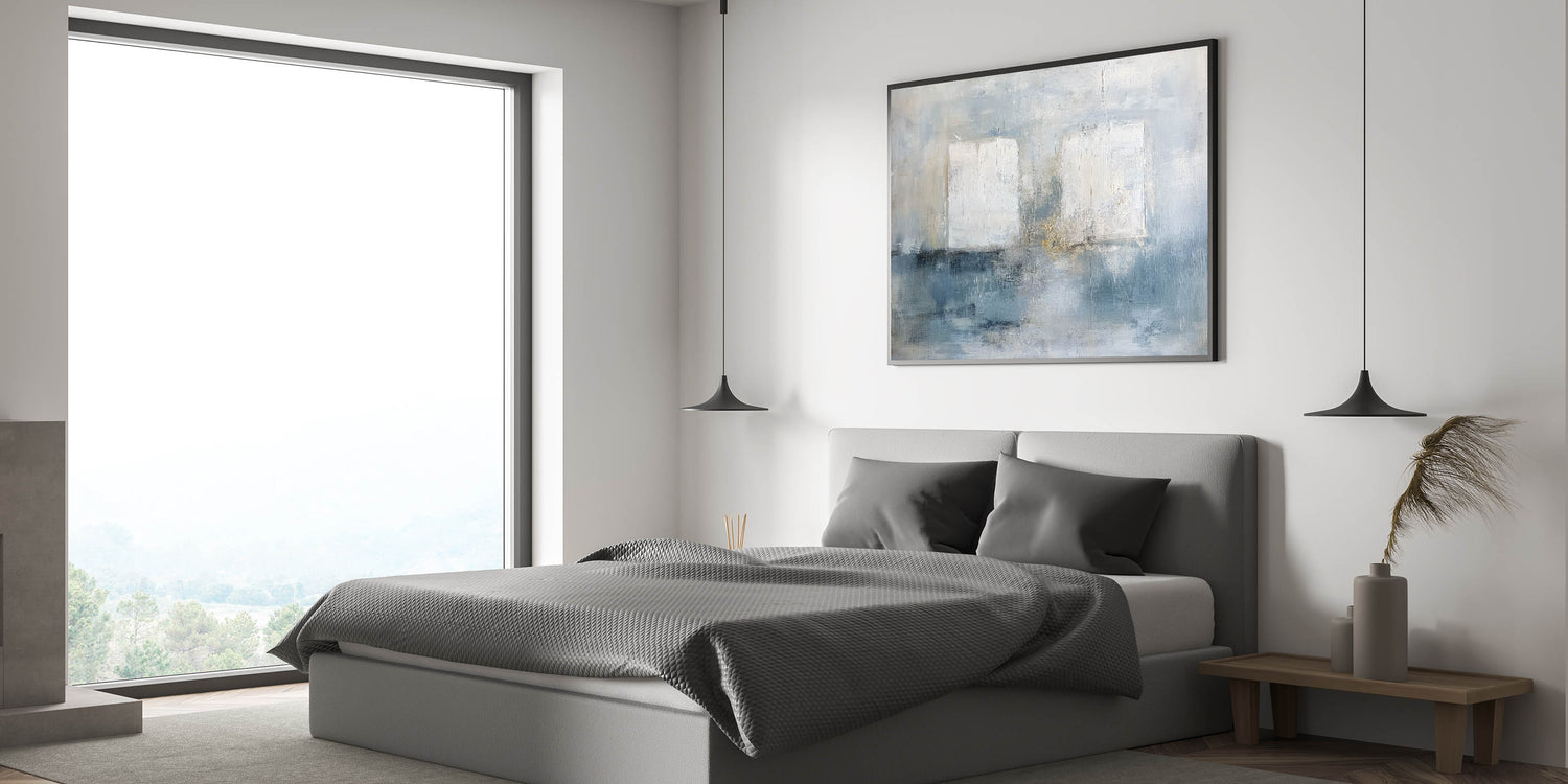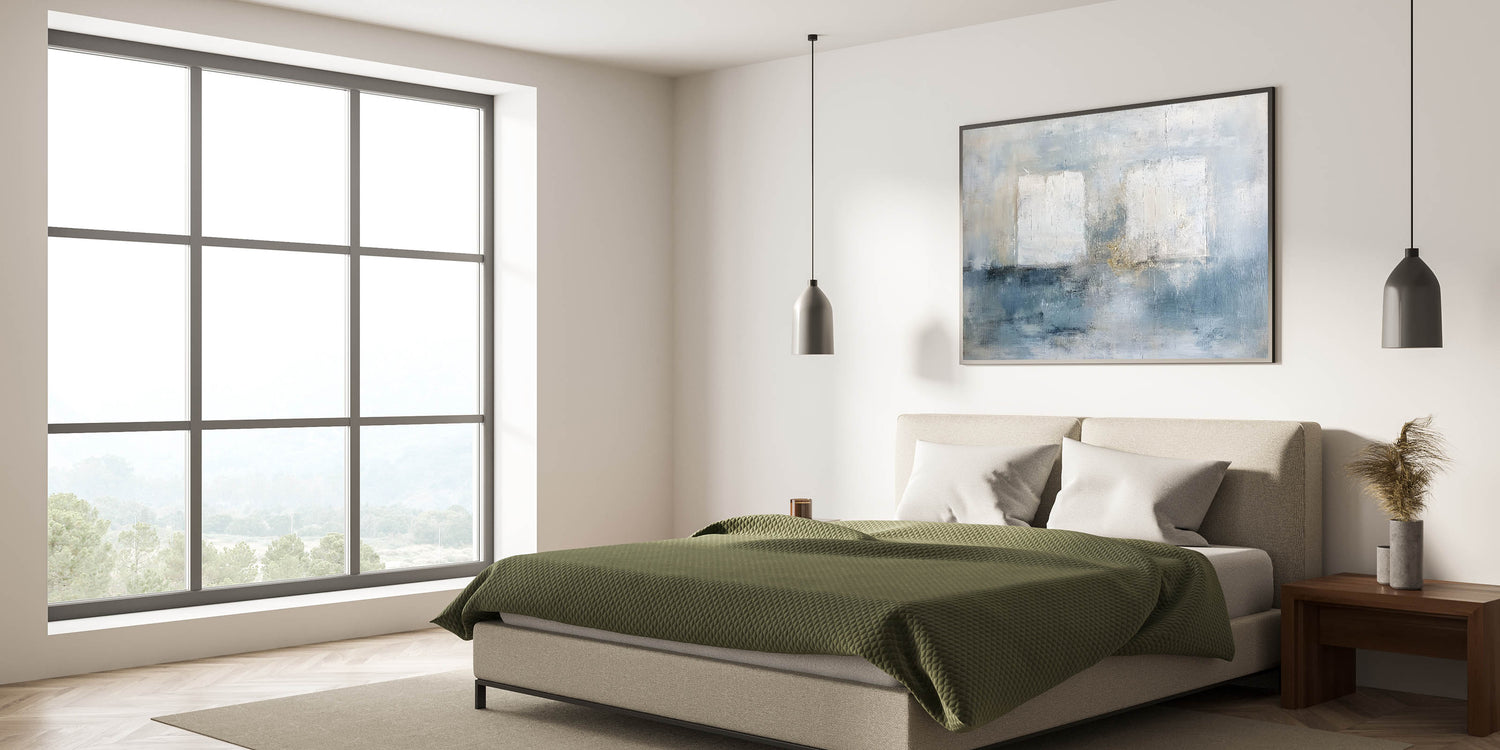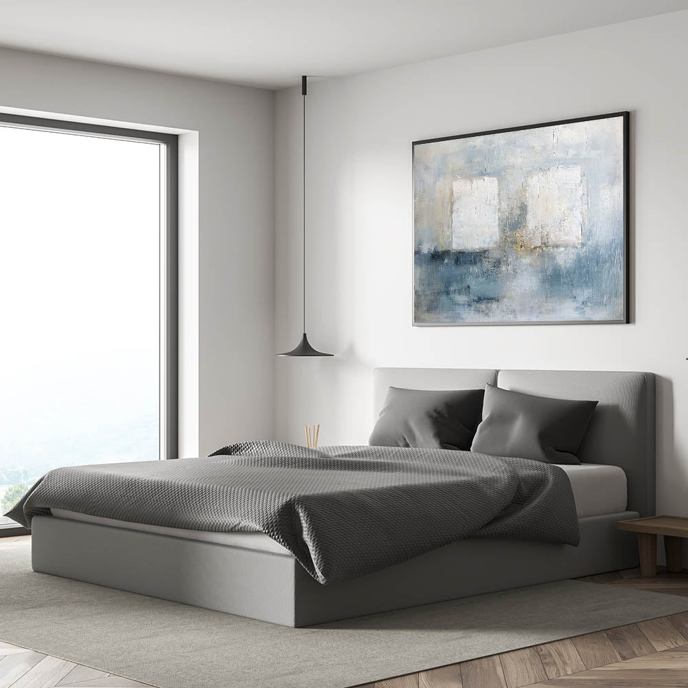This modern bedroom art is ideal for those who appreciate light, airy aesthetics. Whether you choose acrylic bedroom wall art or canvas prints for bedroom walls, this piece brings a peaceful and stylish ambiance to your décor.