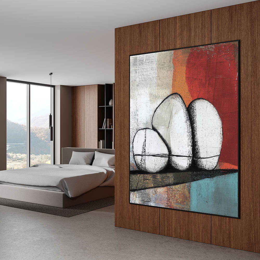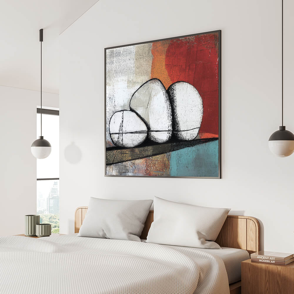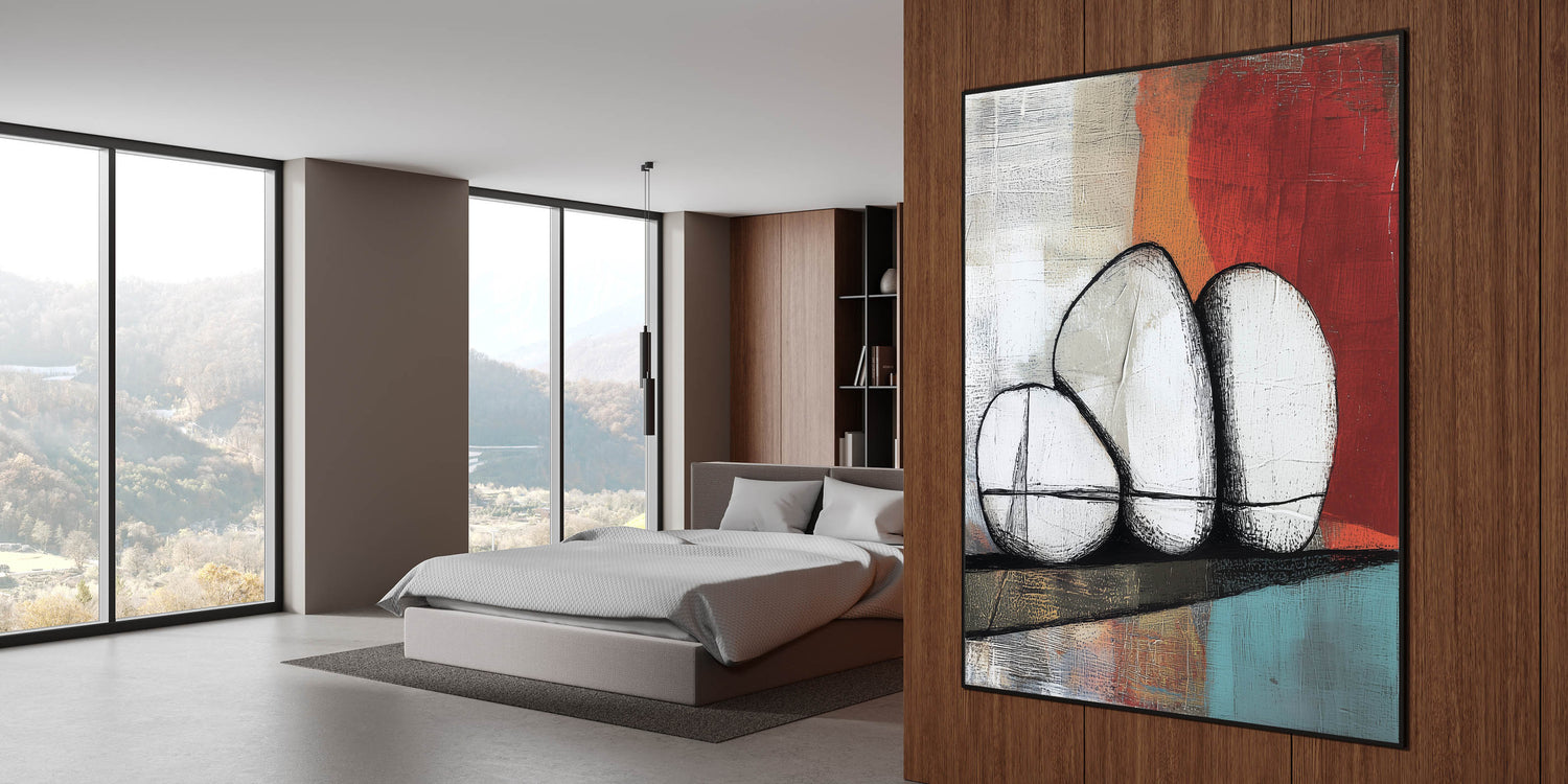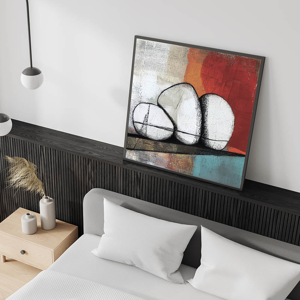 This modern bedroom art is designed to enhance your space with its elegant color palette and contemporary composition. Whether you prefer canvas prints for bedroom walls or rolled canvas bedroom art, this piece is a versatile addition to your décor.