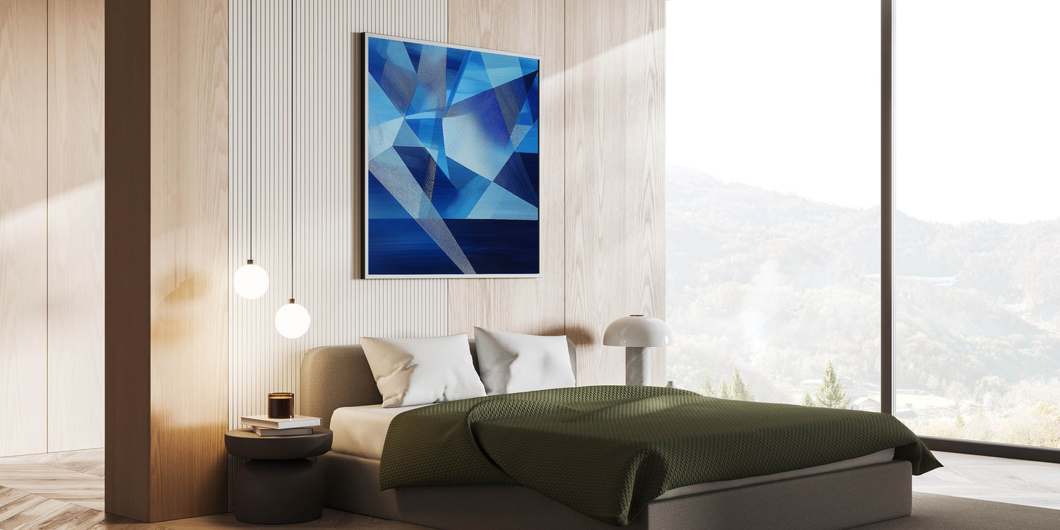 Geometric Blue Bedroom Wall Art – Modern Canvas Print