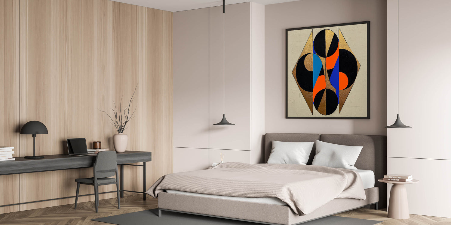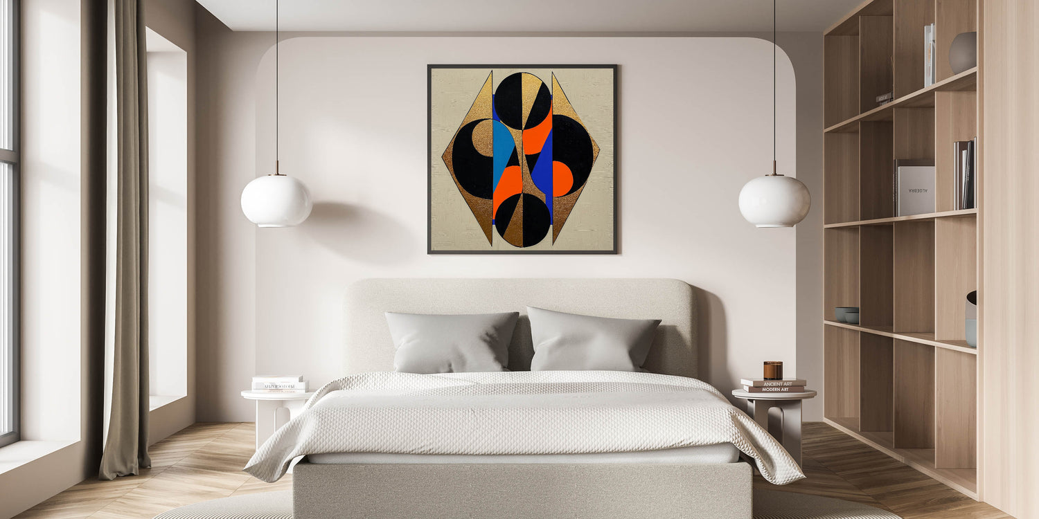 - Unique wall art designs for bedrooms, combining geometric precision with a modern artistic touch.