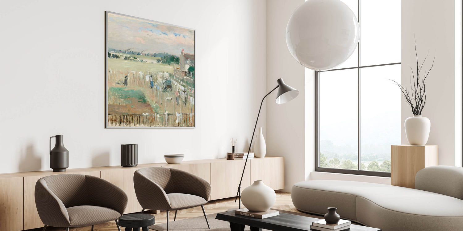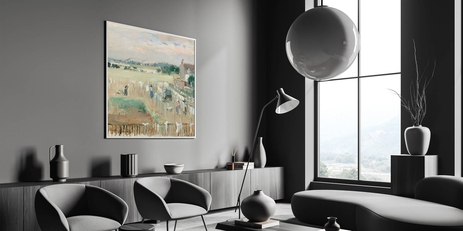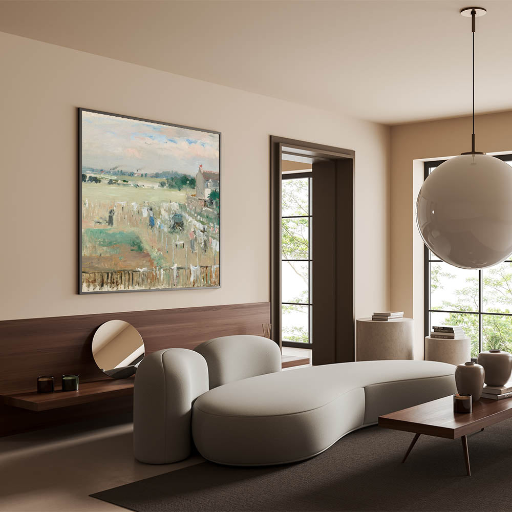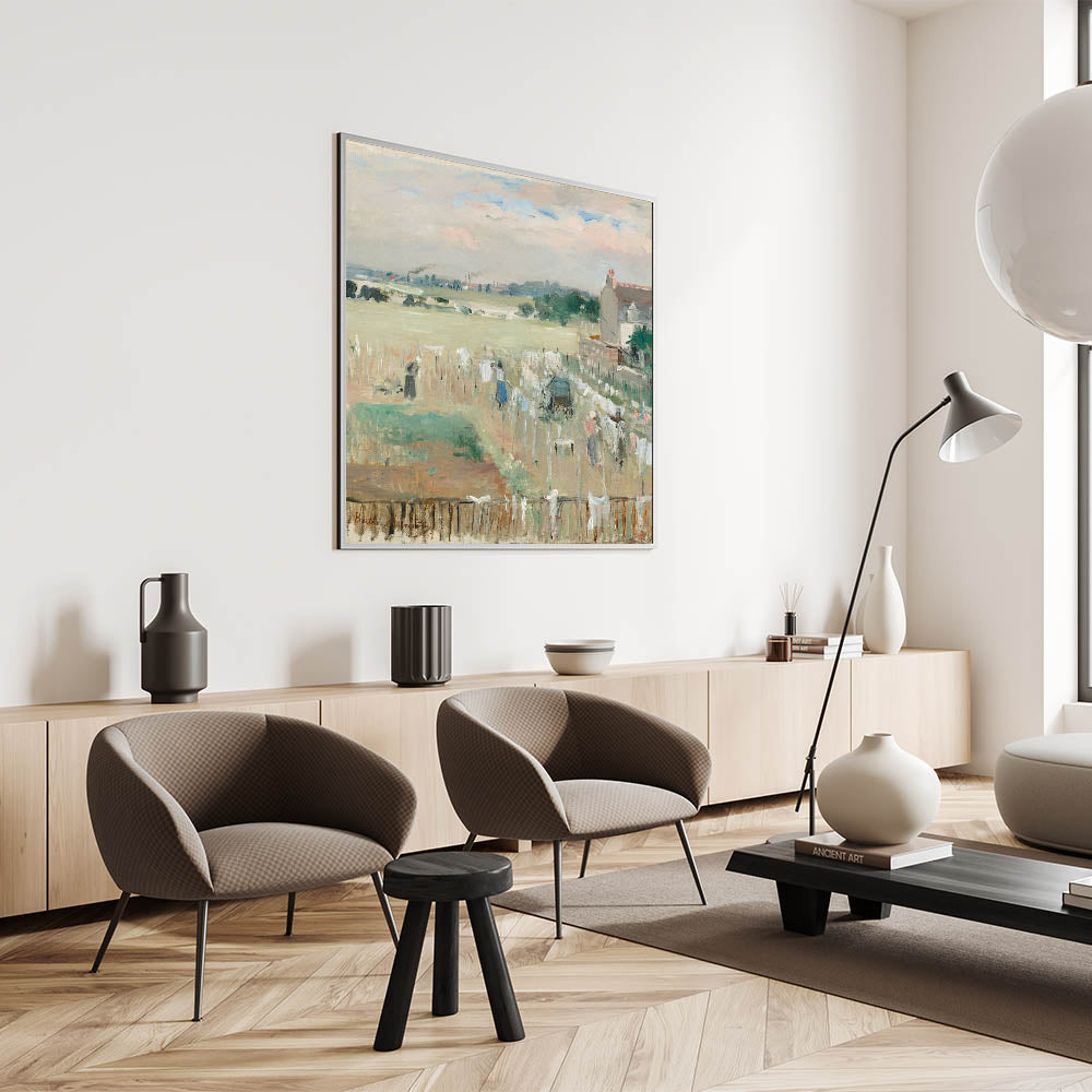 This Berthe Morisot art piece is perfect for anyone who wants to add a sense of tranquility and history to their living space, offering a timeless view of rural life in 19th-century France.