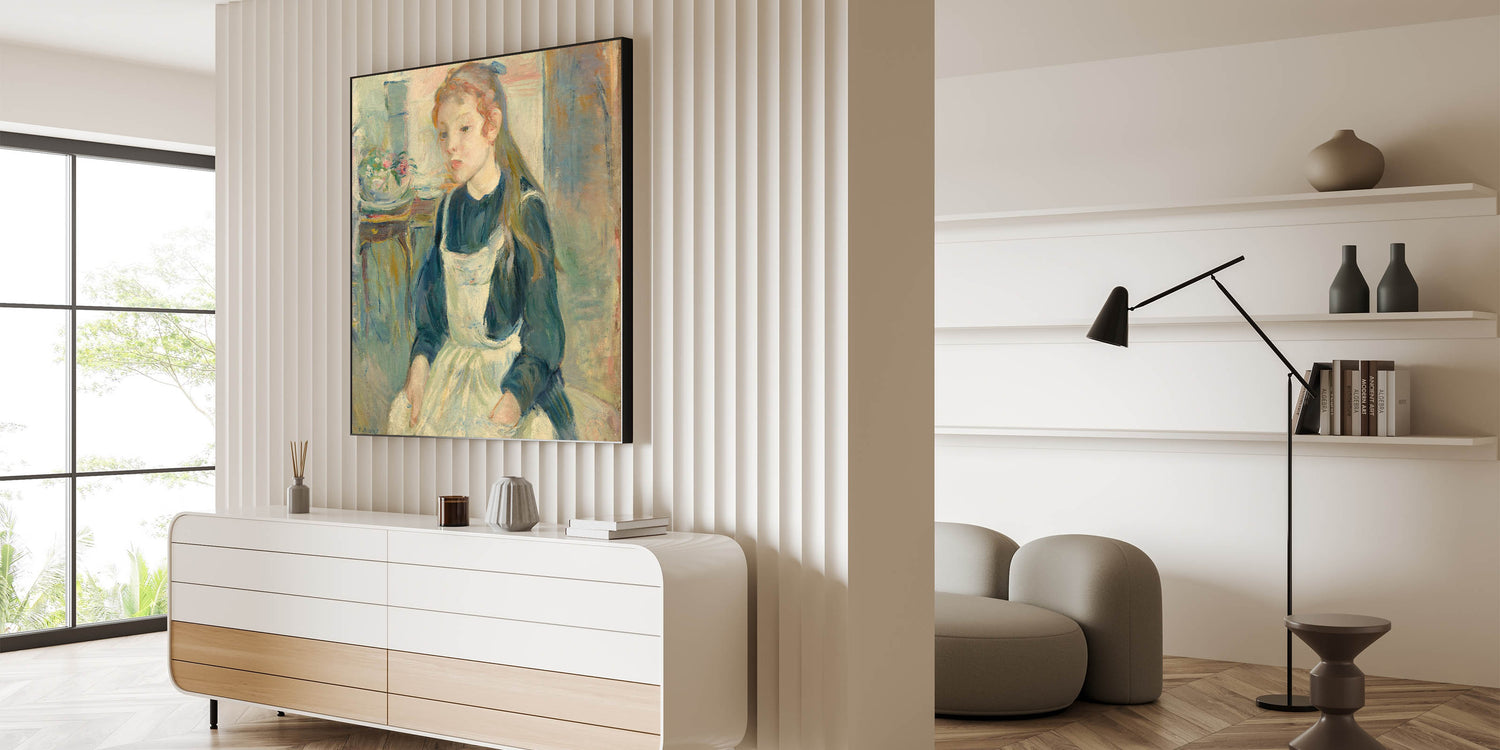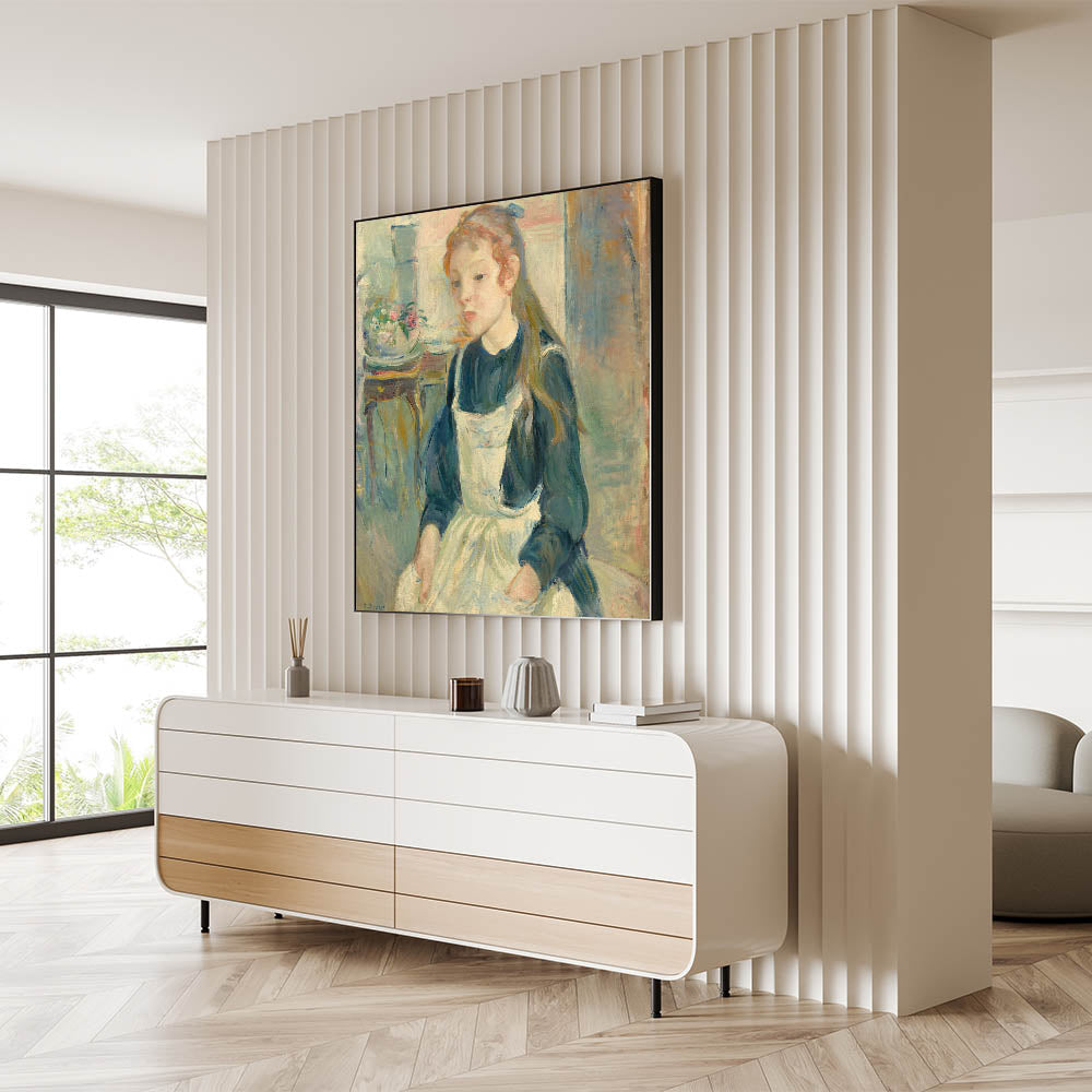 Introduce a timeless touch of elegance into your home with this beautiful wall art by the renowned Berthe Morisot. Known as one of the leading pioneers of the Impressionist movement, Morisot masterfully captures the delicate essence of everyday life in 19th-century Paris. This artwork, portraying a young girl with soft, delicate brushstrokes, showcases her ability to encapsulate the quiet beauty and charm of Parisian life.