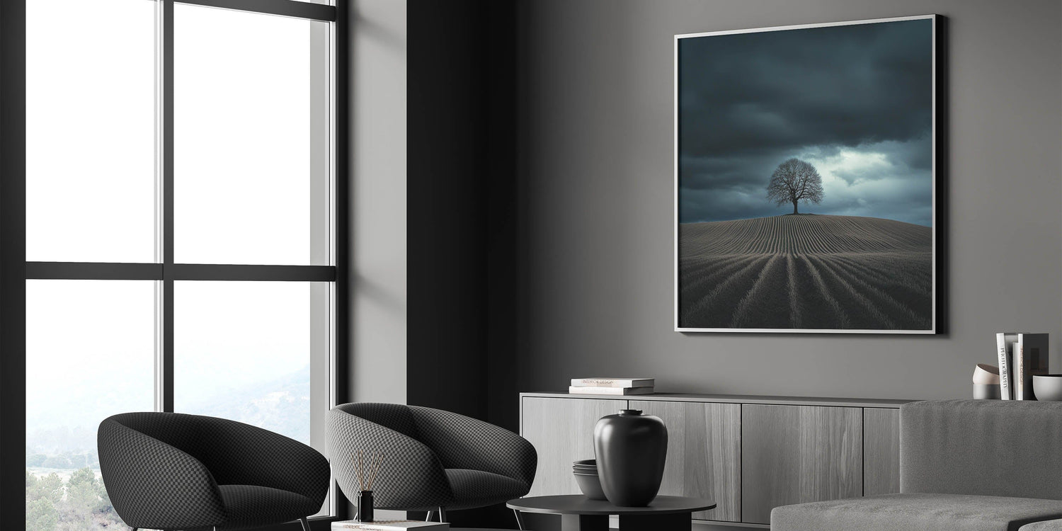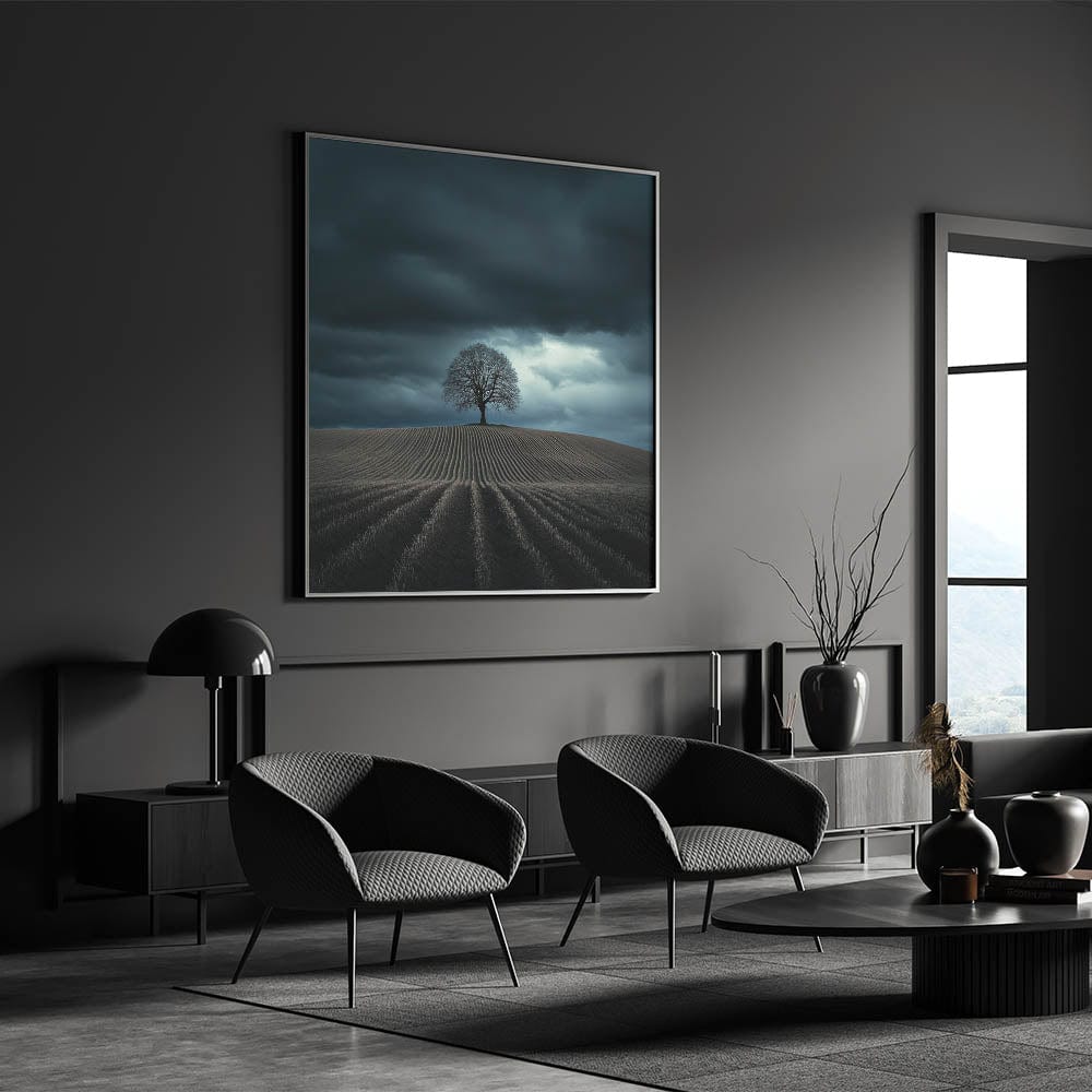 Black and White Minimalist Landscapes – Dramatic Stormy Tree Print