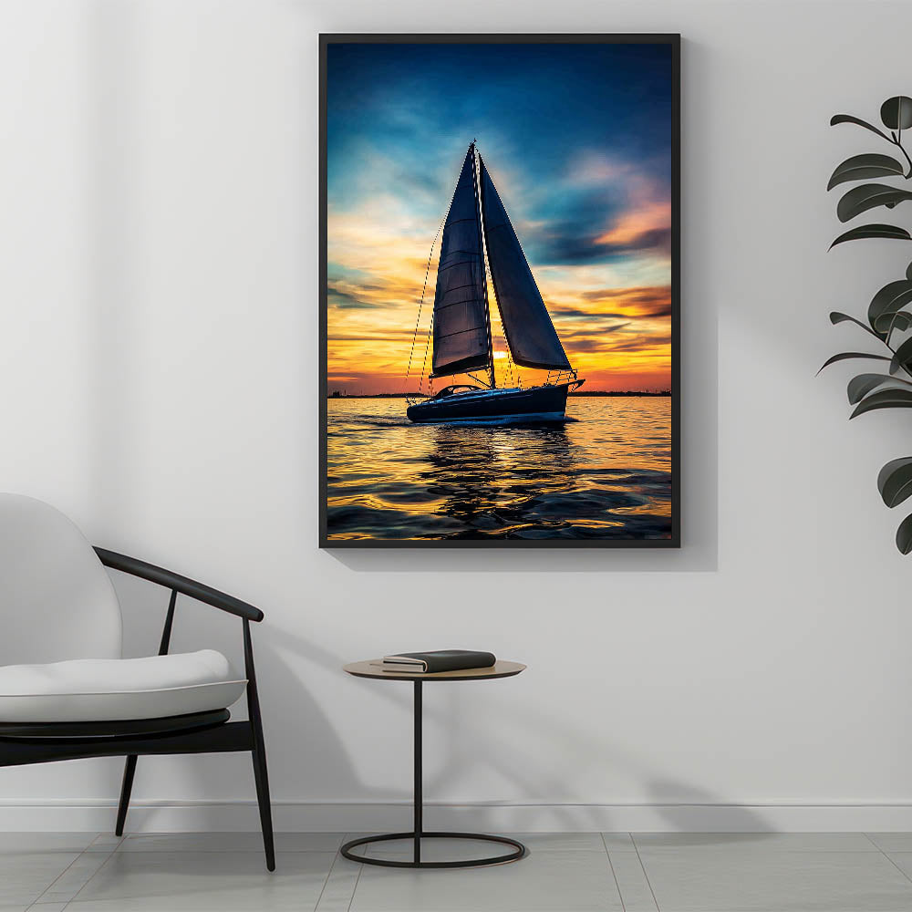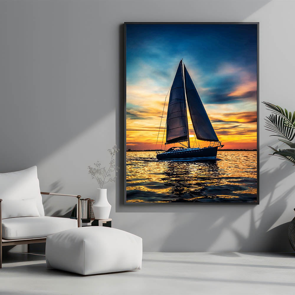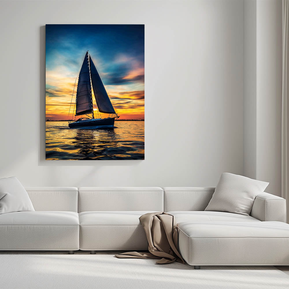 Sailing at Sunset Wall Art - Vibrant Coastal Landscape