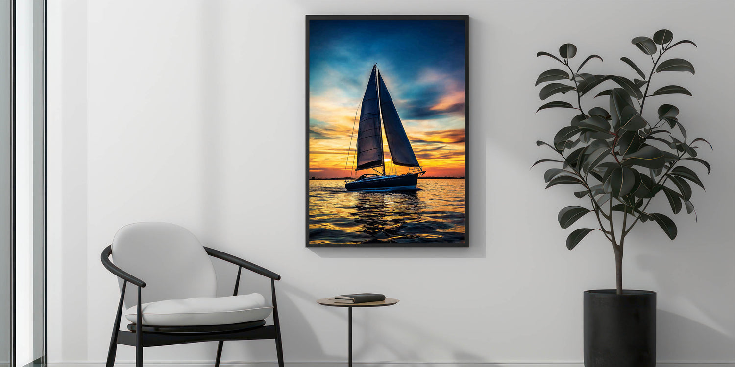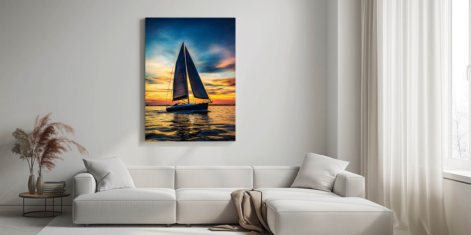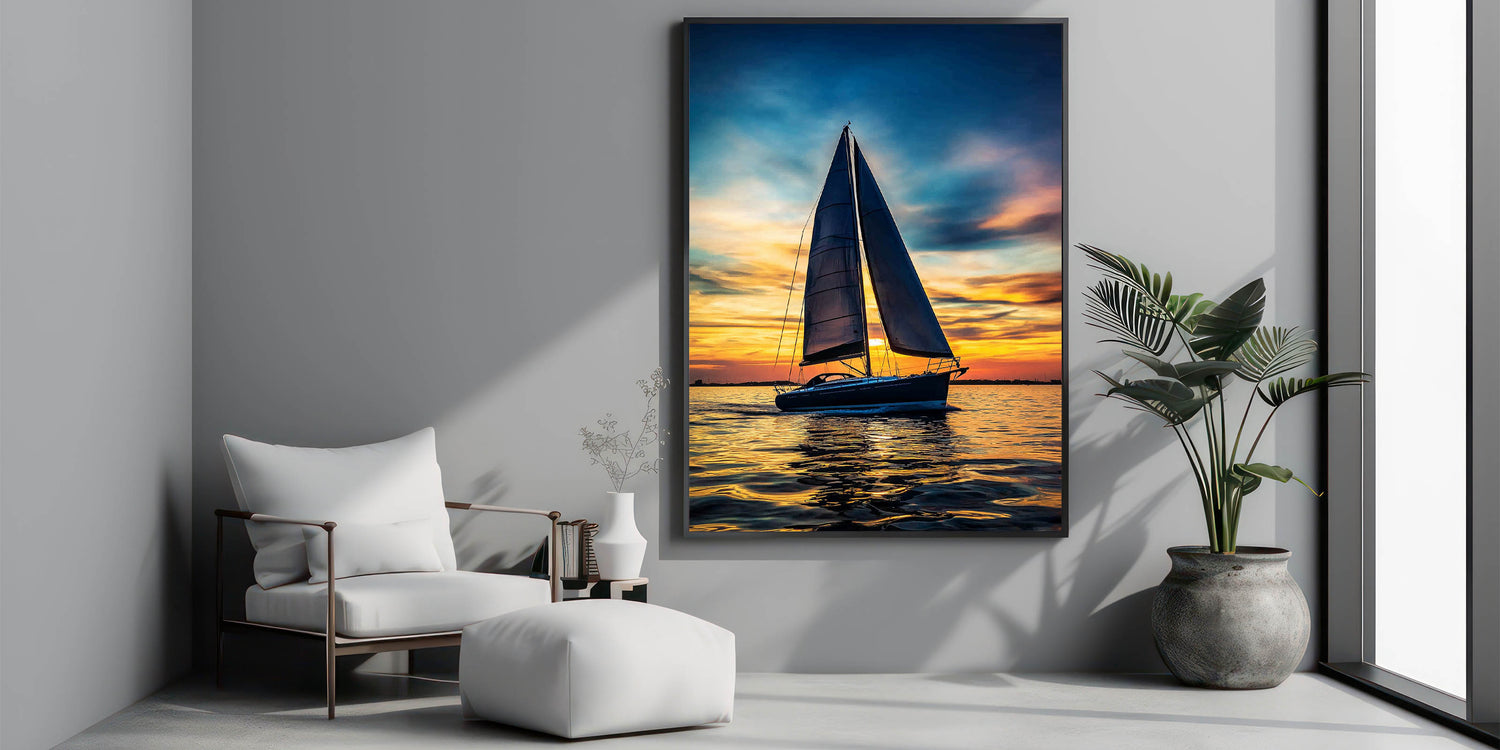 Sailing at Sunset Wall Art - Vibrant Coastal Landscape