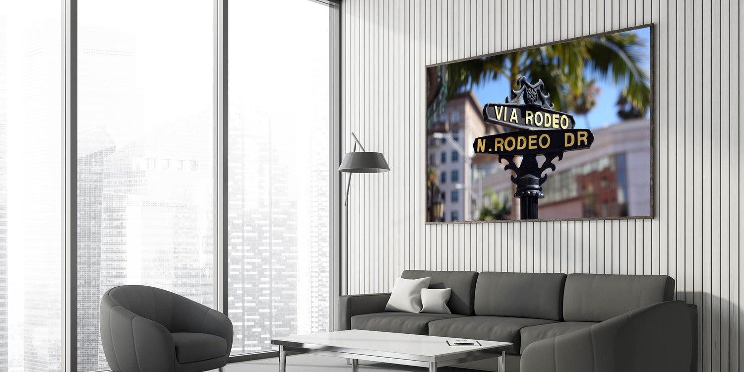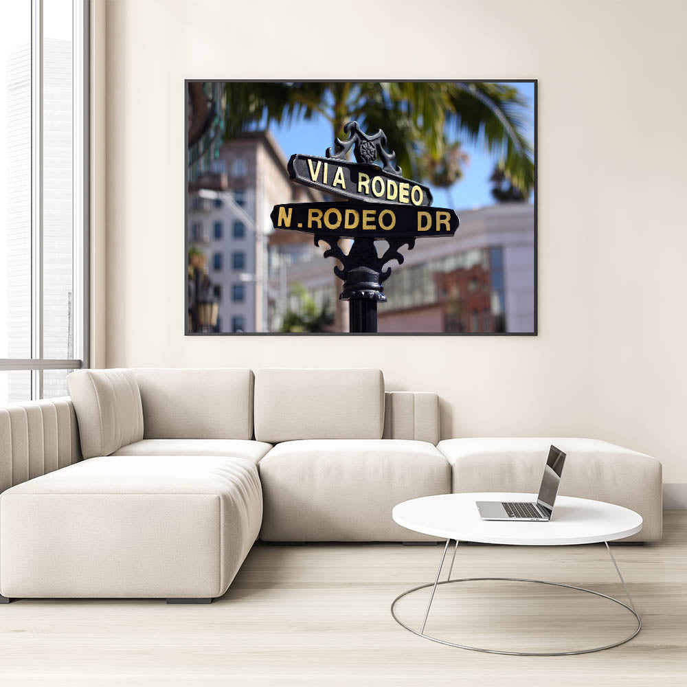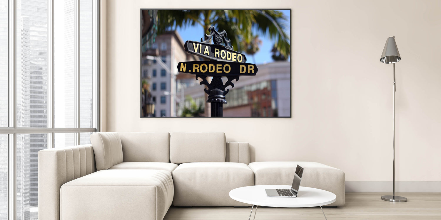 Capture the essence of California’s most iconic luxury destination with this stunning wall art featuring the famous Via Rodeo and N. Rodeo Dr. sign in Beverly Hills. This piece is perfect for anyone looking to add a touch of California luxury lifestyle art to their home or office.