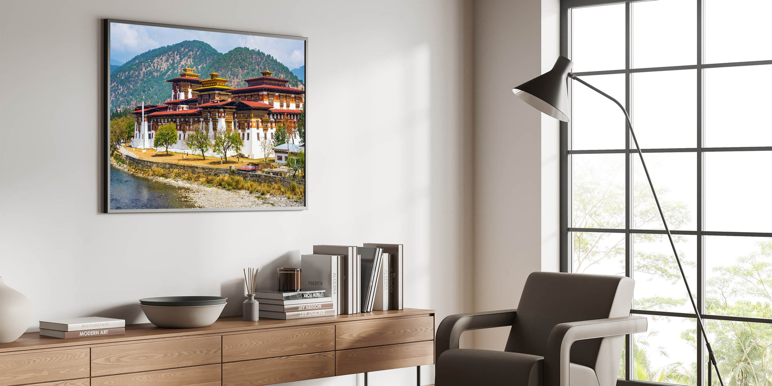 This Bhutan wall art is ideal for those who wish to bring a piece of Bhutan’s rich history and breathtaking scenery into their home. It adds a touch of elegance and cultural depth, making it a perfect choice for living rooms, offices, or any space in need of a unique artistic touch.