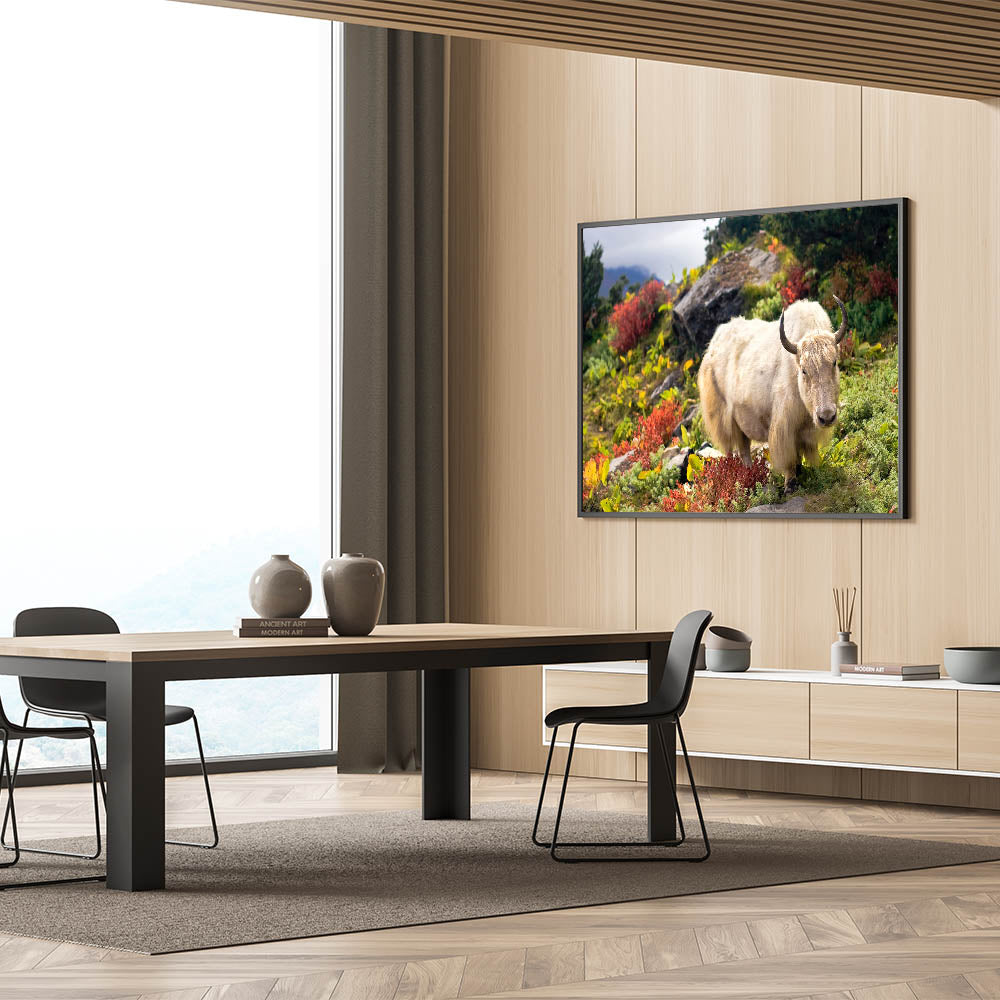 Immerse yourself in the tranquil beauty of Bhutan with this exquisite wall art featuring a serene Yak grazing amidst the vibrant, mountainous landscape. This piece captures the essence of Bhutan’s unique cultural and natural heritage, offering a glimpse into the untouched beauty of its highland regions. Perfect for those who appreciate the blend of nature and culture, this artwork brings a touch of Bhutanese serenity into any space.